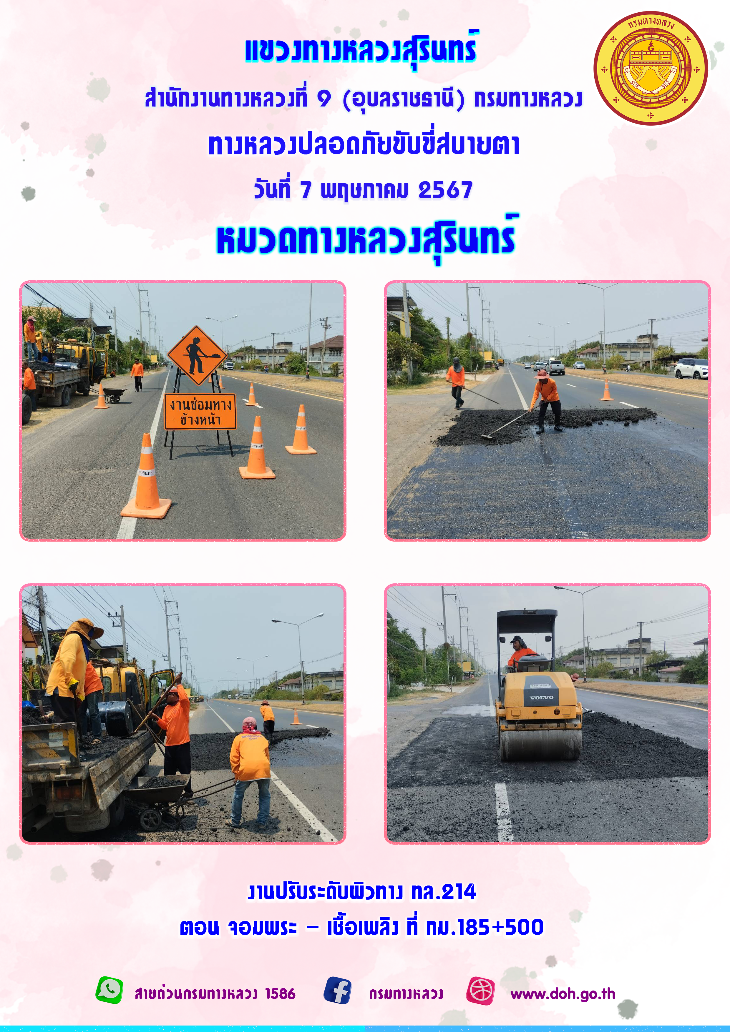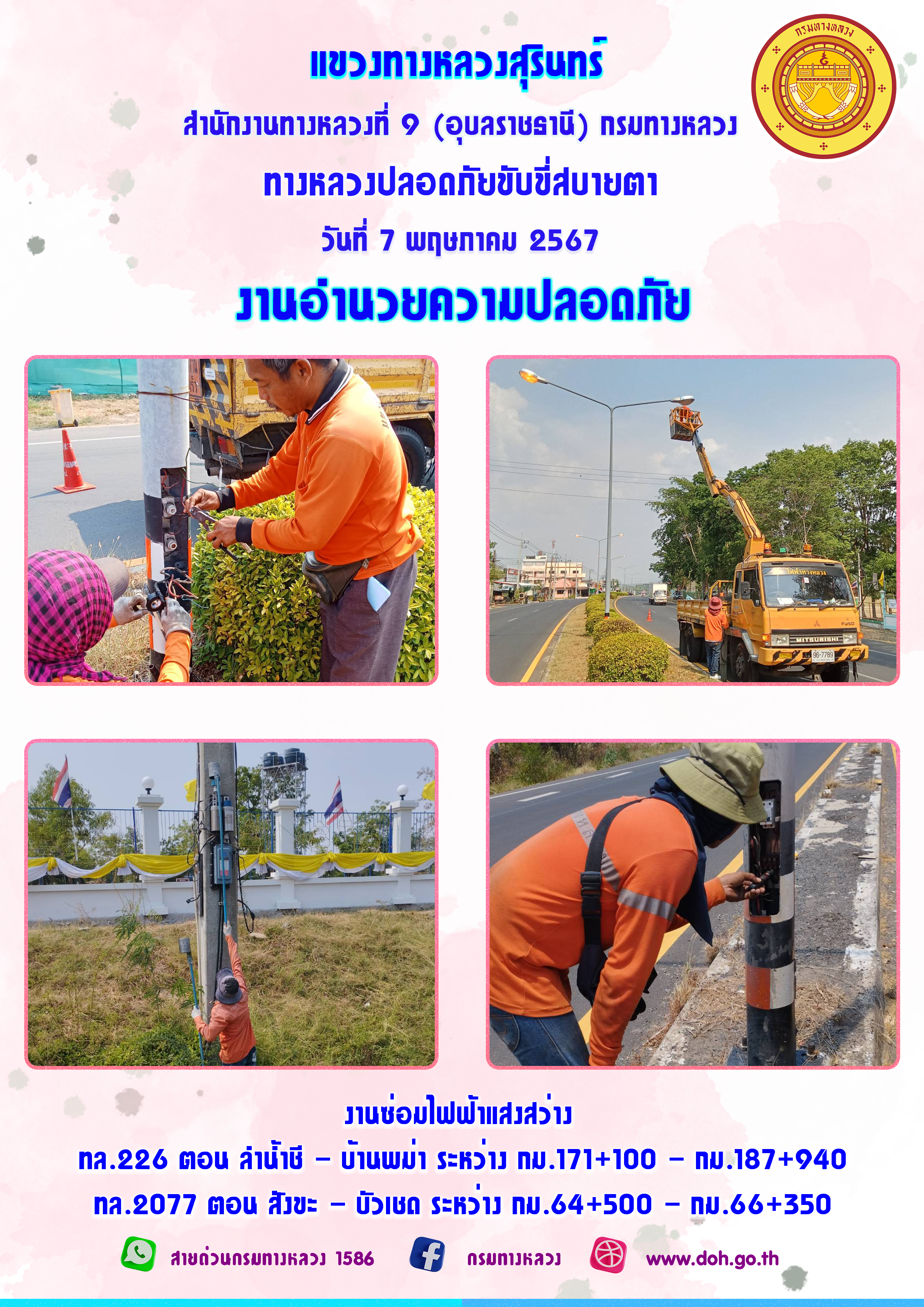 ข้อมูลภาพกิจกรรม : ทางหลวงปลอยภัย ขับขี่สบายตา 7 พฤษภาคม 2567