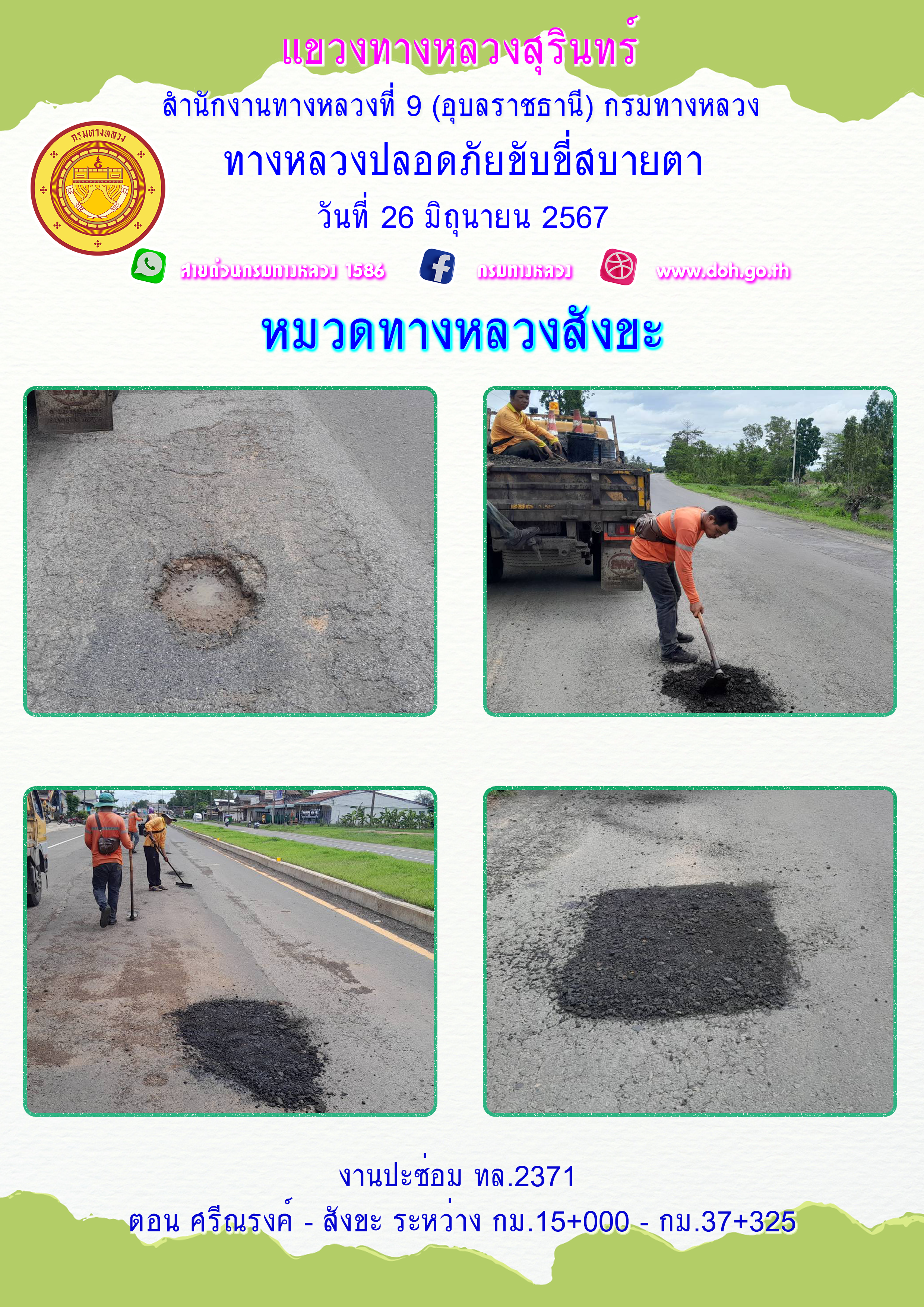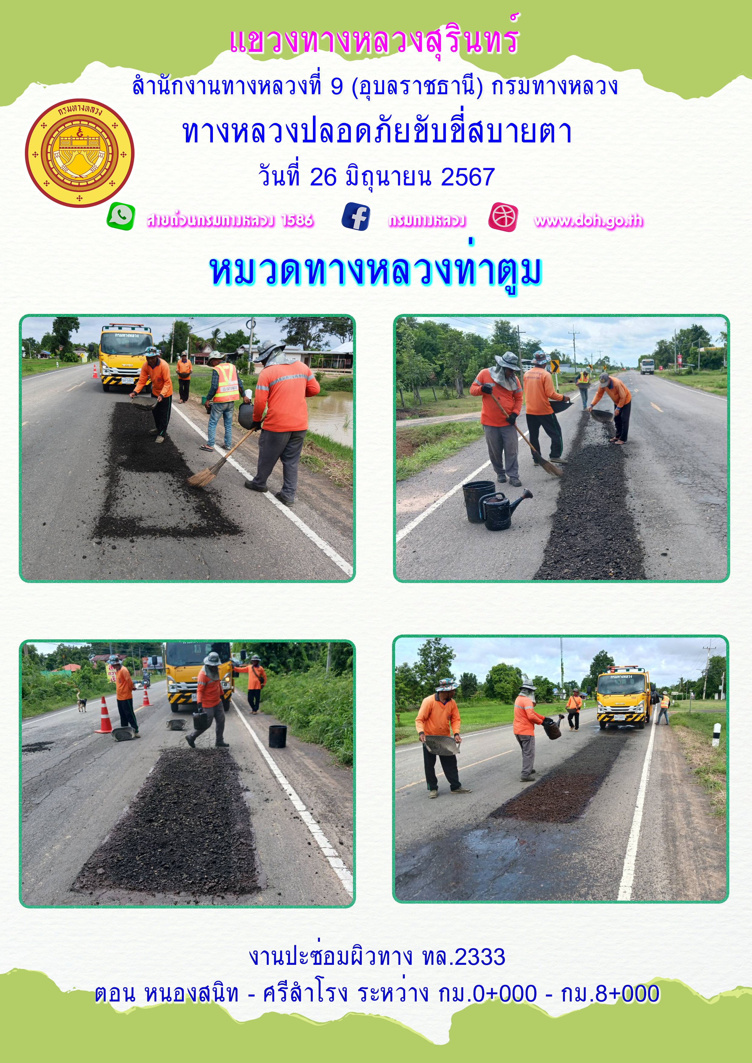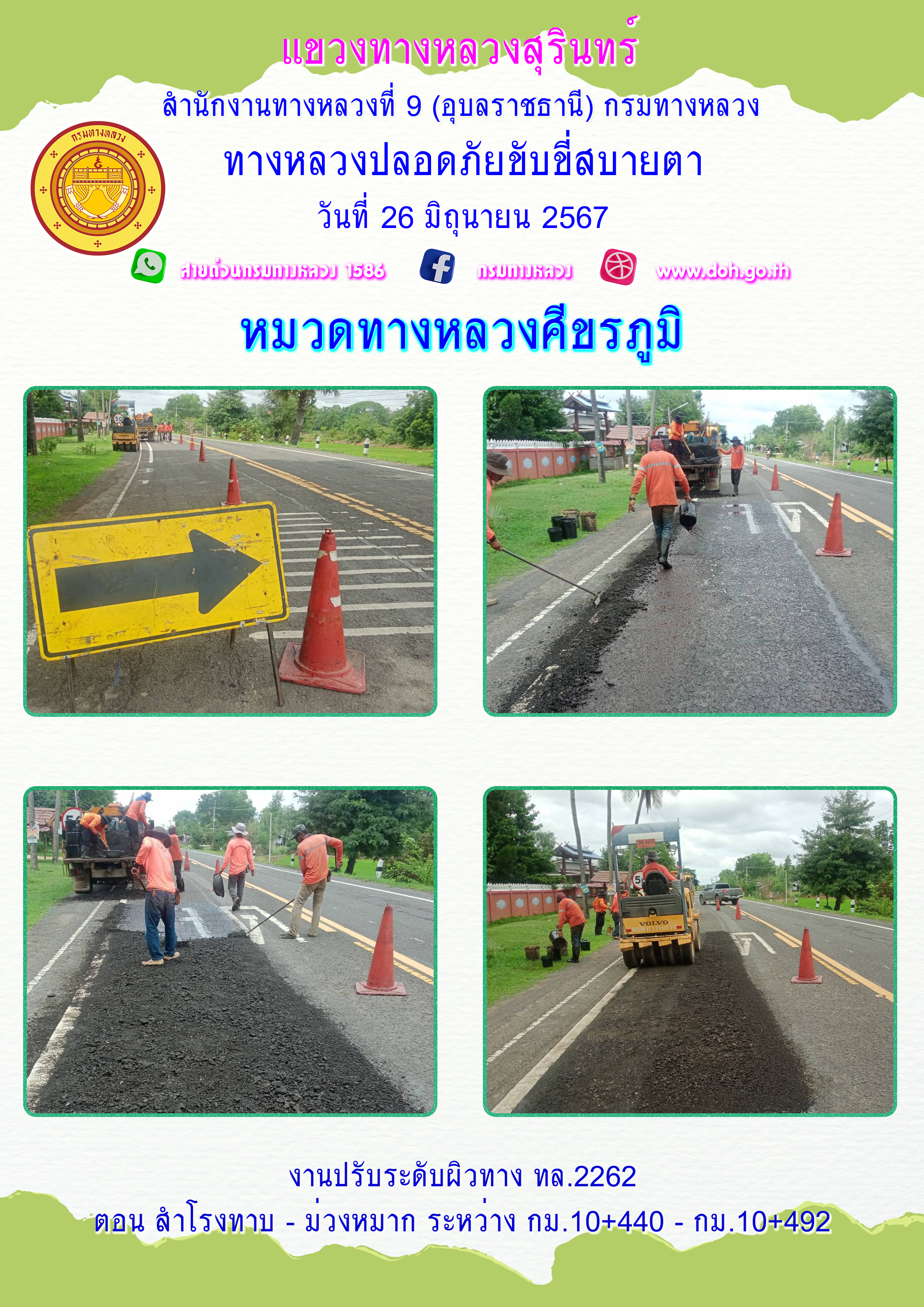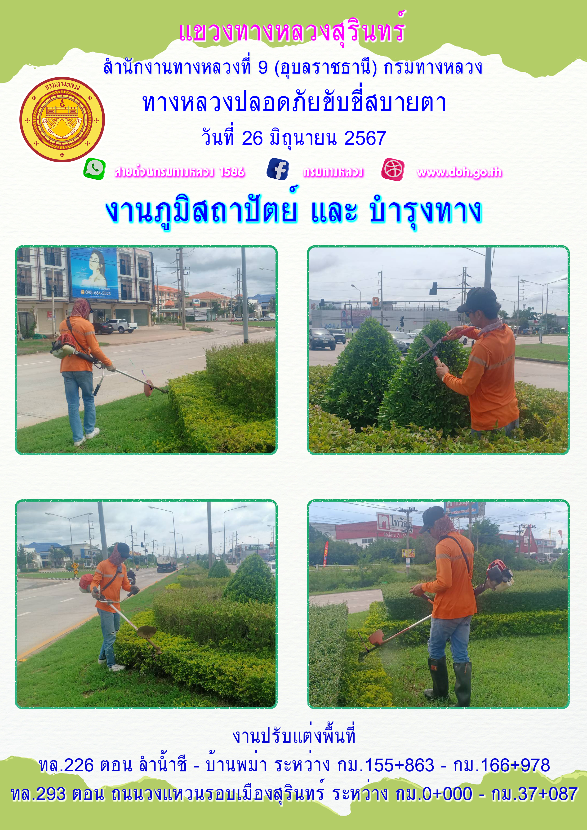 ข้อมูลภาพกิจกรรม : ทางหลวงปลอยภัย ขับขี่สบายตา 26 มิถุนายน 2567