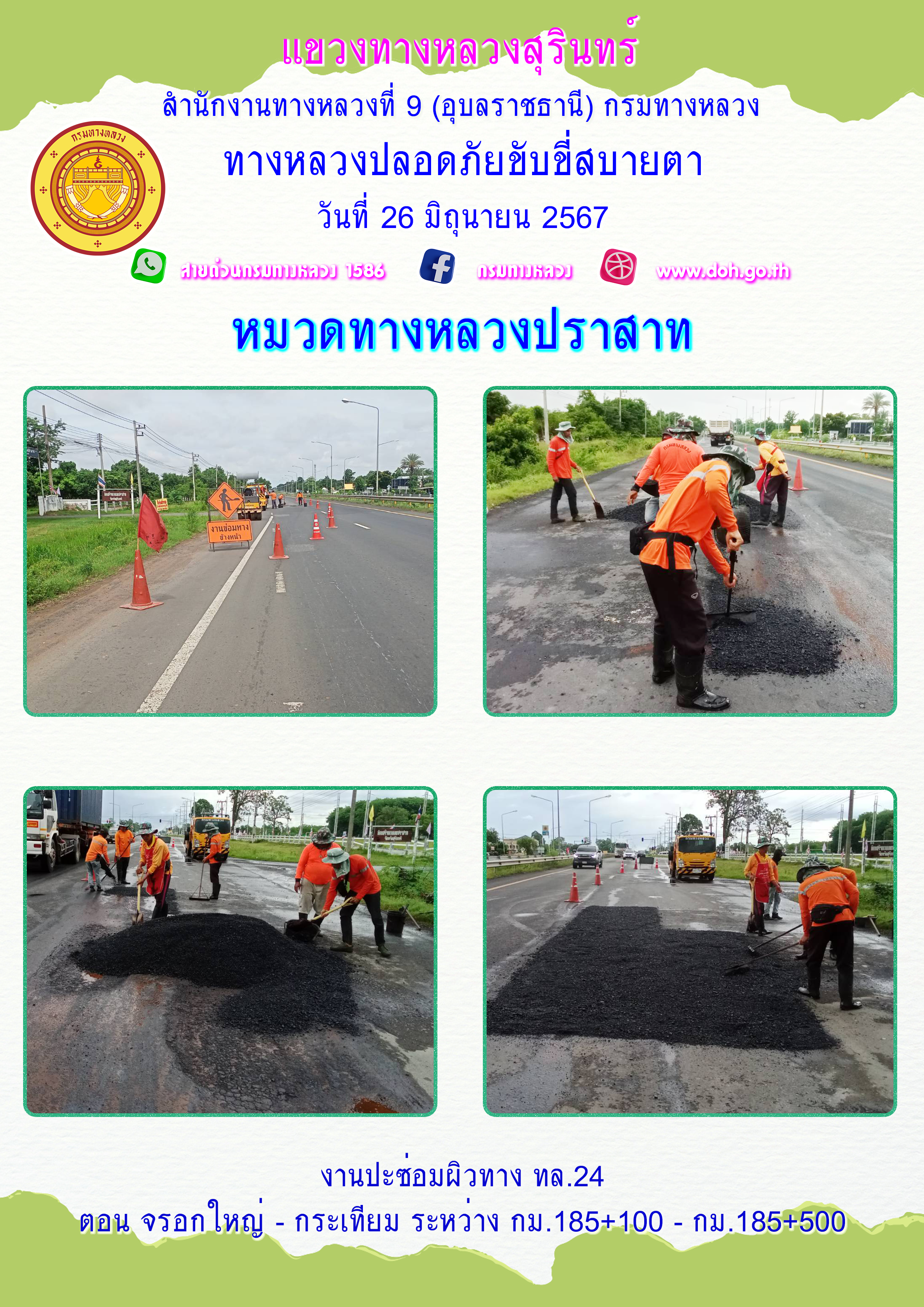 ทางหลวงปลอยภัย ขับขี่สบายตา 26 มิถุนายน 2567