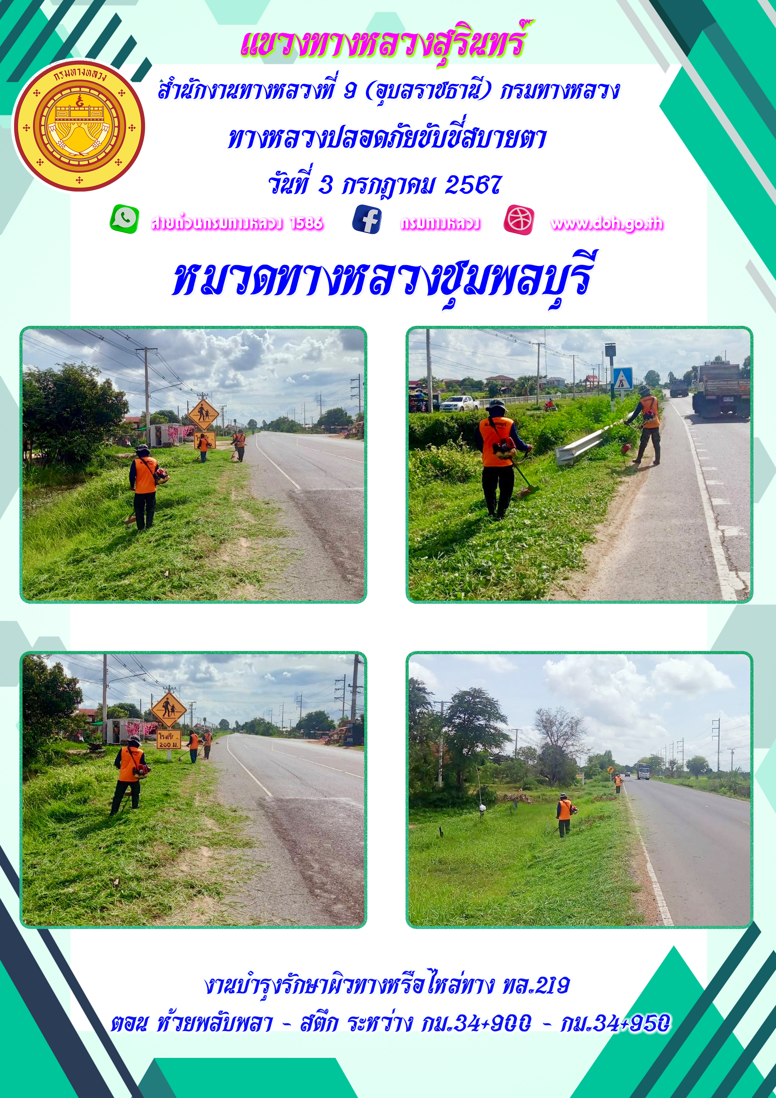 ข้อมูลภาพกิจกรรม : ทางหลวงปลอยภัย ขับขี่สบายตา 3 กรกฎาคม 2567
