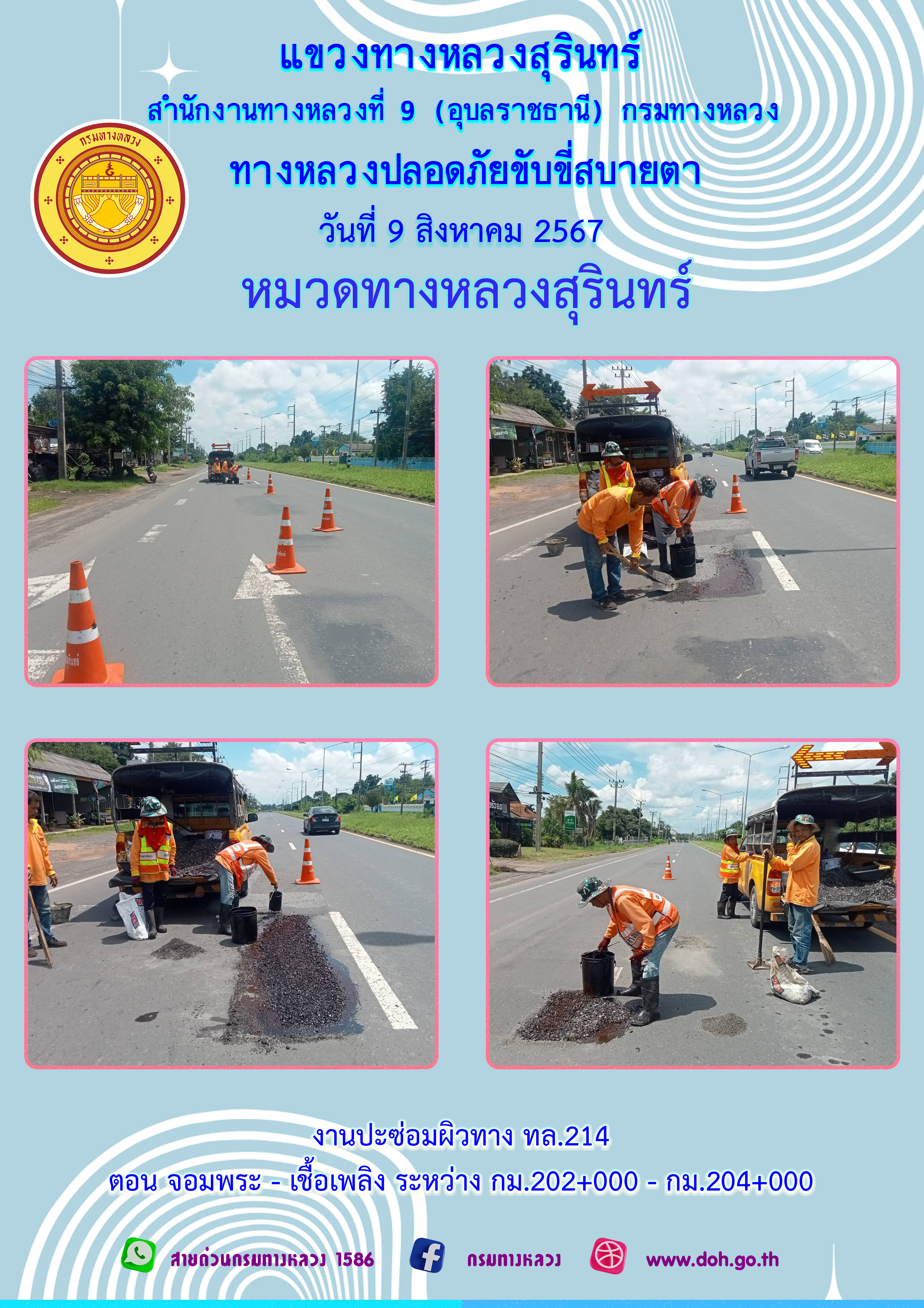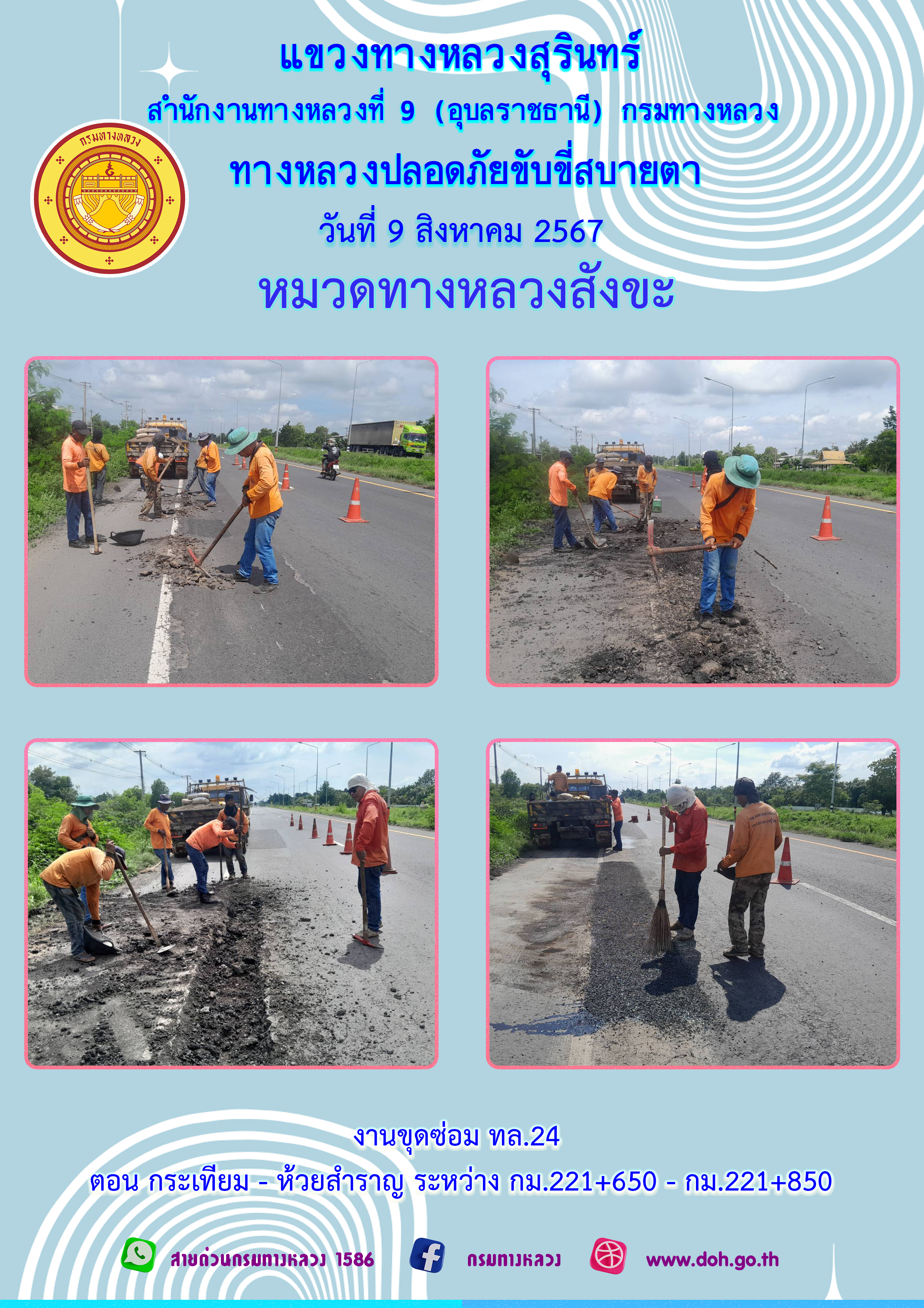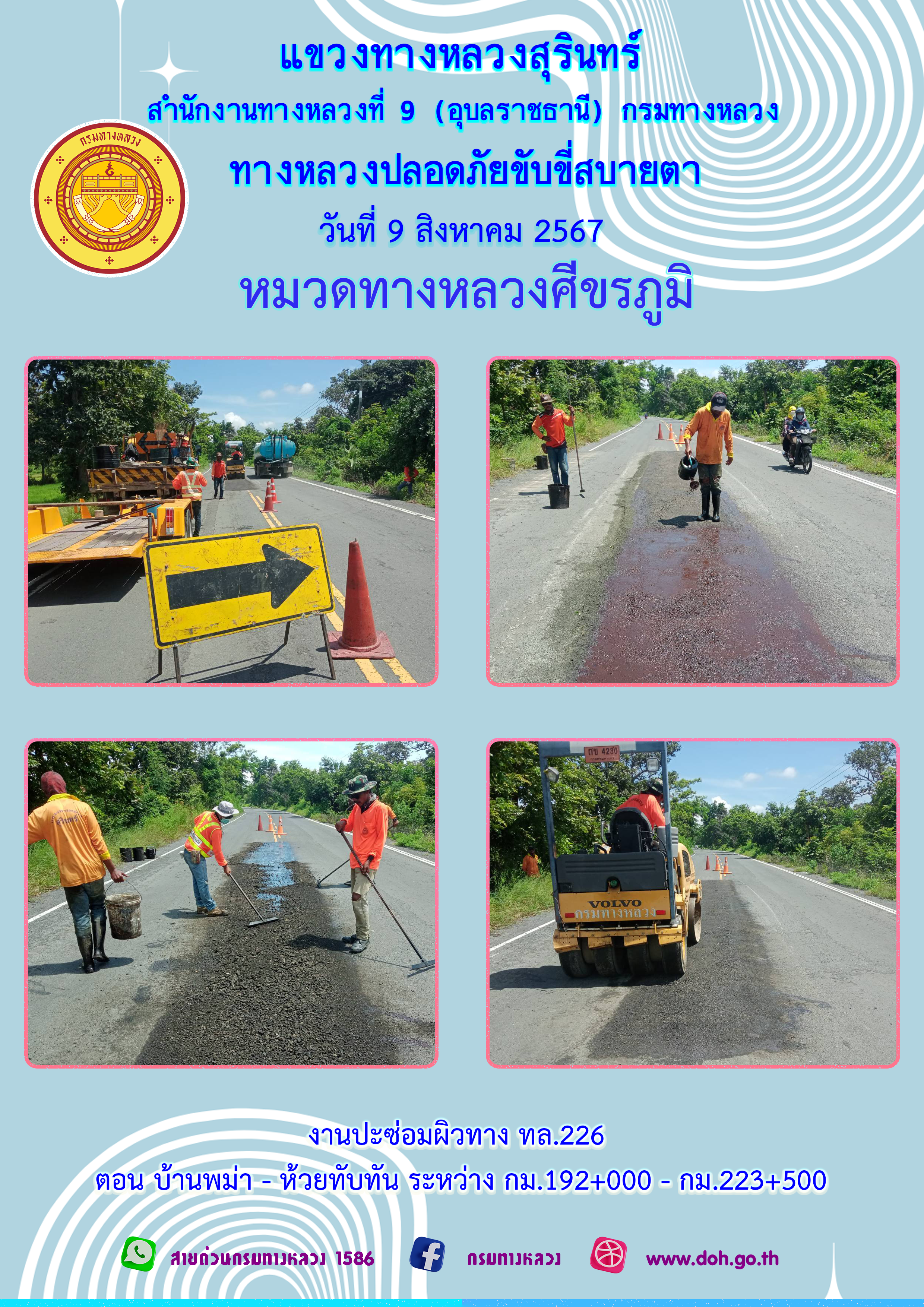 ข้อมูลภาพกิจกรรม : ทางหลวงปลอยภัย ขับขี่สบายตา 9 สิงหาคม 2567