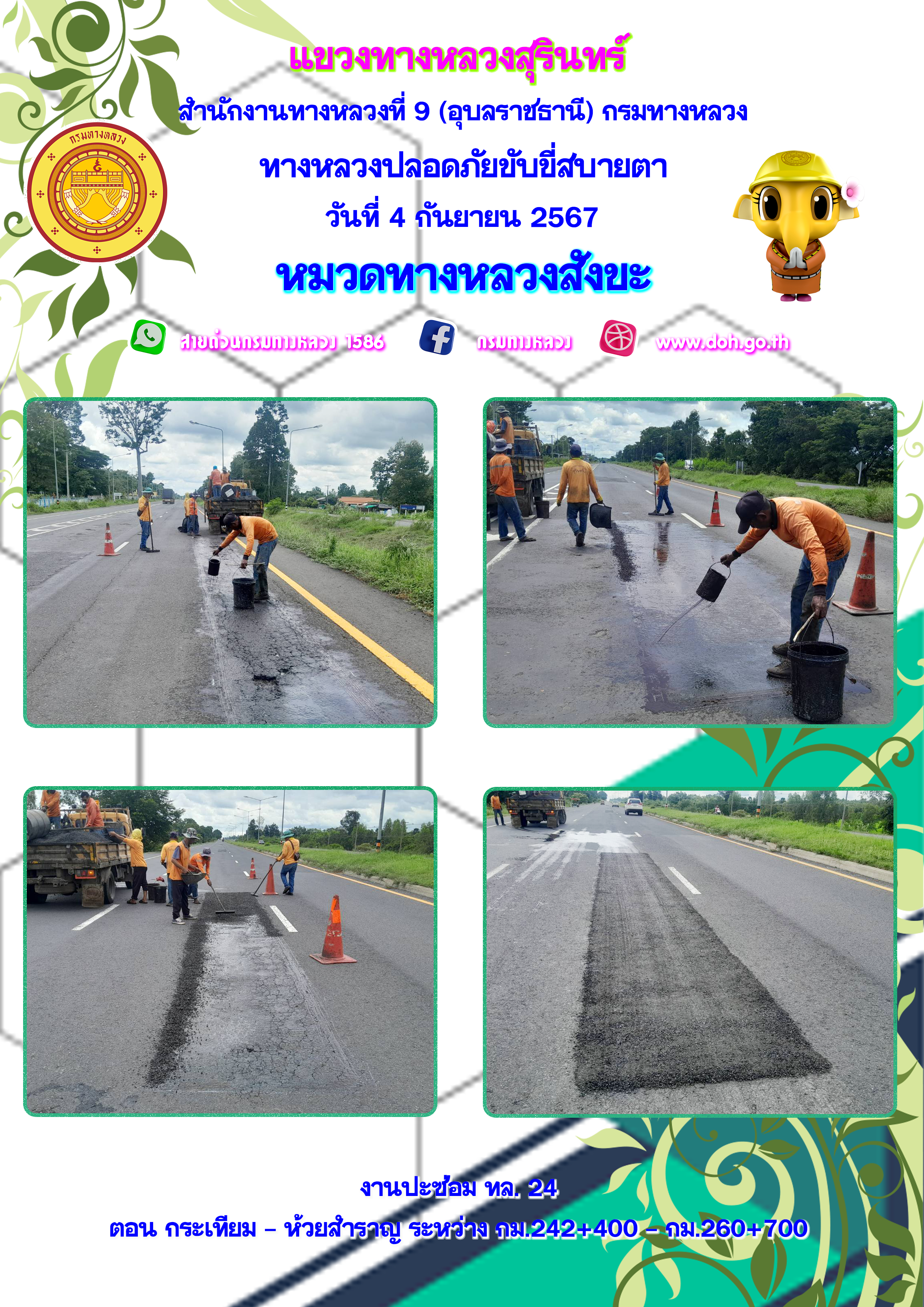 ข้อมูลภาพกิจกรรม : ทางหลวงปลอยภัย ขับขี่สบายตา 4 กันยายน 2567