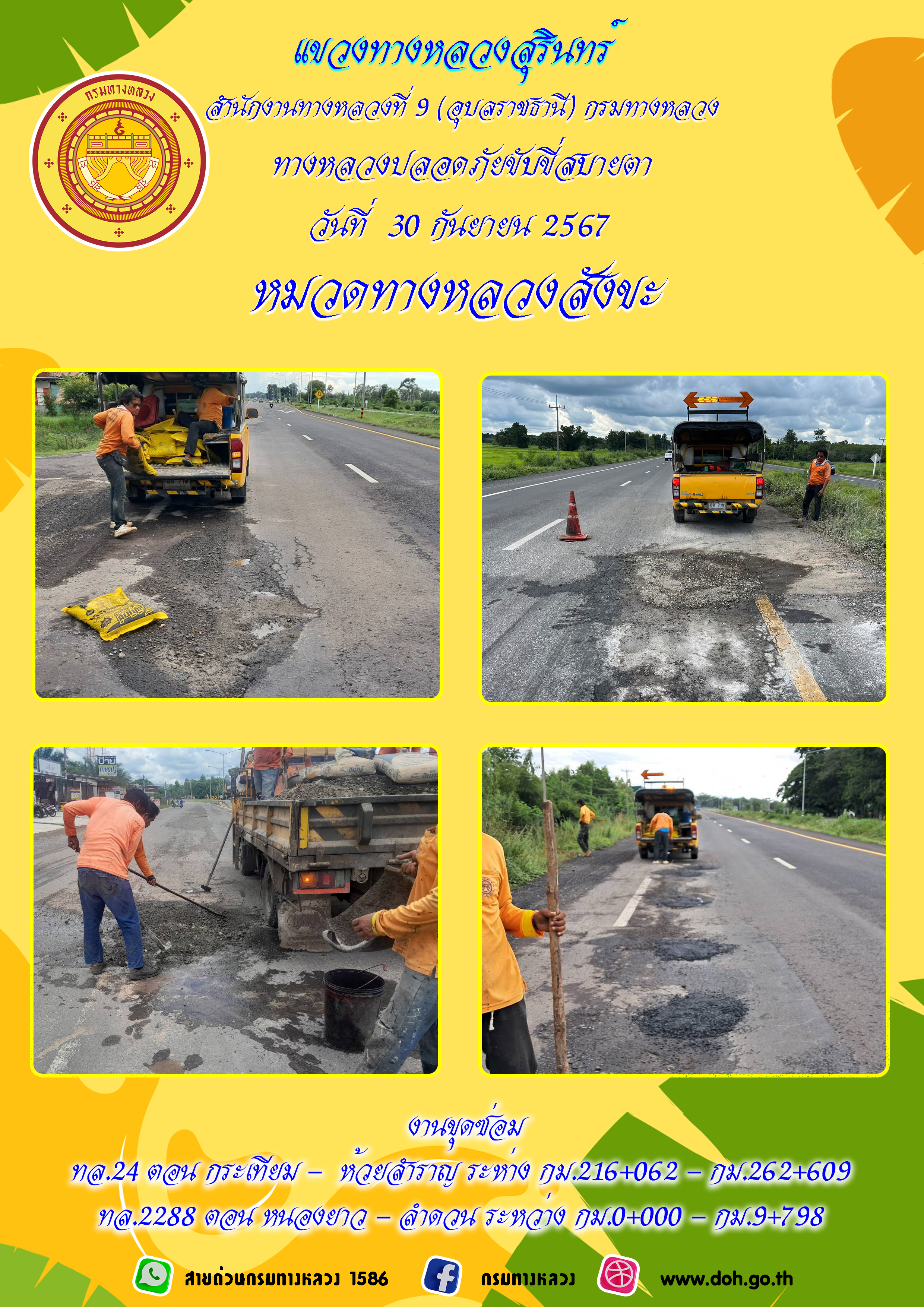 ทางหลวงปลอยภัย ขับขี่สบายตา 30 กันยายน 2567