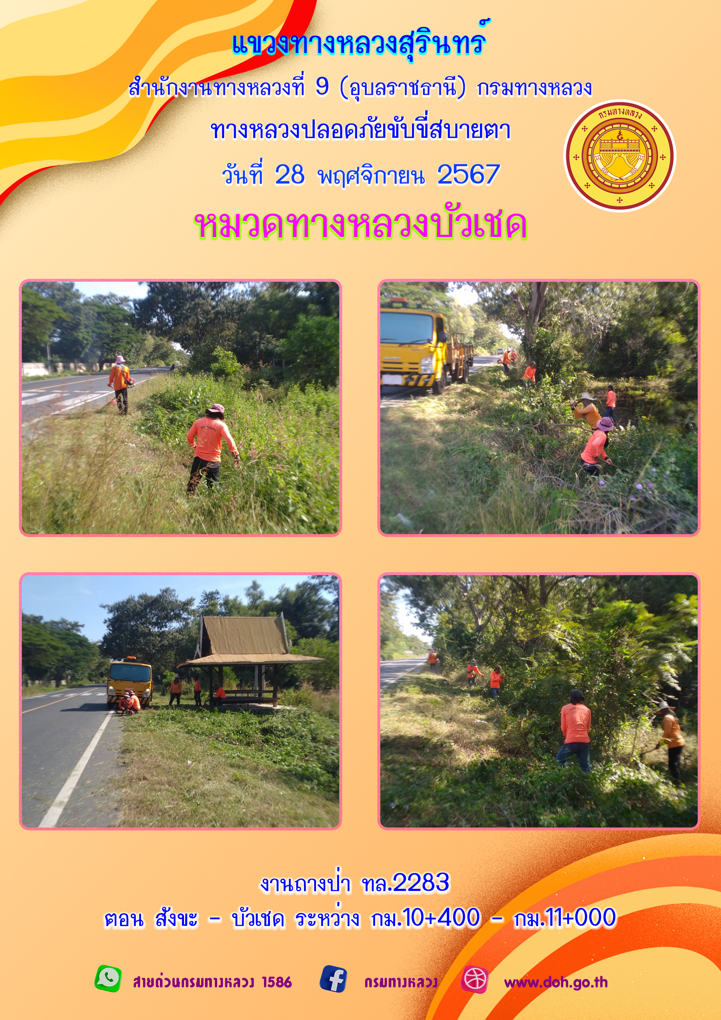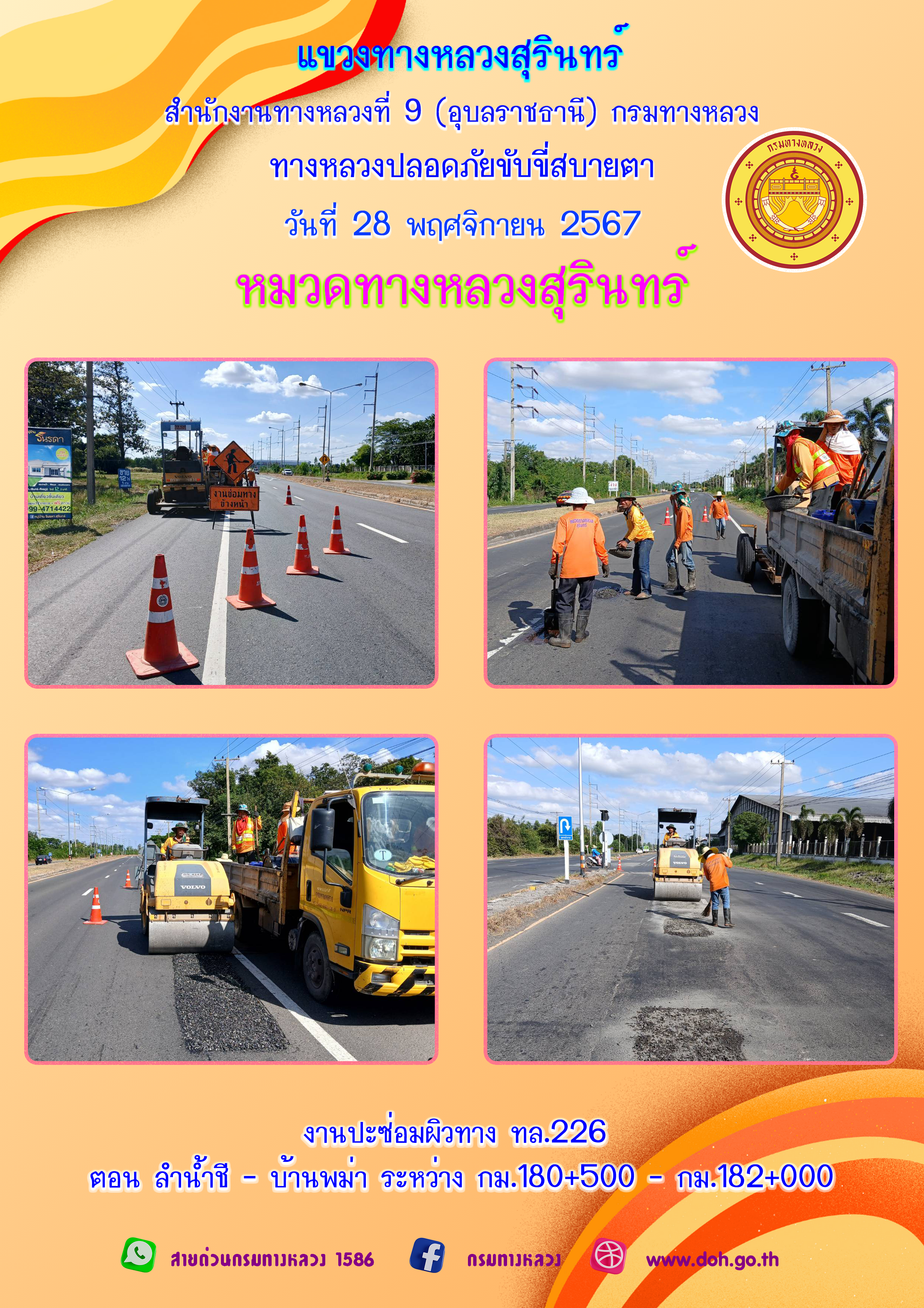 ข้อมูลภาพกิจกรรม : ทางหลวงปลอยภัย ขับขี่สบายตา 28 พฤศจิกายน 2567