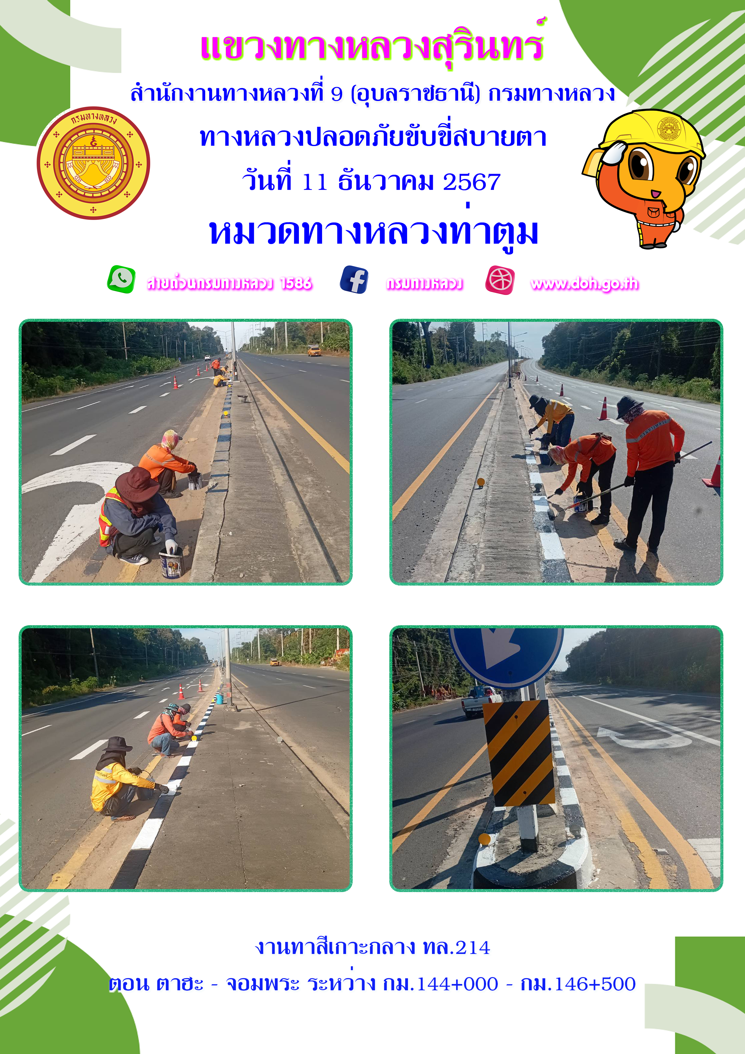 ข้อมูลภาพกิจกรรม : ทางหลวงปลอยภัย ขับขี่สบายตา 11 ธันวาคม 2567