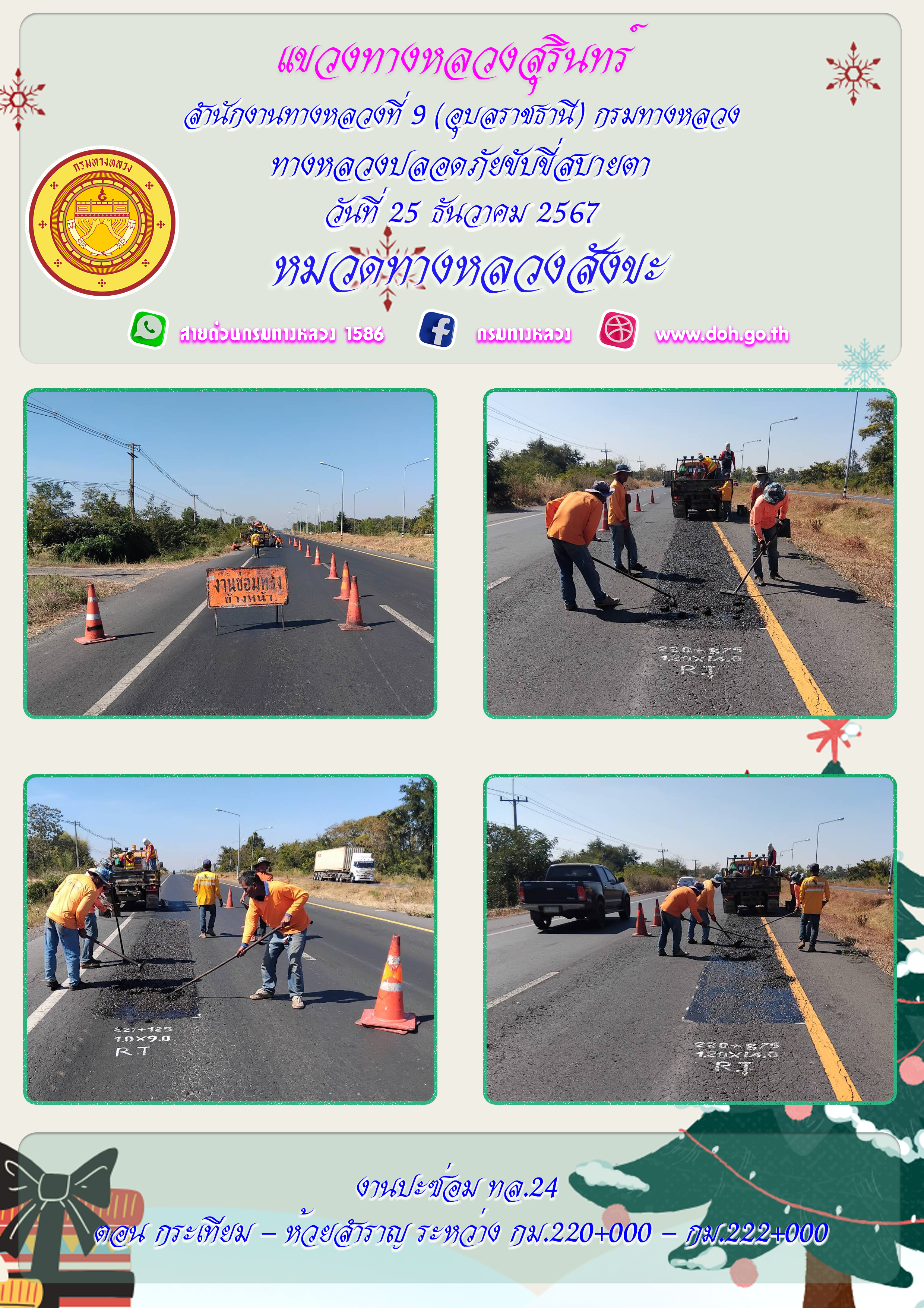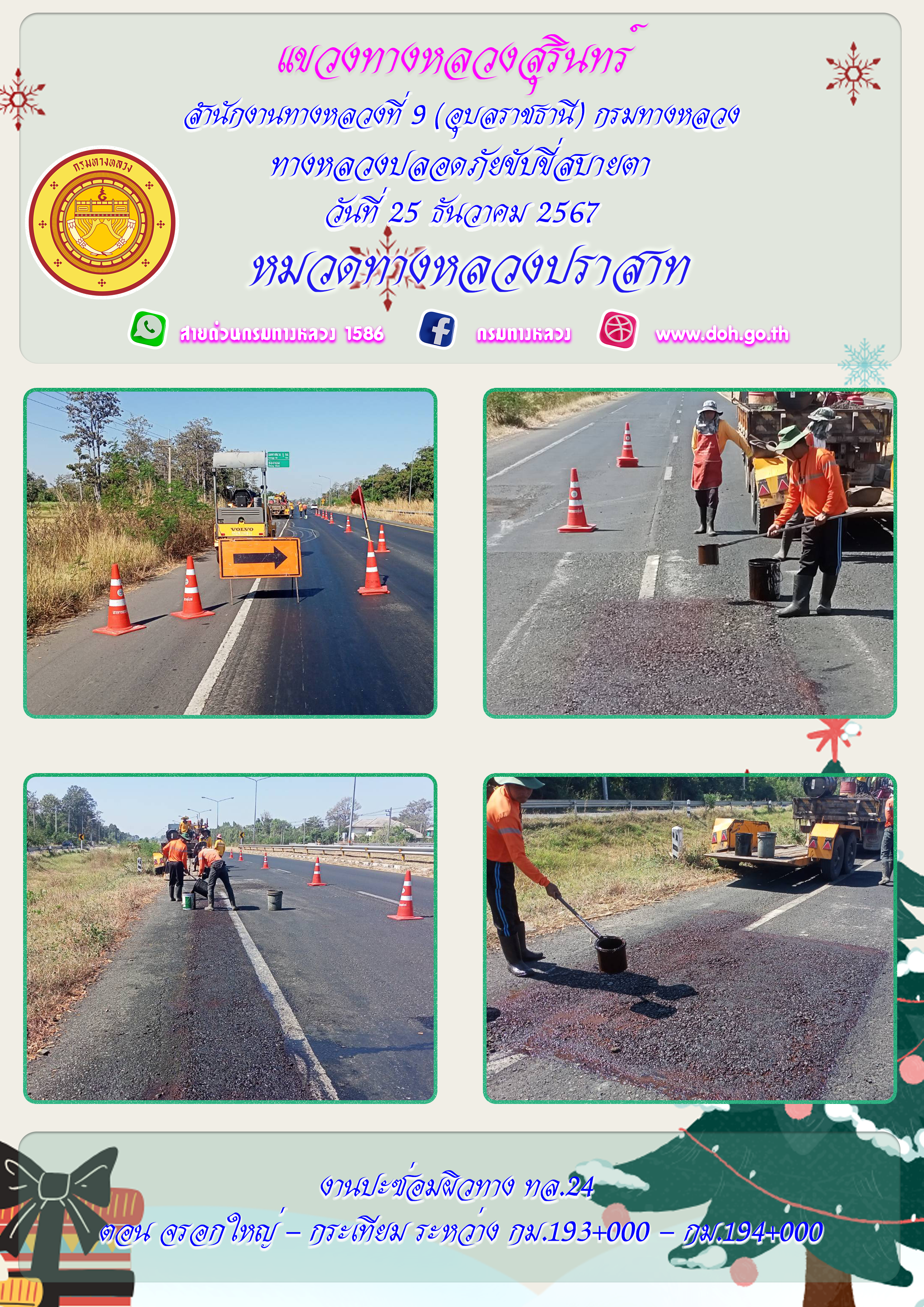 ข้อมูลภาพกิจกรรม : ทางหลวงปลอยภัย ขับขี่สบายตา 25 ธันวาคม 2567