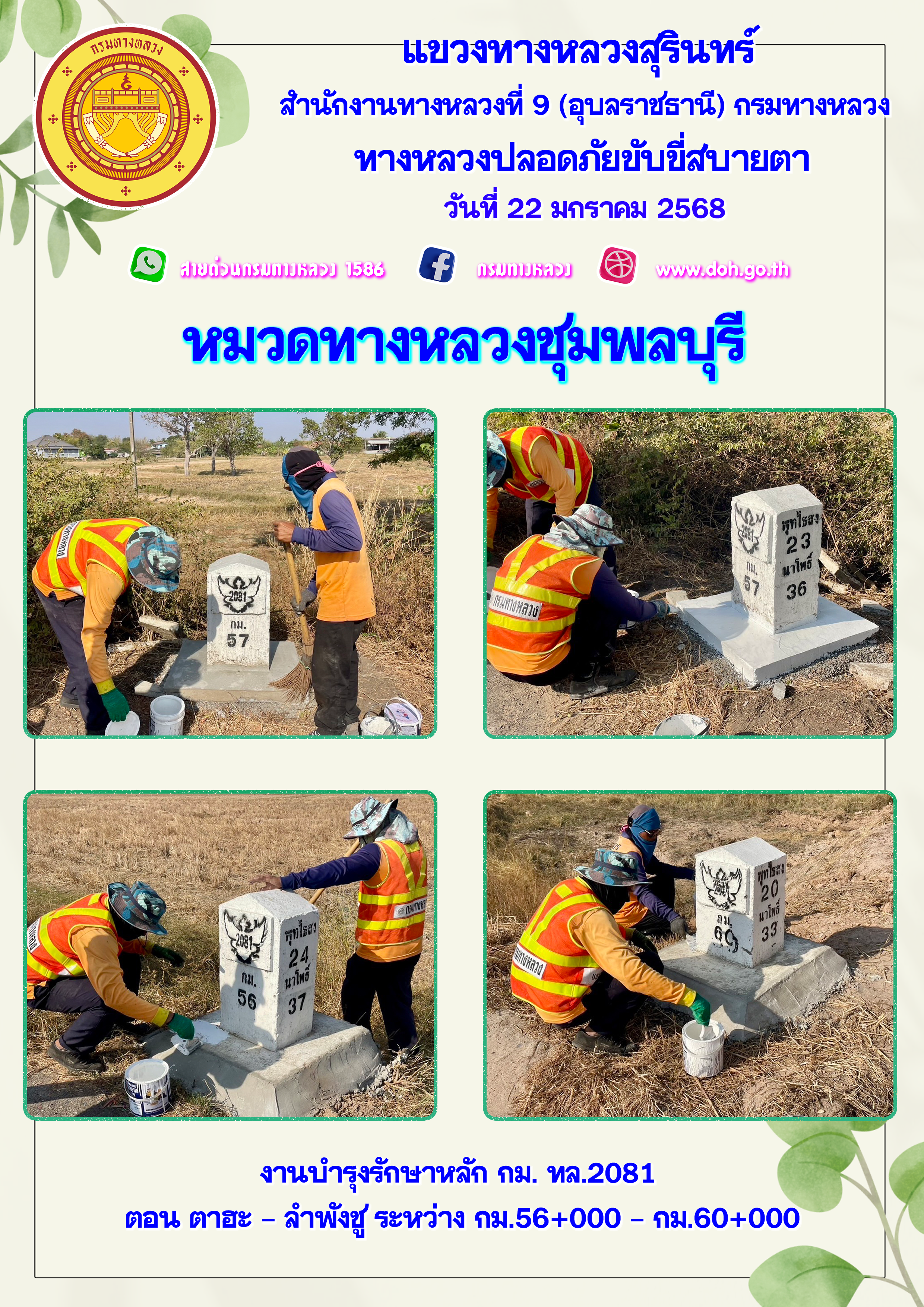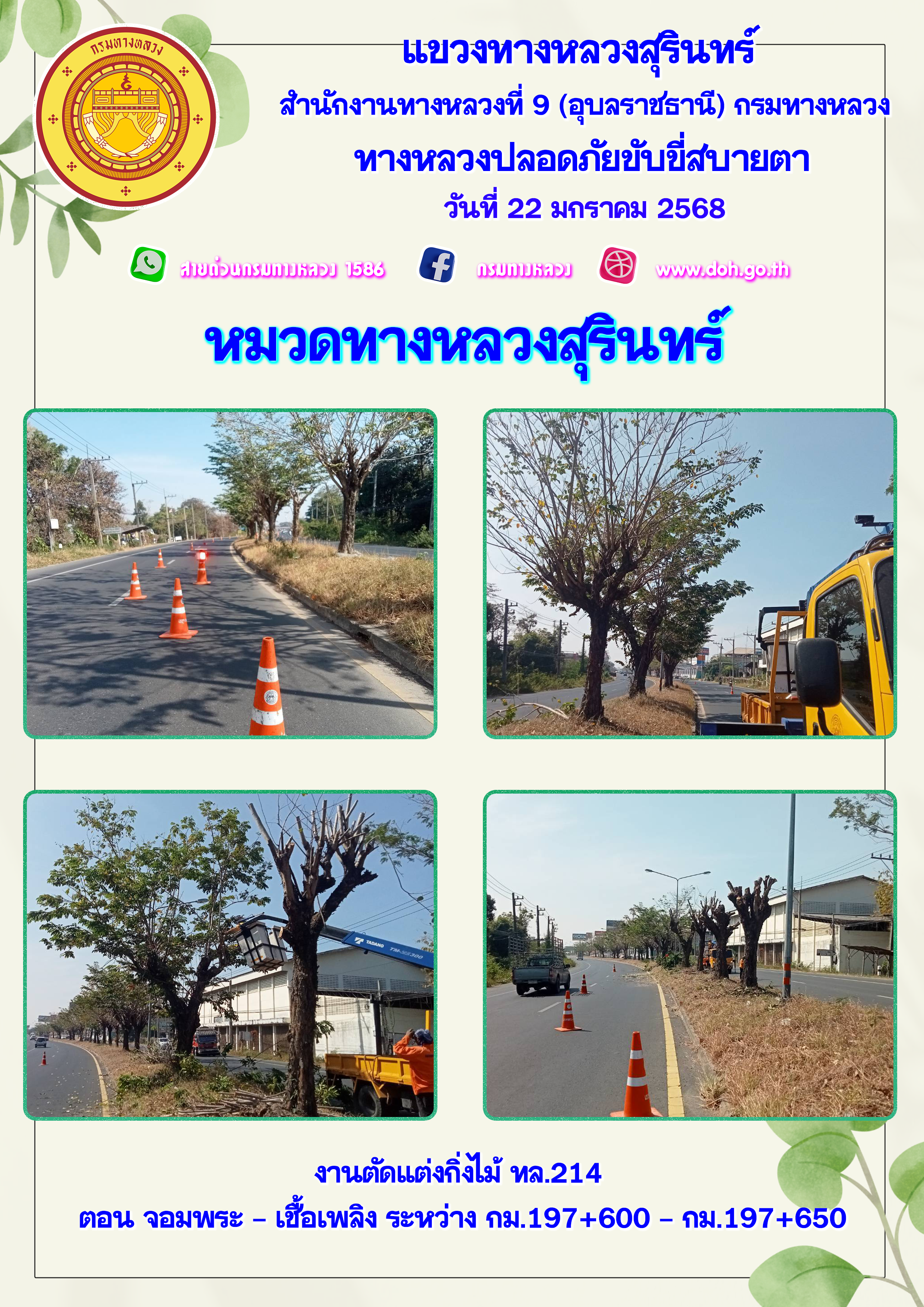 ทางหลวงปลอยภัย ขับขี่สบายตา 22 มกราคม 2568
