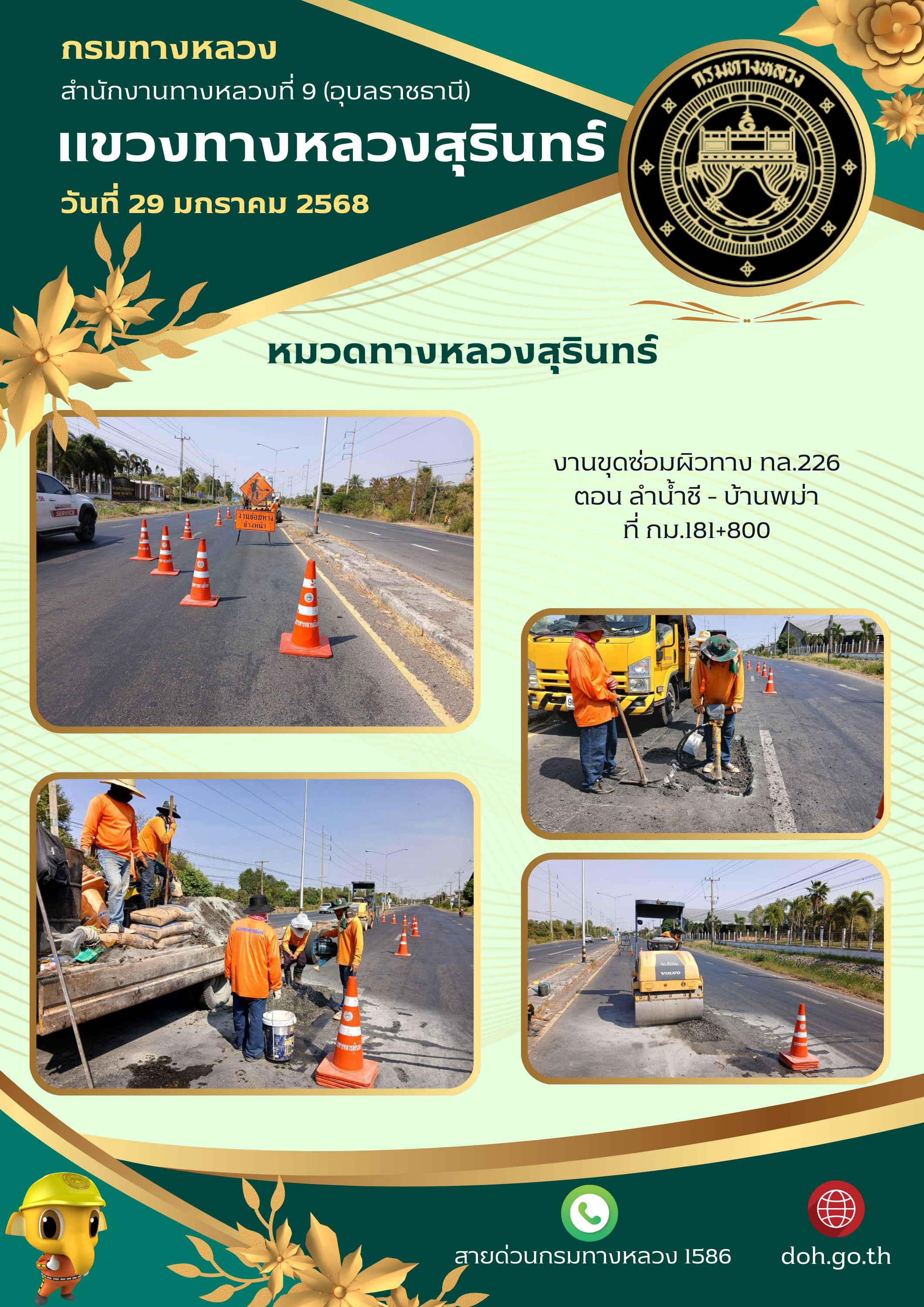 ทางหลวงปลอยภัย ขับขี่สบายตา 29 มกราคม 2568