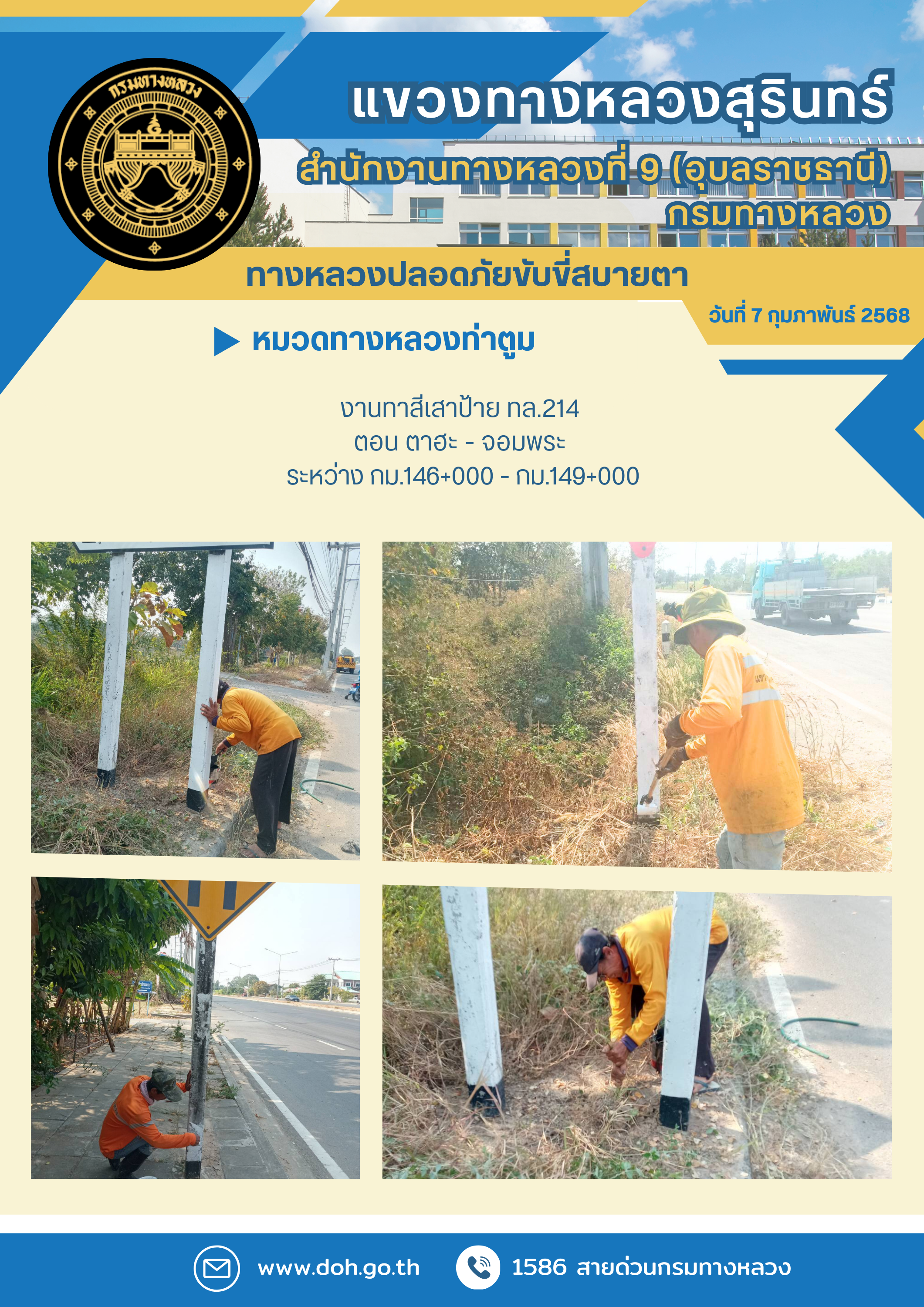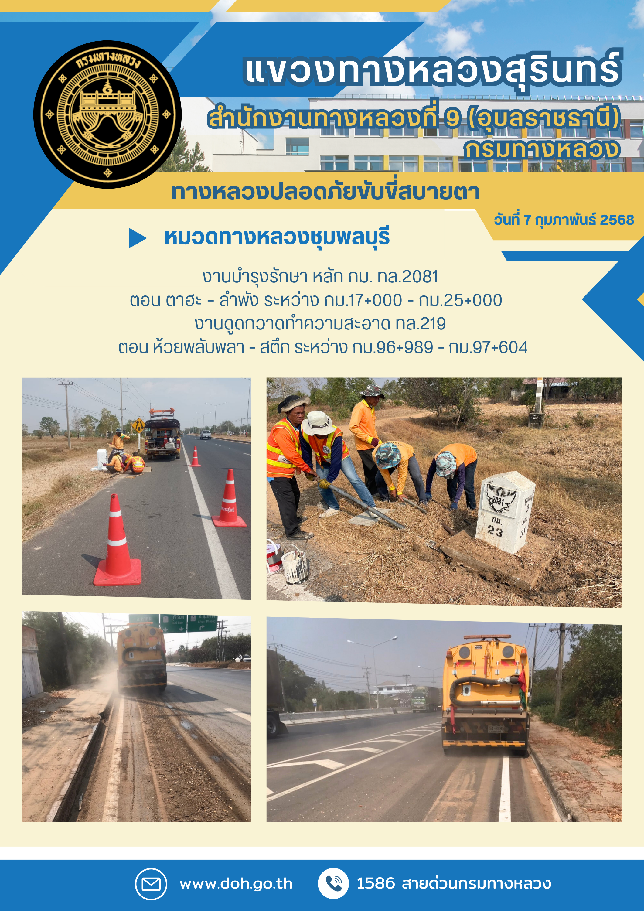 ข้อมูลภาพกิจกรรม : ทางหลวงปลอยภัย ขับขี่สบายตา 7 กุมภาพันธ์ 2568