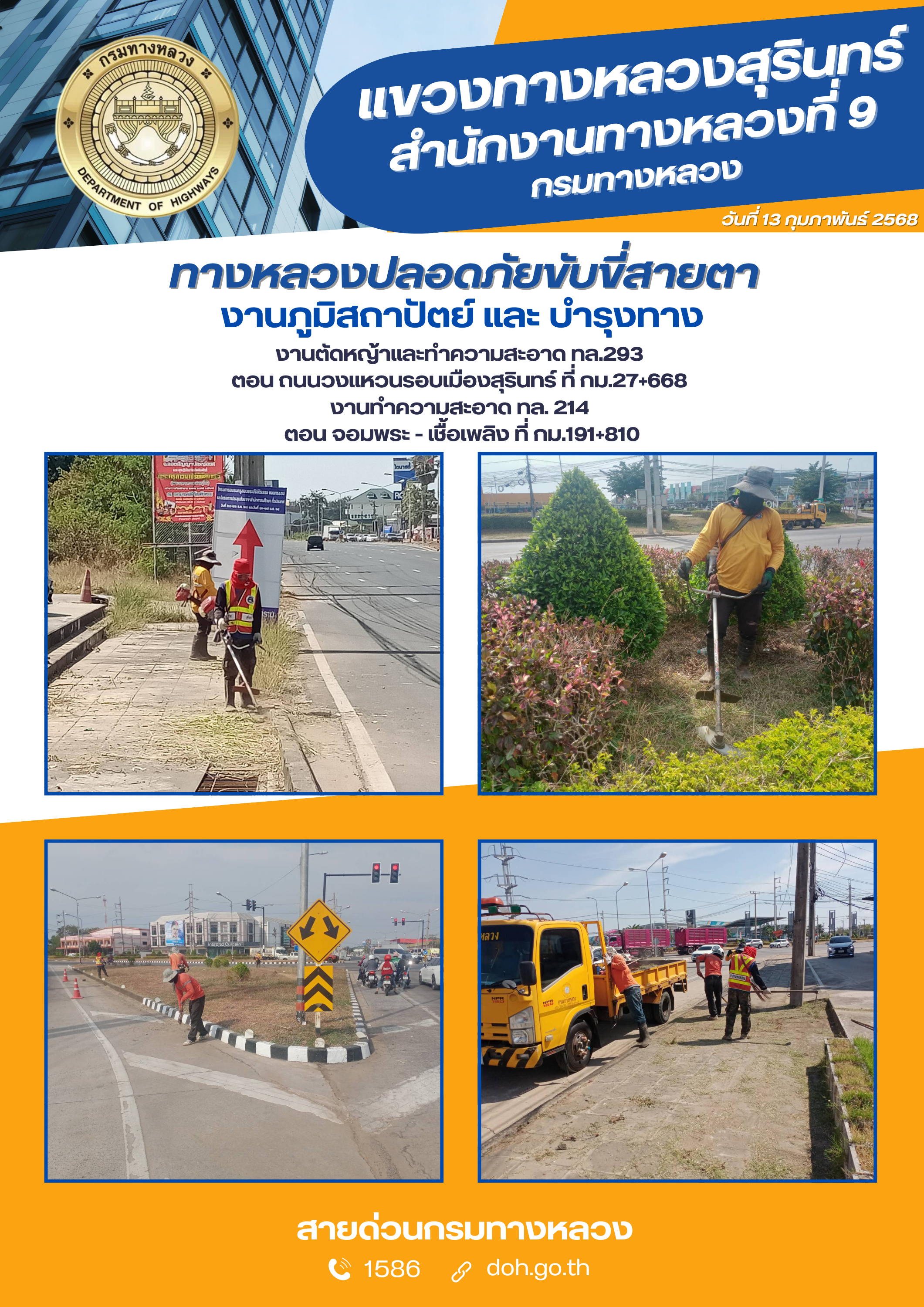 ข้อมูลภาพกิจกรรม : ทางหลวงปลอยภัย ขับขี่สบายตา 13 กุมภาพันธ์ 2568