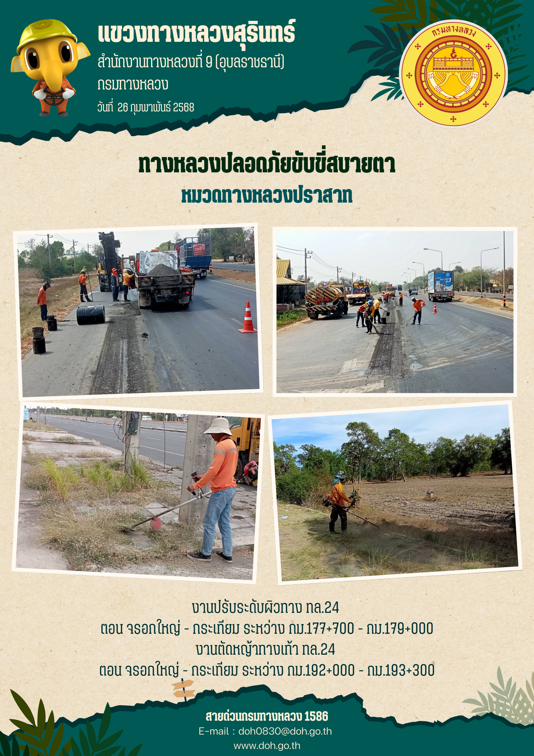 ข้อมูลภาพกิจกรรม : ทางหลวงปลอยภัย ขับขี่สบายตา 26 กุมภาพันธ์ 2568