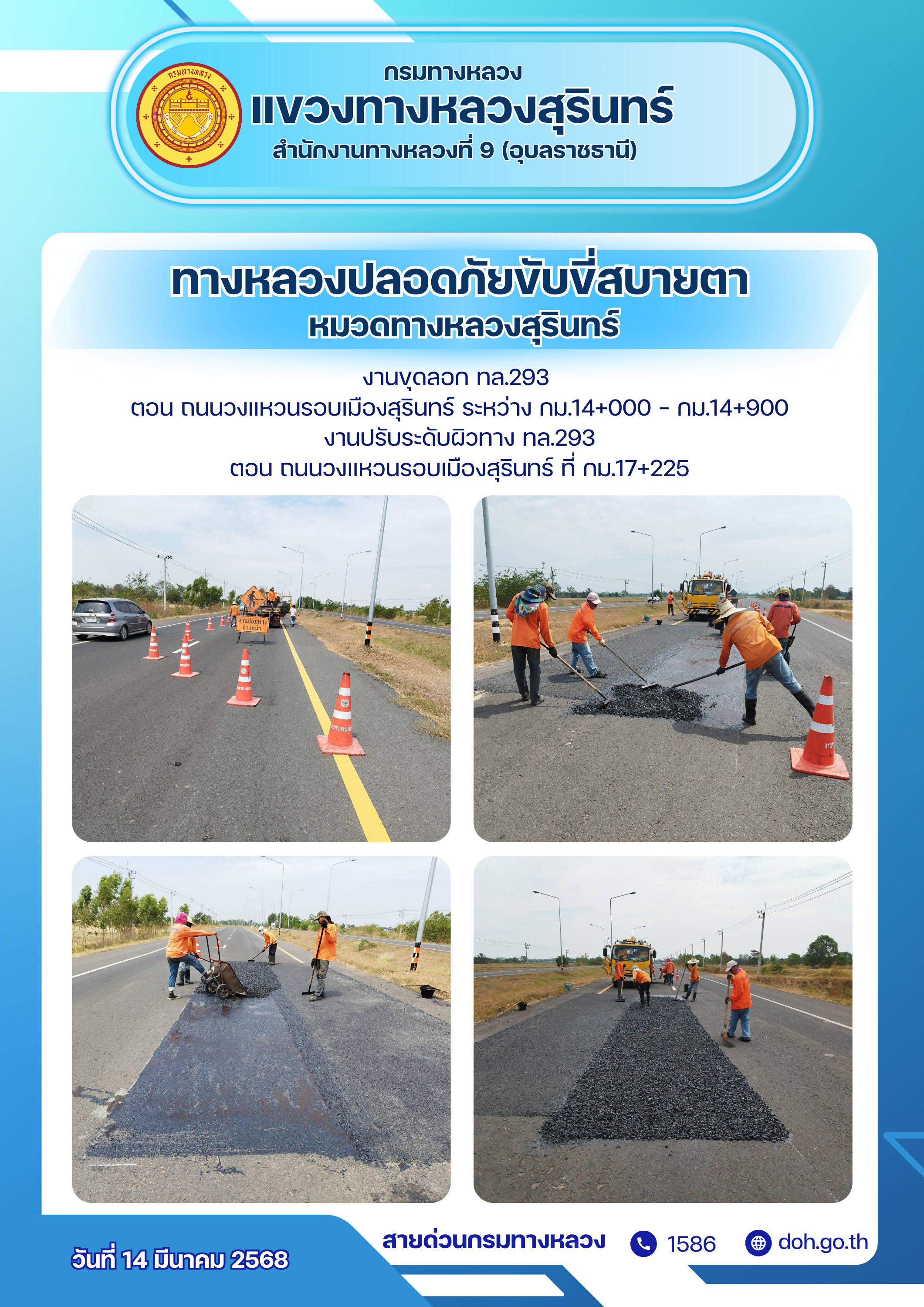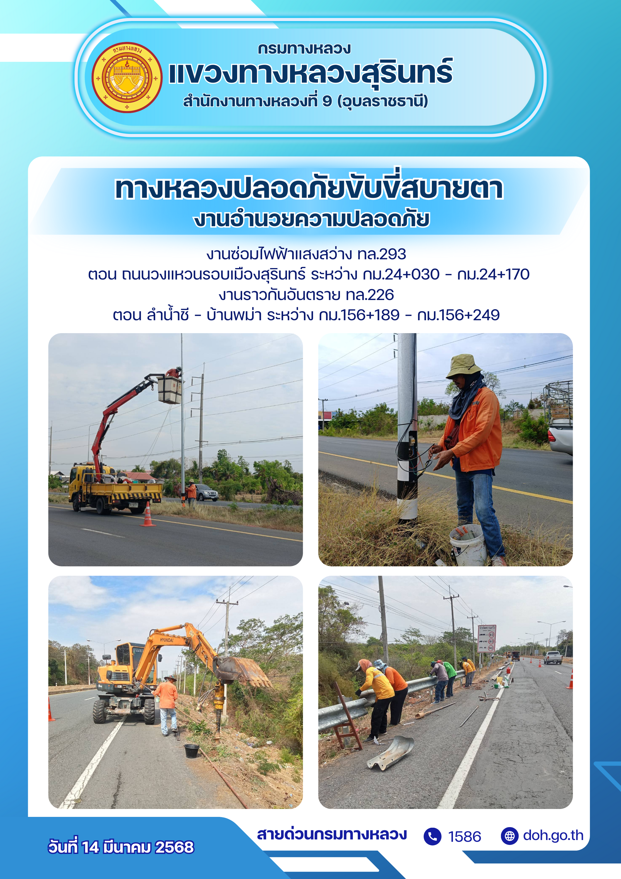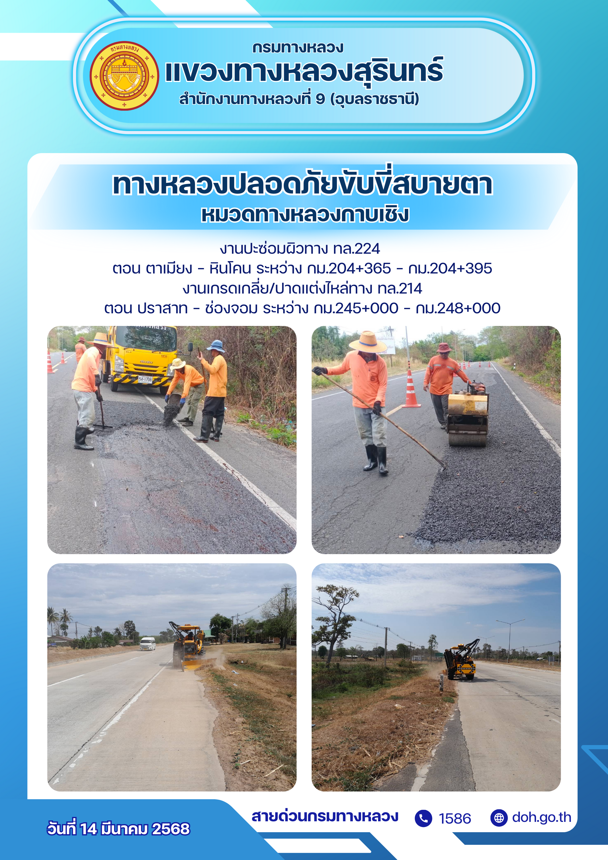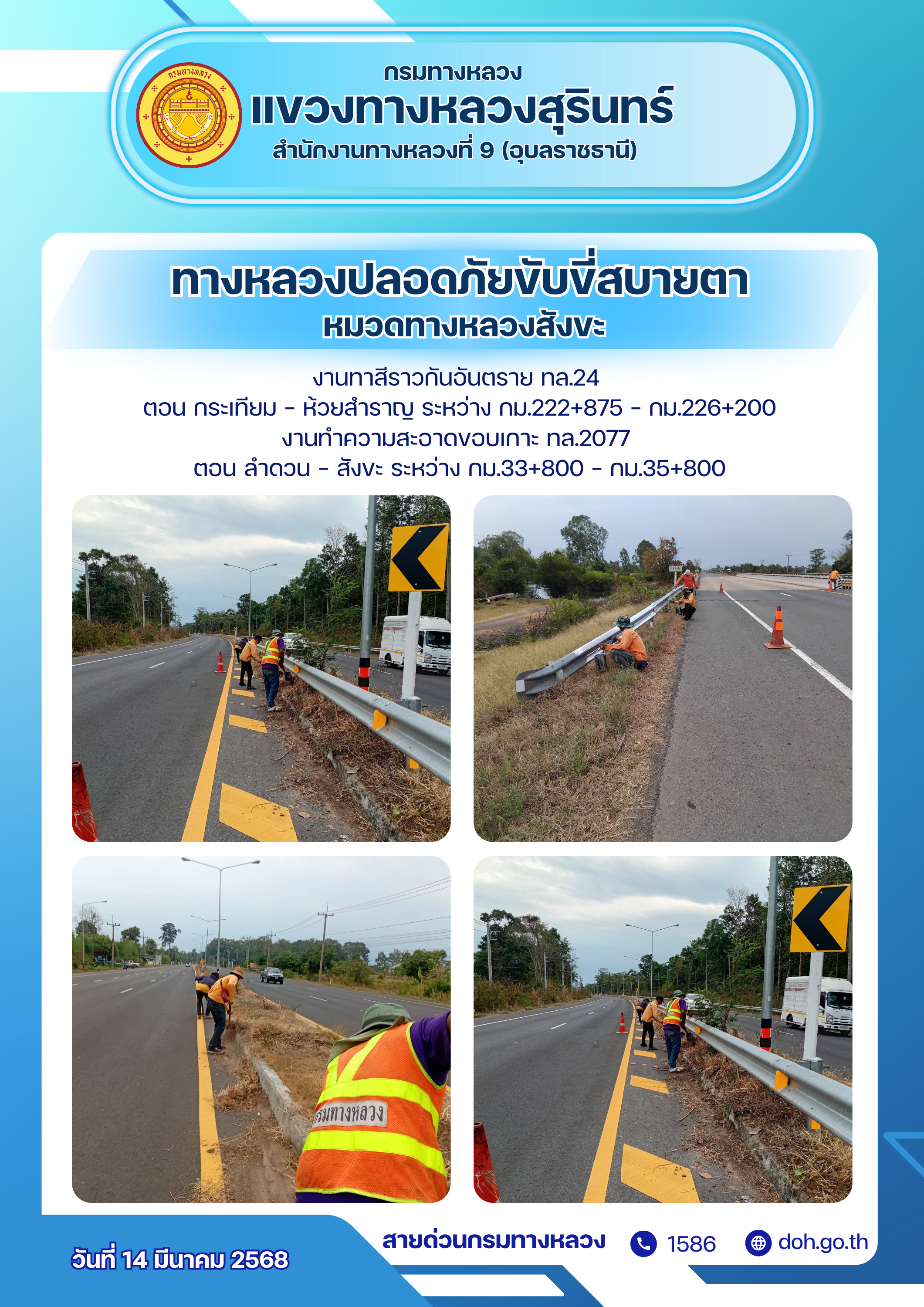 ทางหลวงปลอยภัย ขับขี่สบายตา 14 มีนาคม 2568