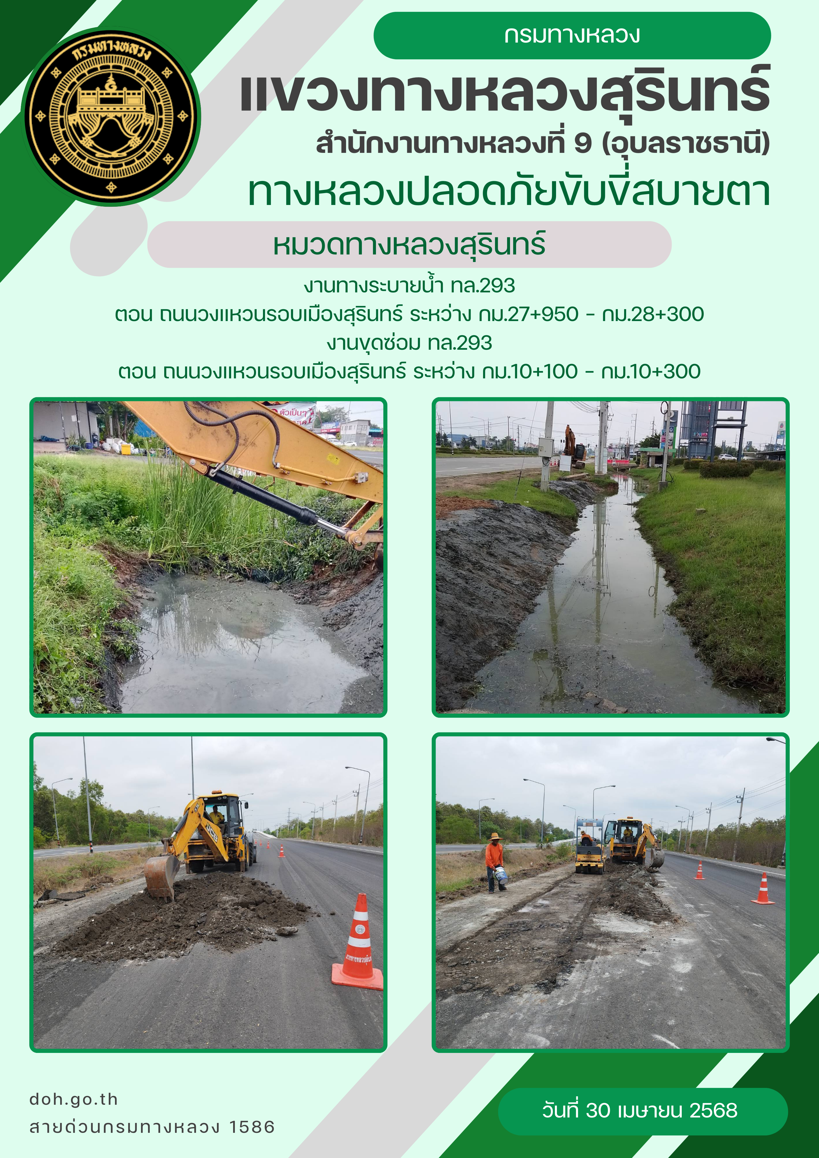 ทางหลวงปลอยภัย ขับขี่สบายตา 30 เมษายน 2568