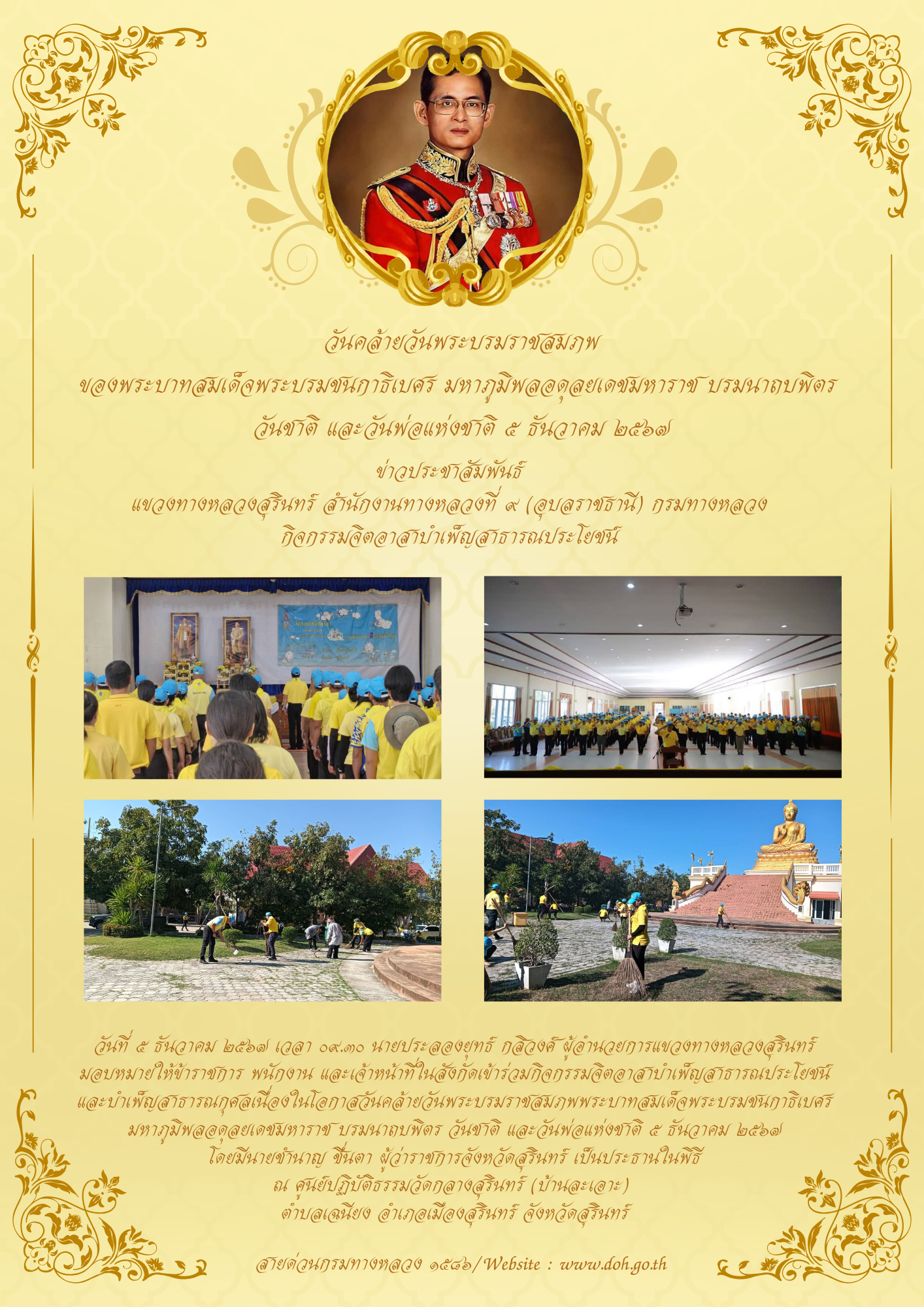 วันที่ ๕ ธันวาคม ๒๕๖๗ เวลา ๐๙.๓๐ นายประลองยุทธ์ กสิวงศ์ ผู้อำนวยการแขวงทางหลวงสุรินทร์