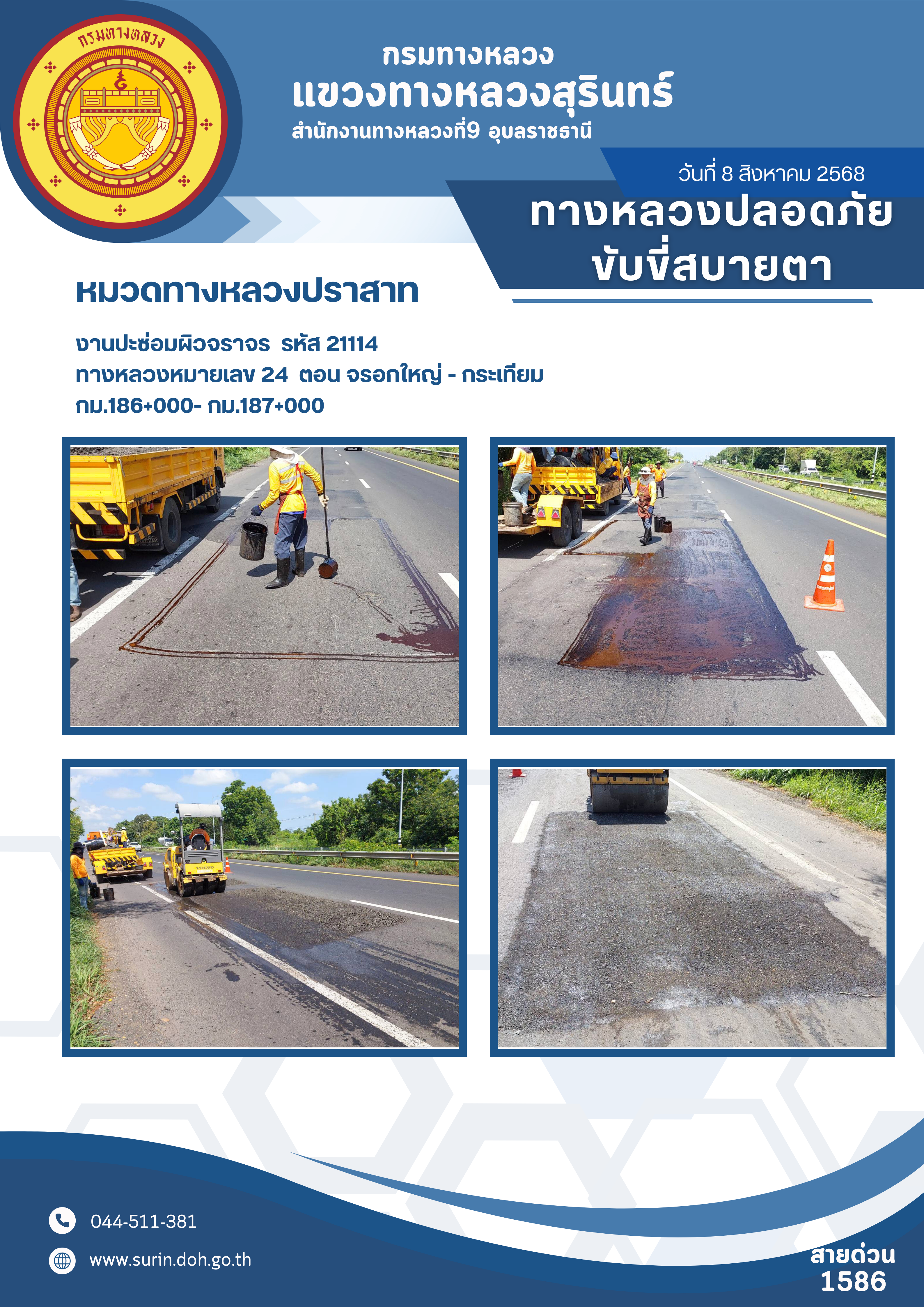ข้อมูลข่าว : ทางหลวงปลอดภัย ขับขี่สบายตา 8 สิงหาคม 2568