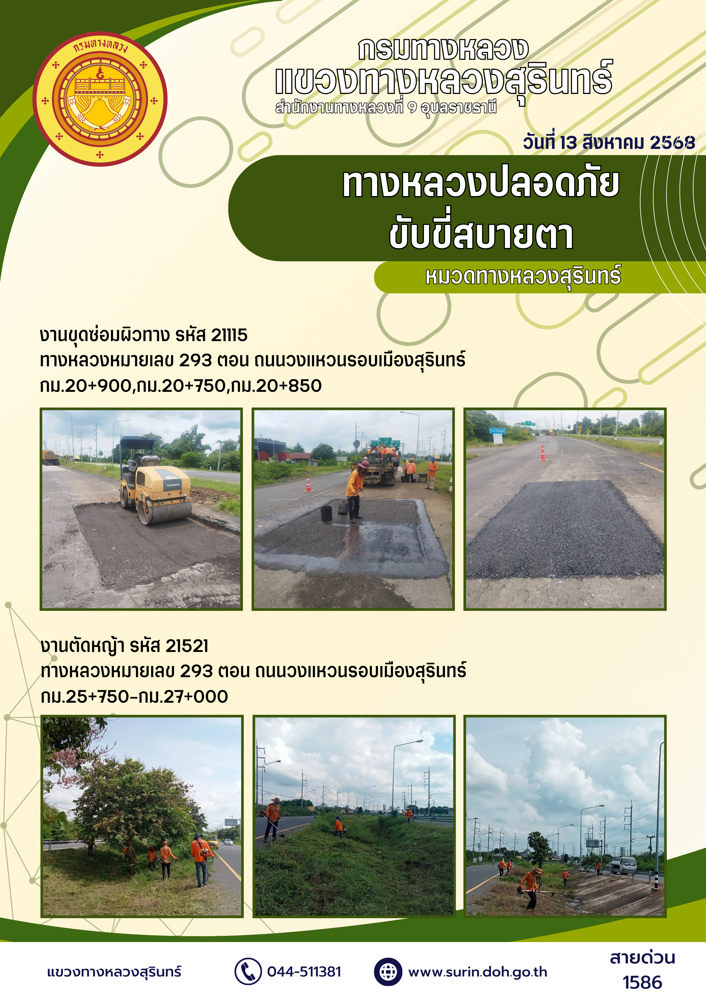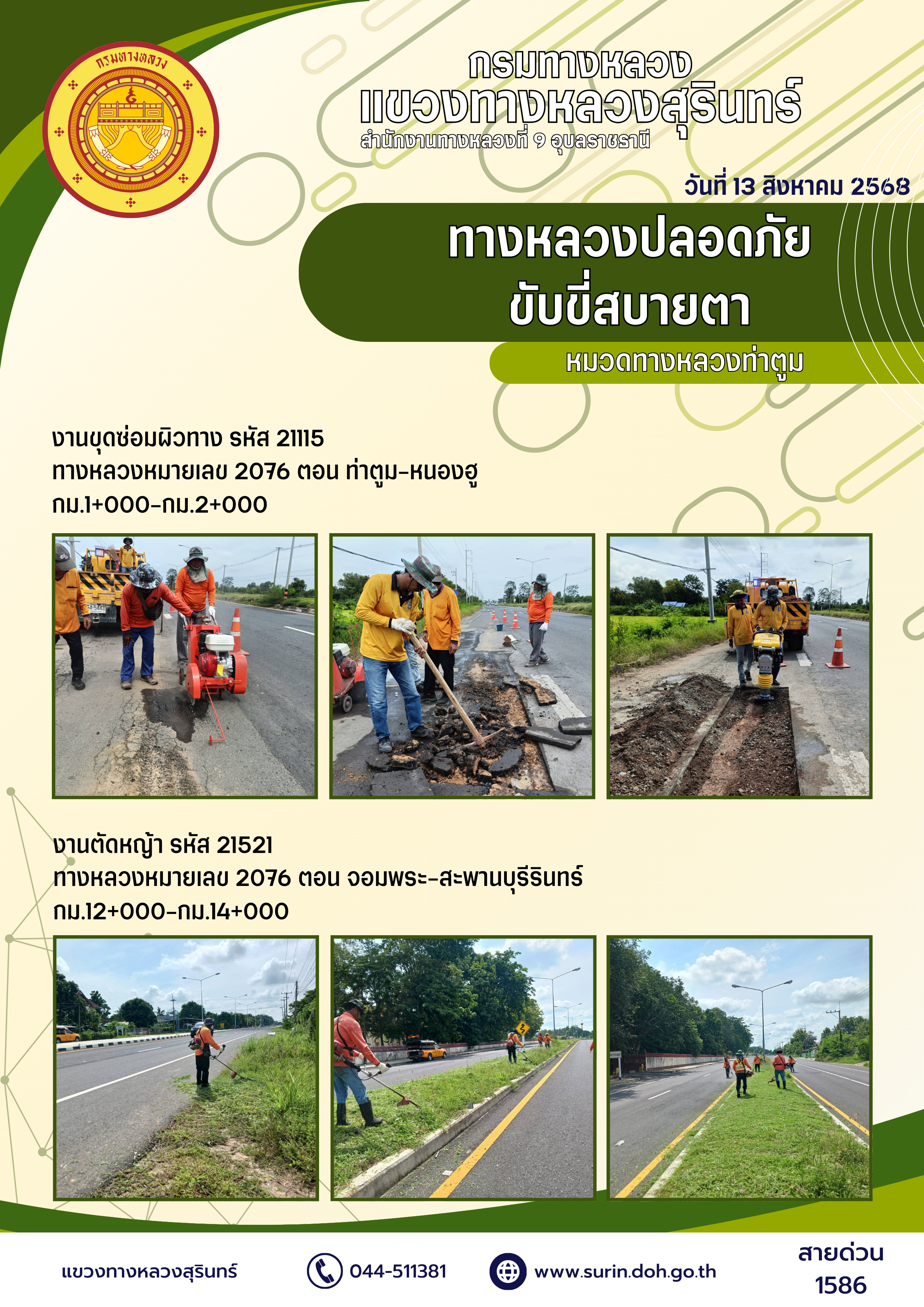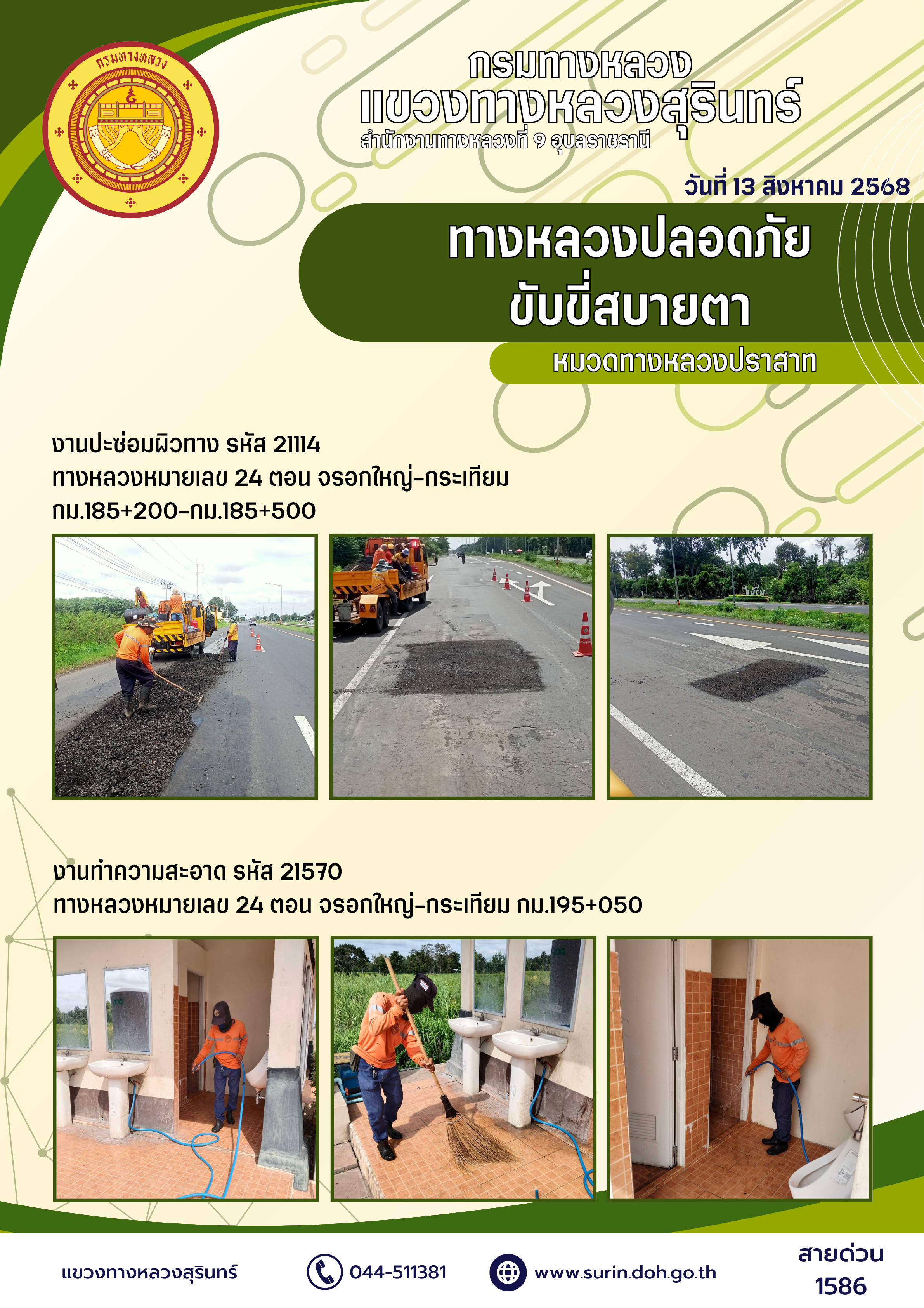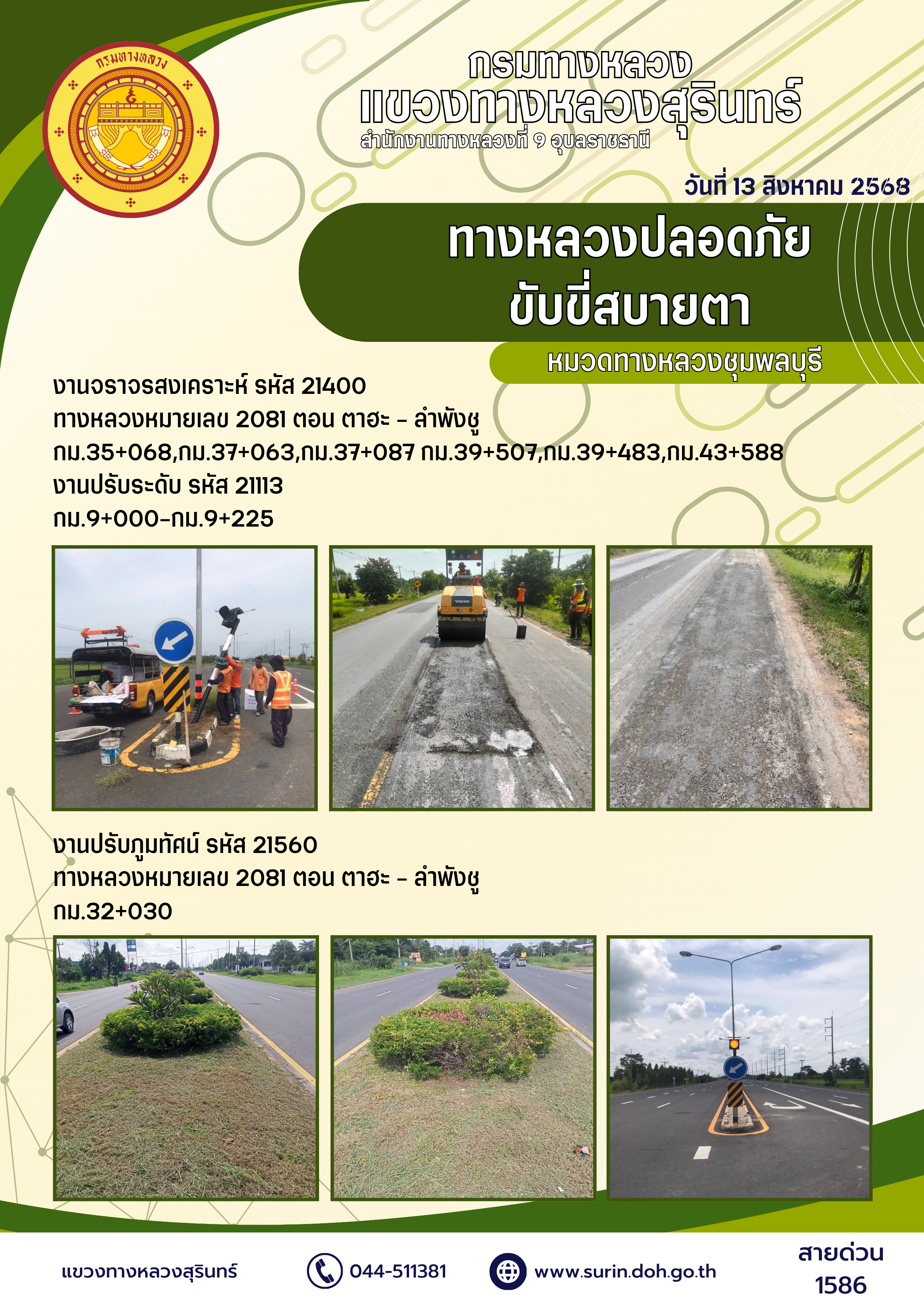 ข้อมูลข่าว : ทางหลวงปลอดภัย ขับขี่สบายตา 13 สิงหาคม 2568