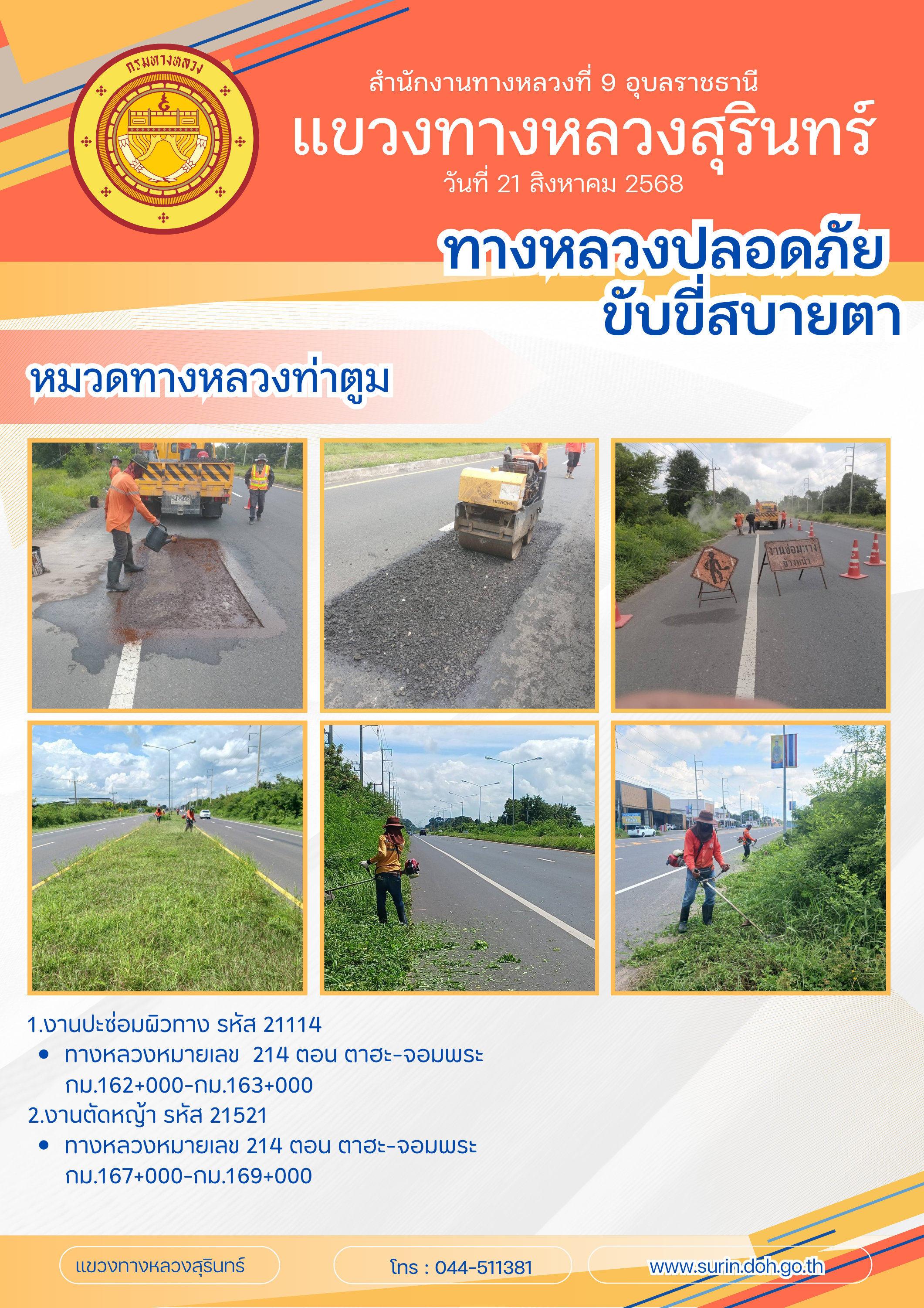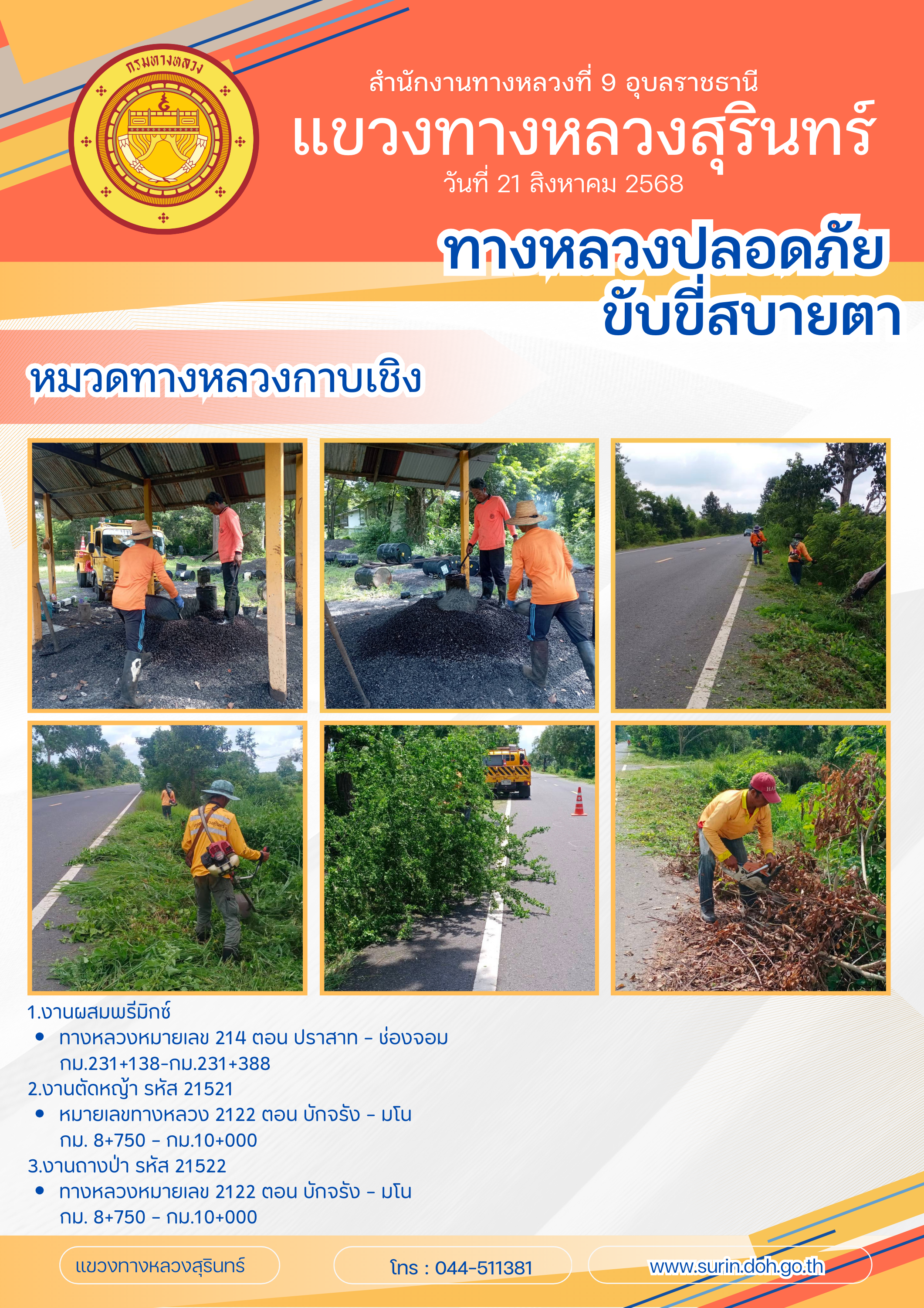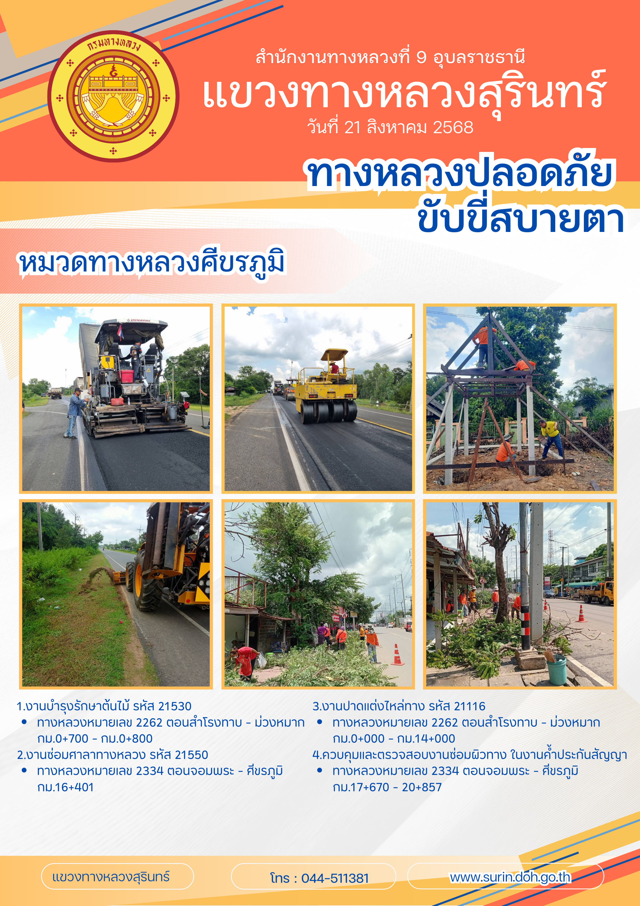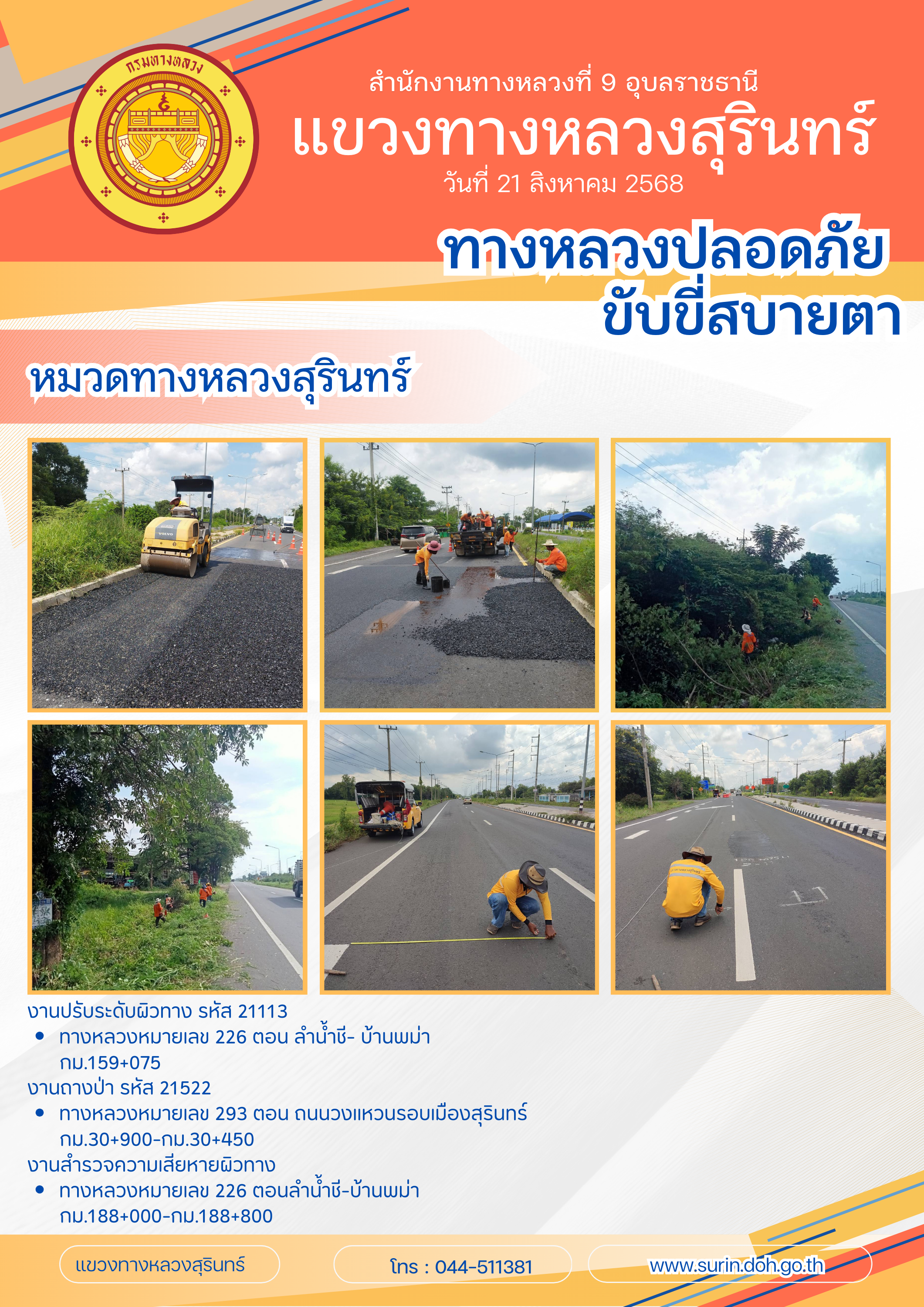 ทางหลวงปลอดภัย ขับขี่สบายตา 21 สิงหาคม 2568