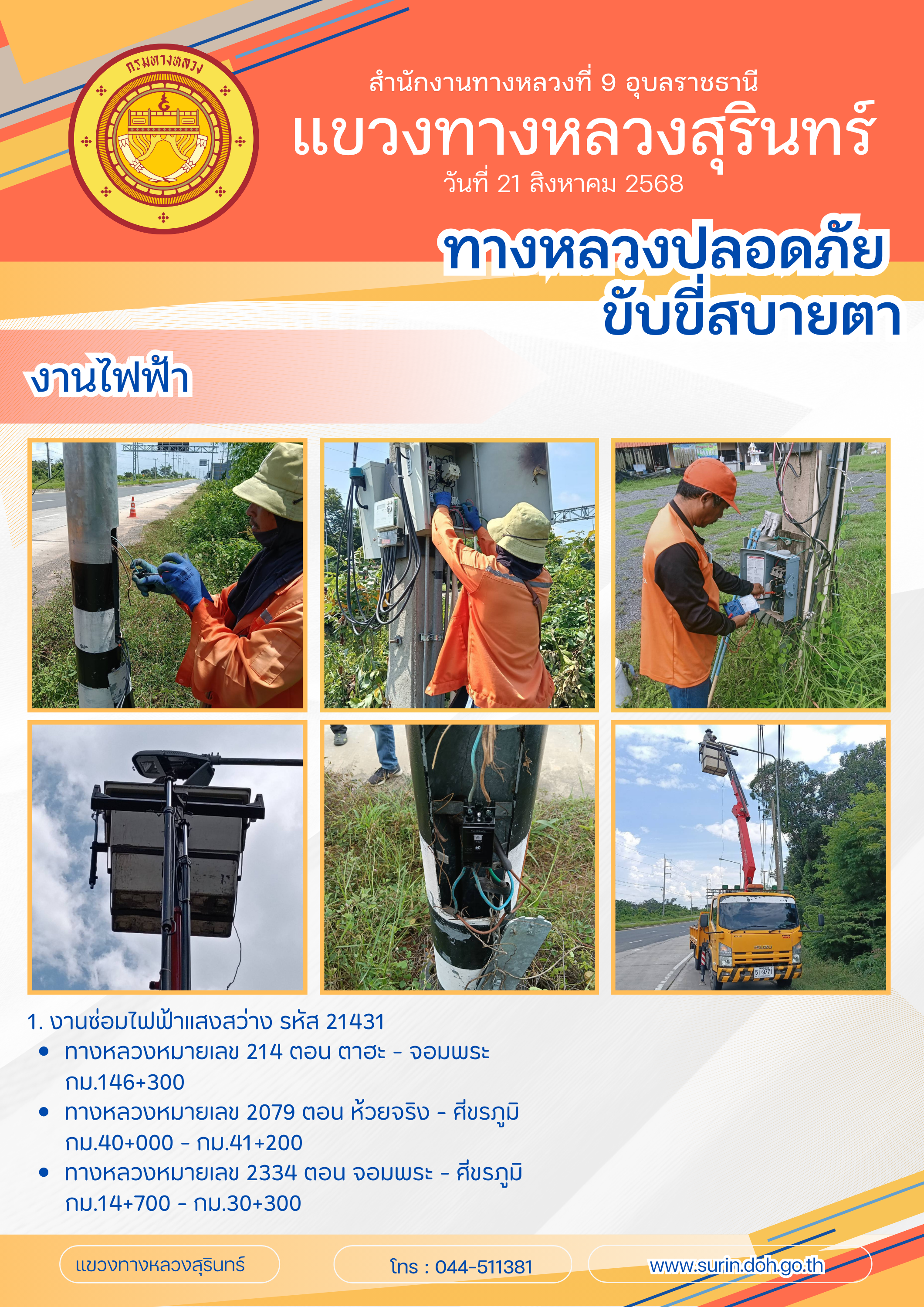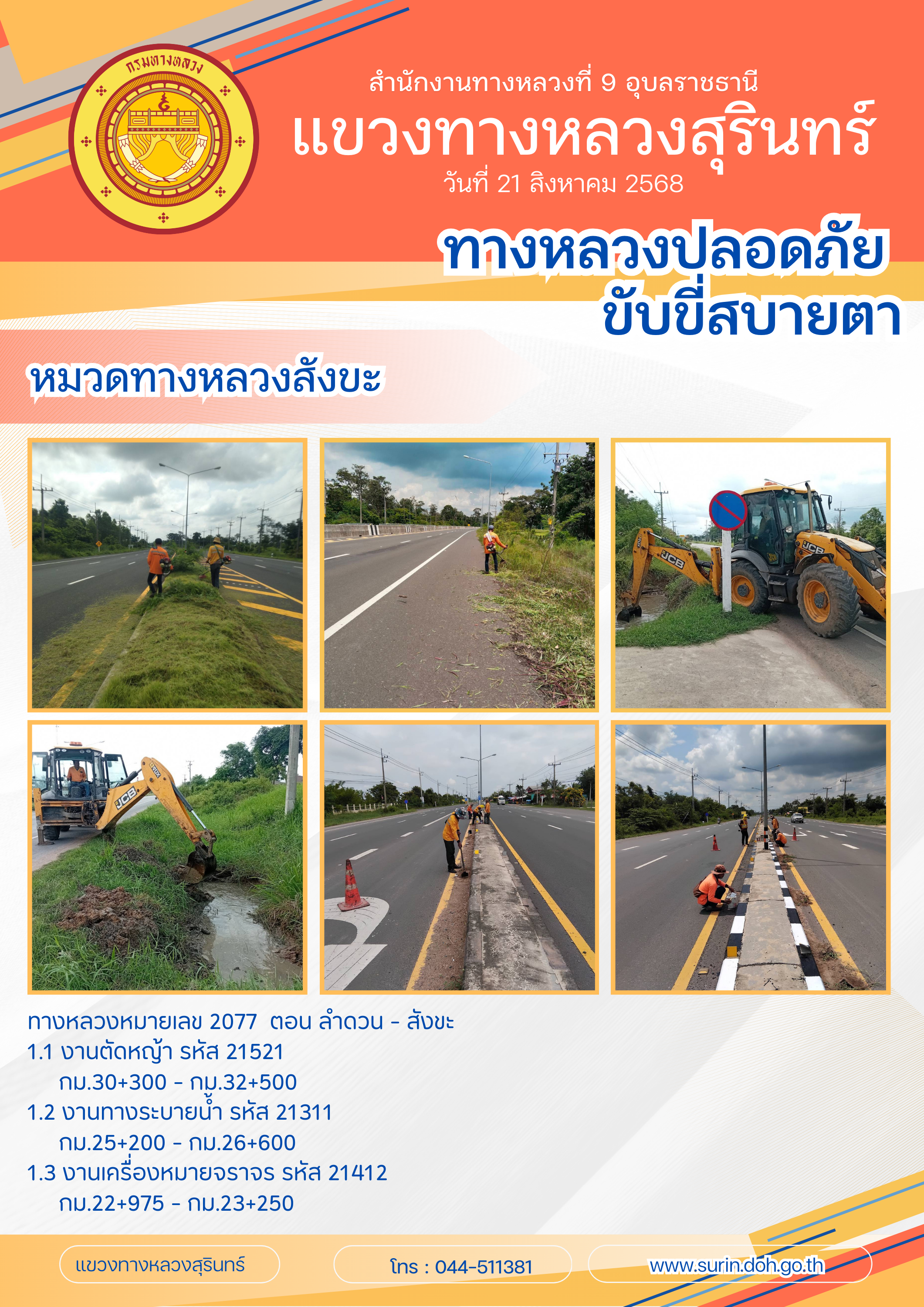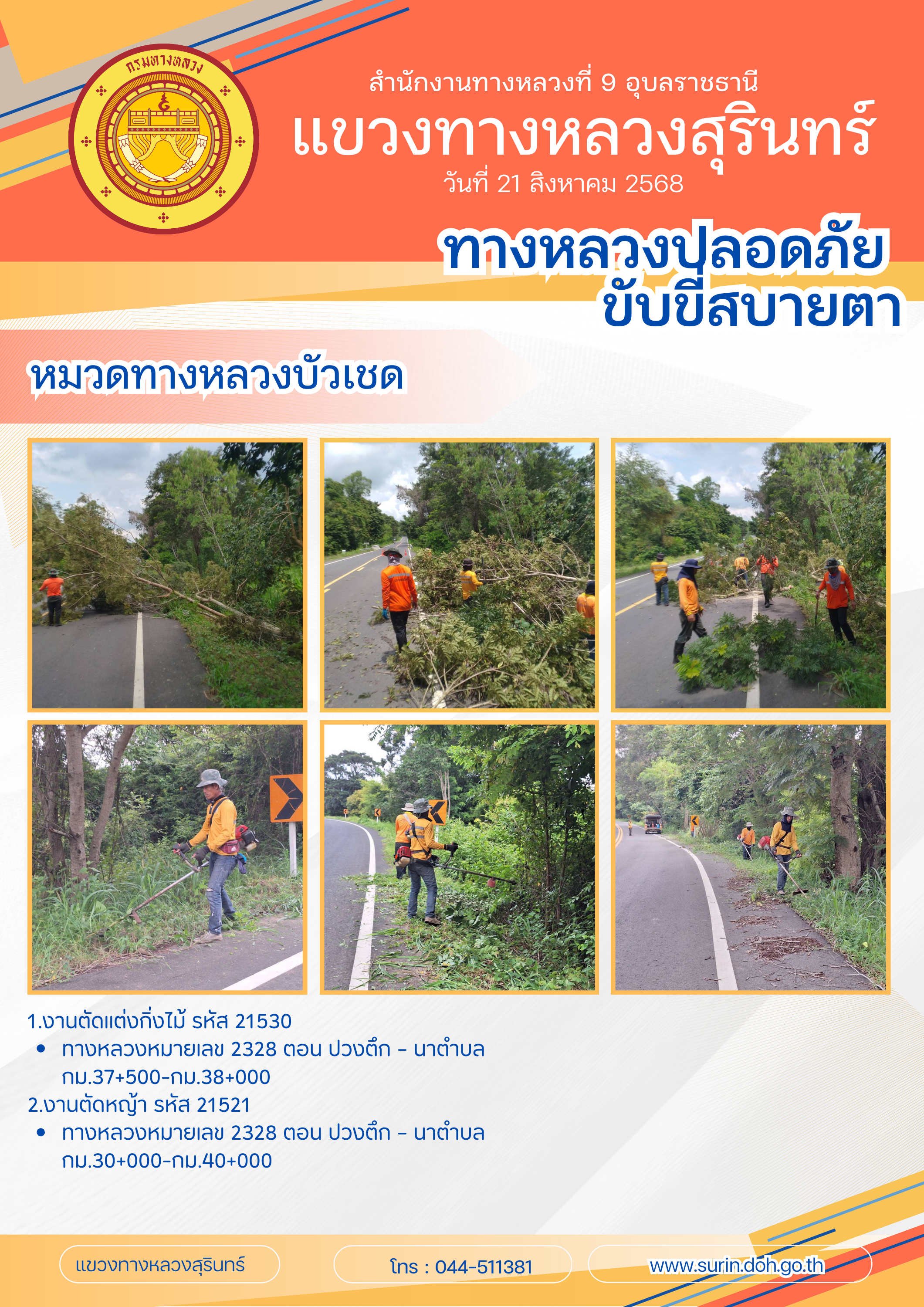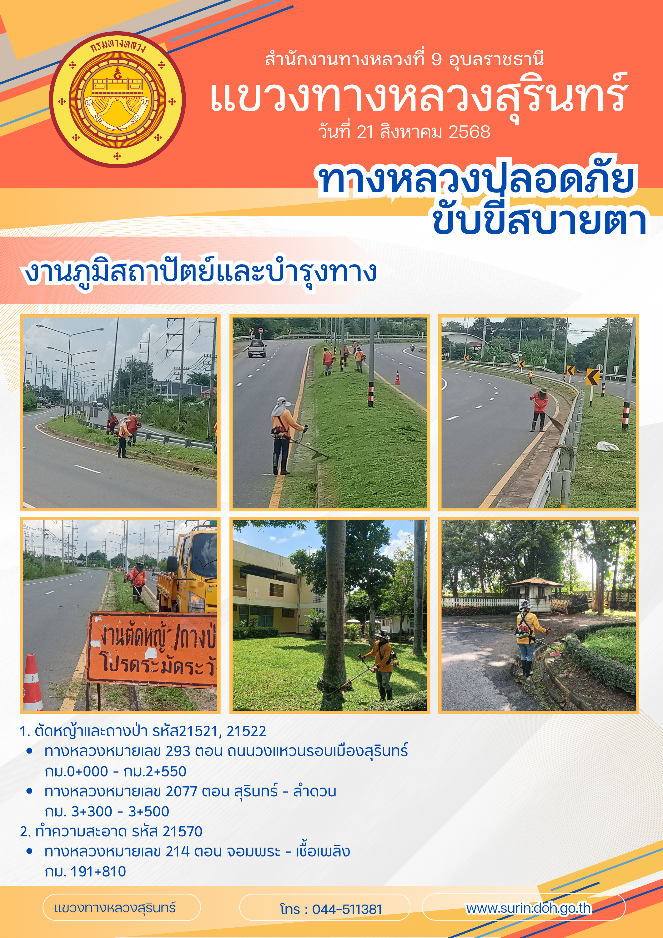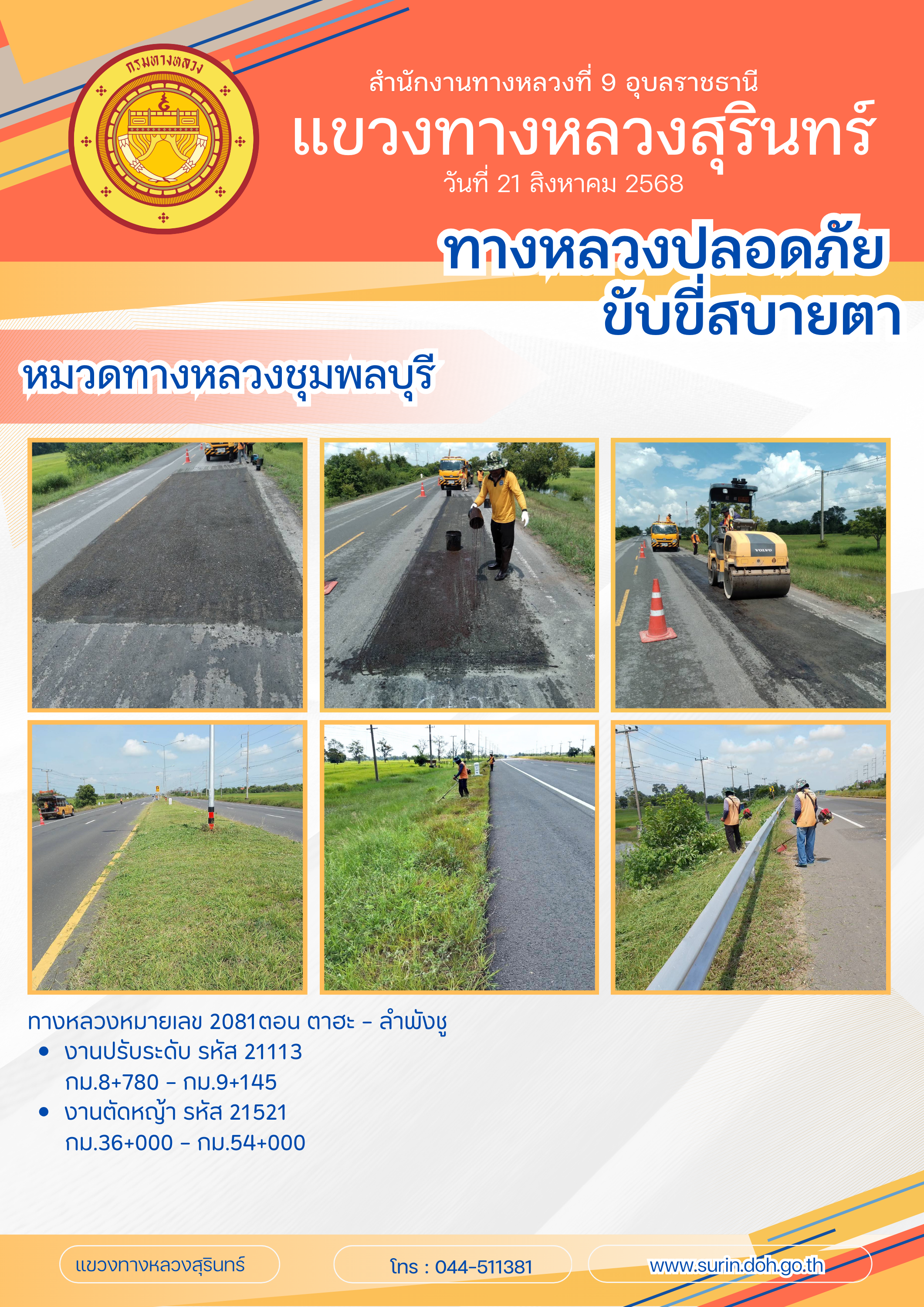 ทางหลวงปลอดภัย ขับขี่สบายตา 21 สิงหาคม 2568