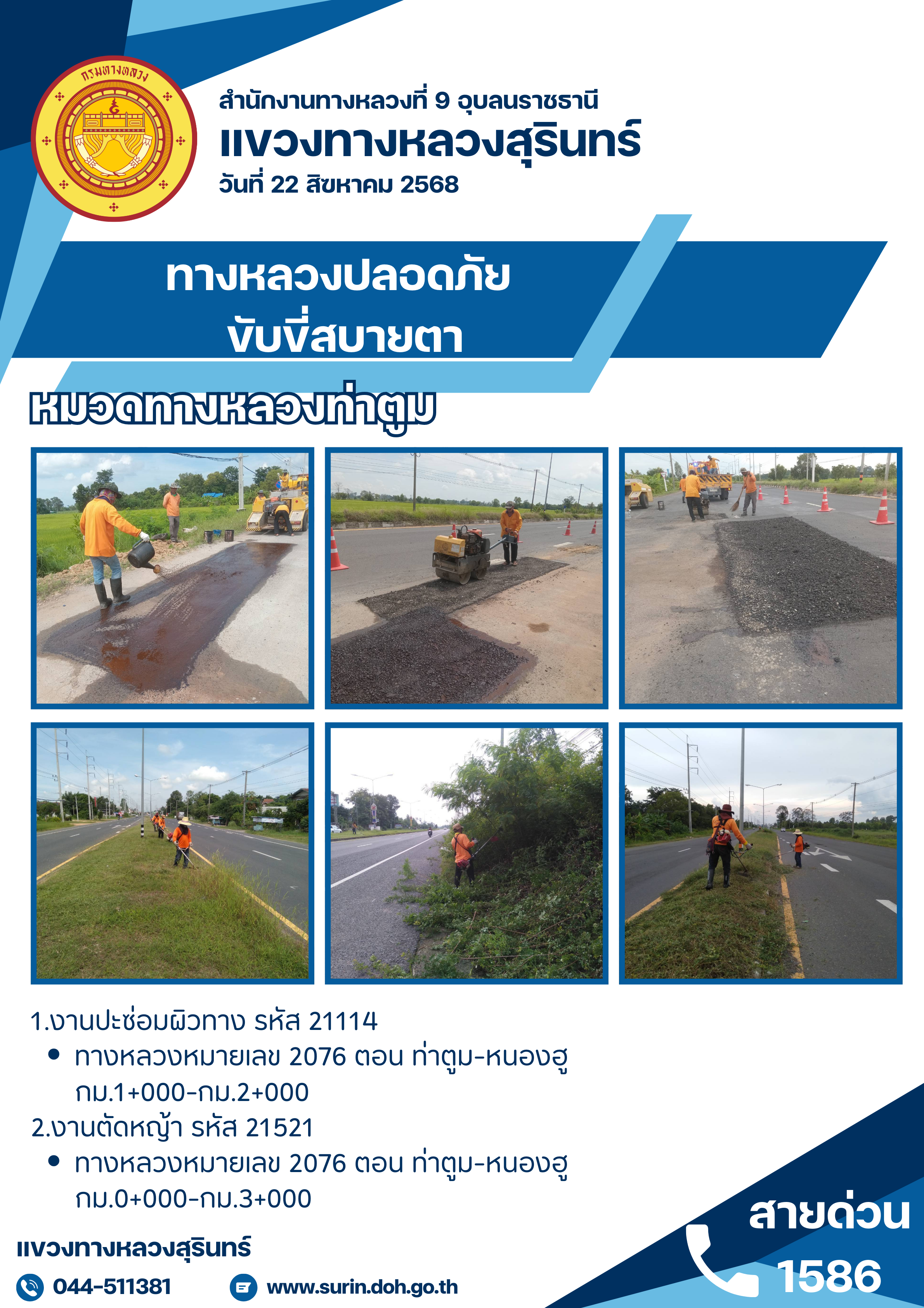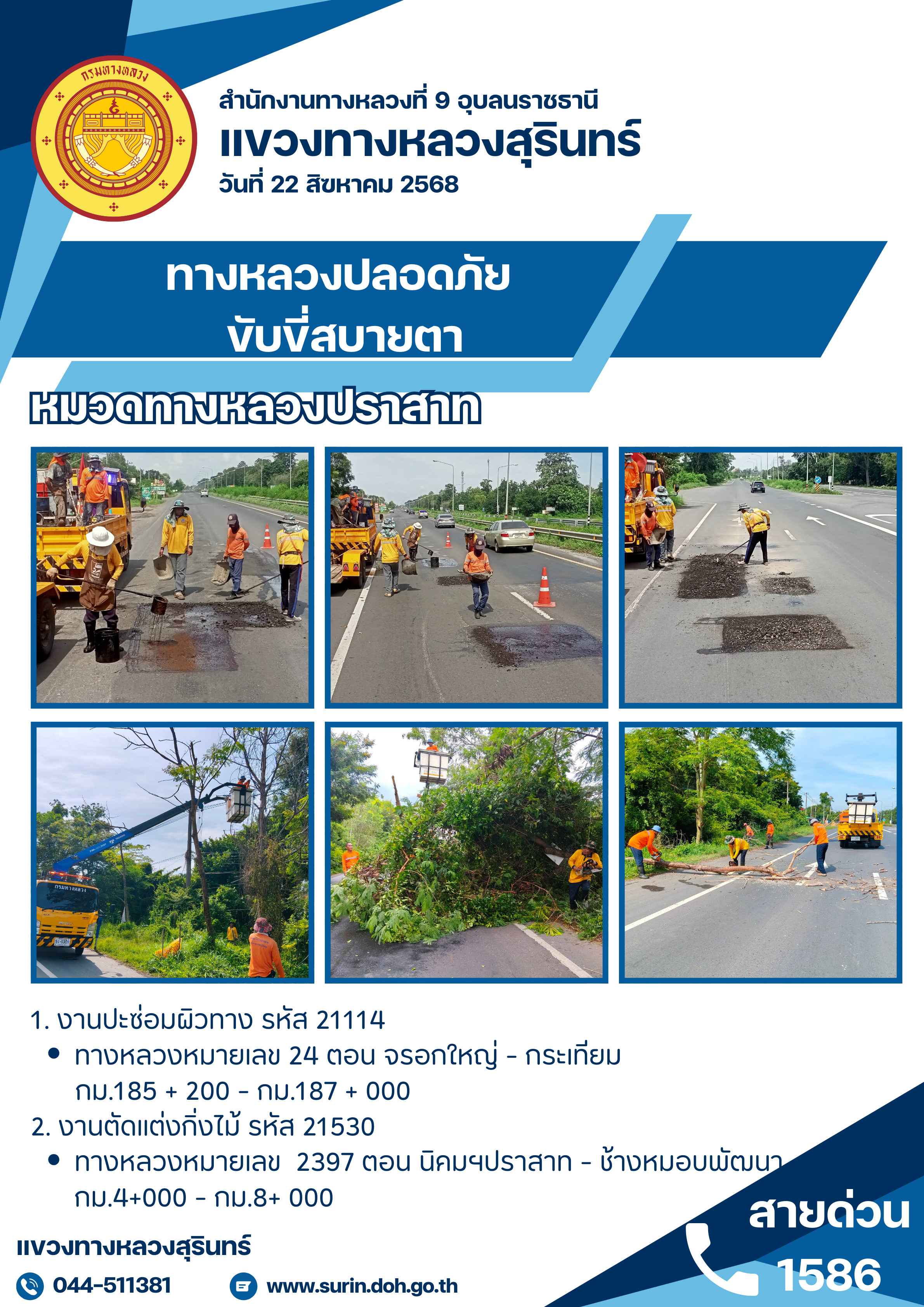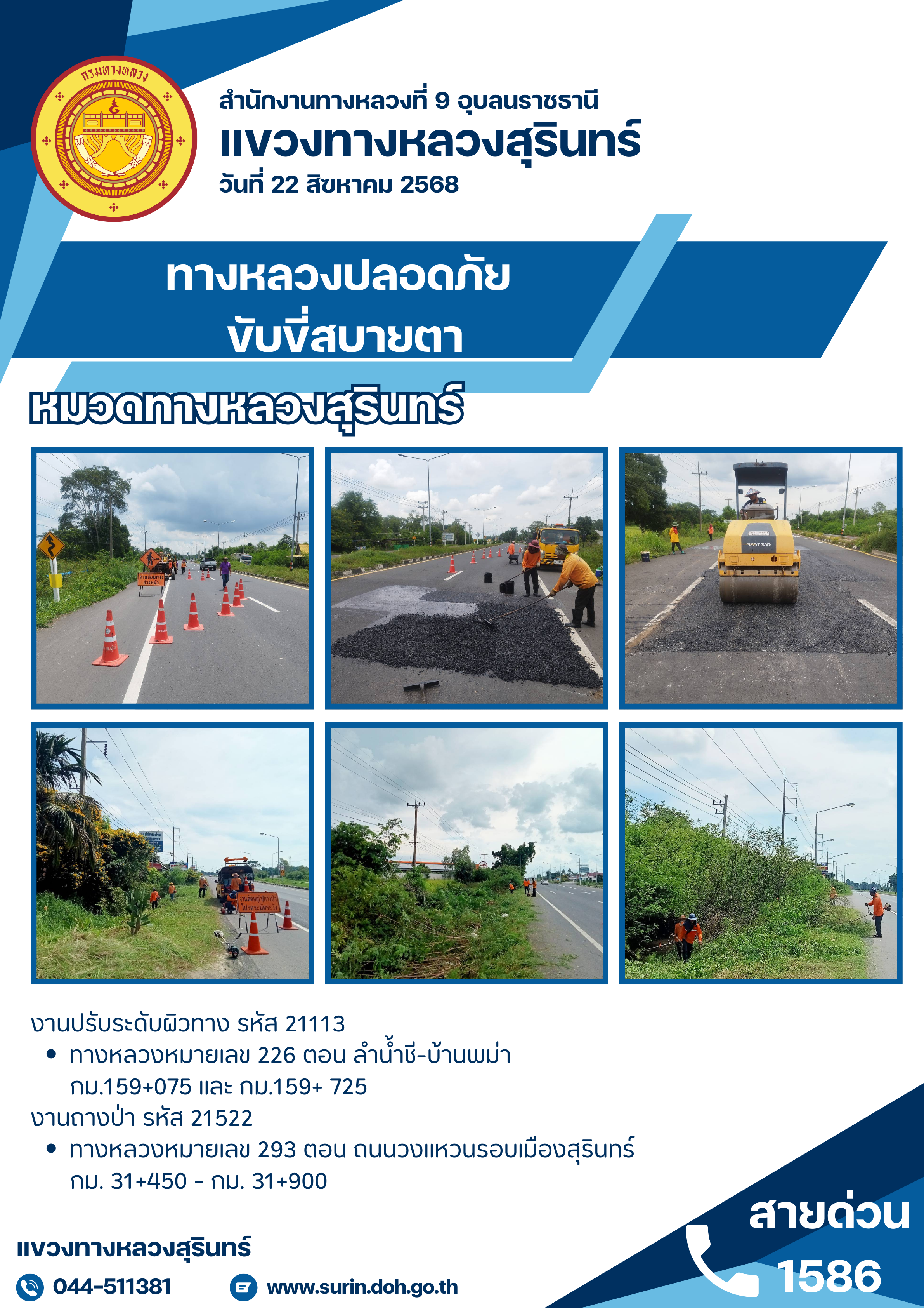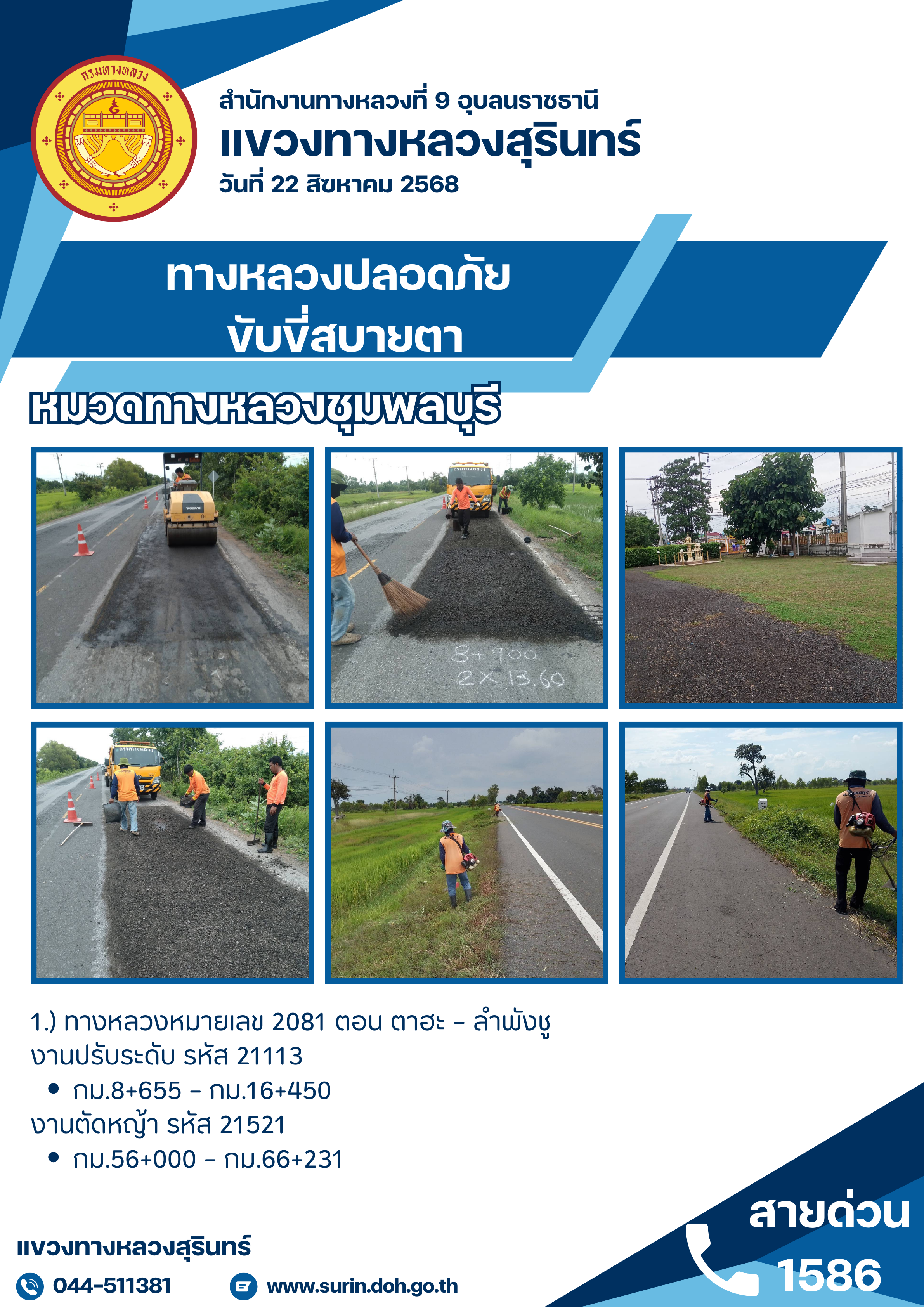 ข้อมูลข่าว : ทางหลวงปลอดภัย ขับขี่สบายตา 22 สิงหาคม 2568
