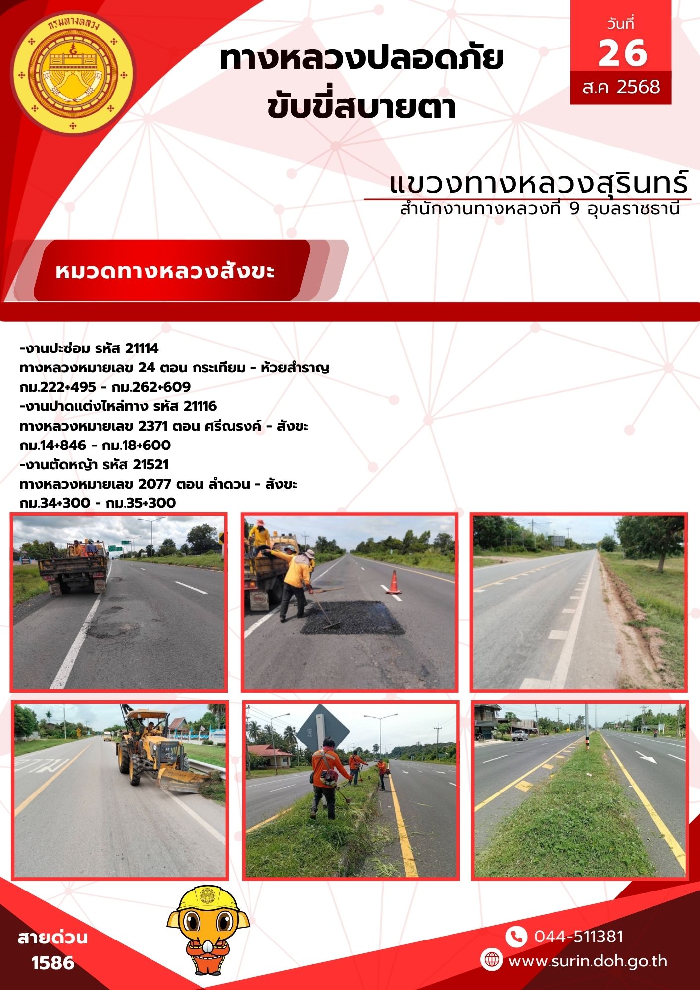 ทางหลวงปลอดภัย ขับขี่สบายตา 26 สิงหาคม 2568