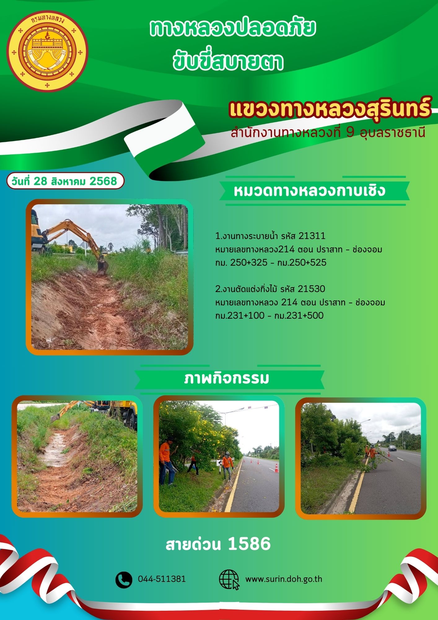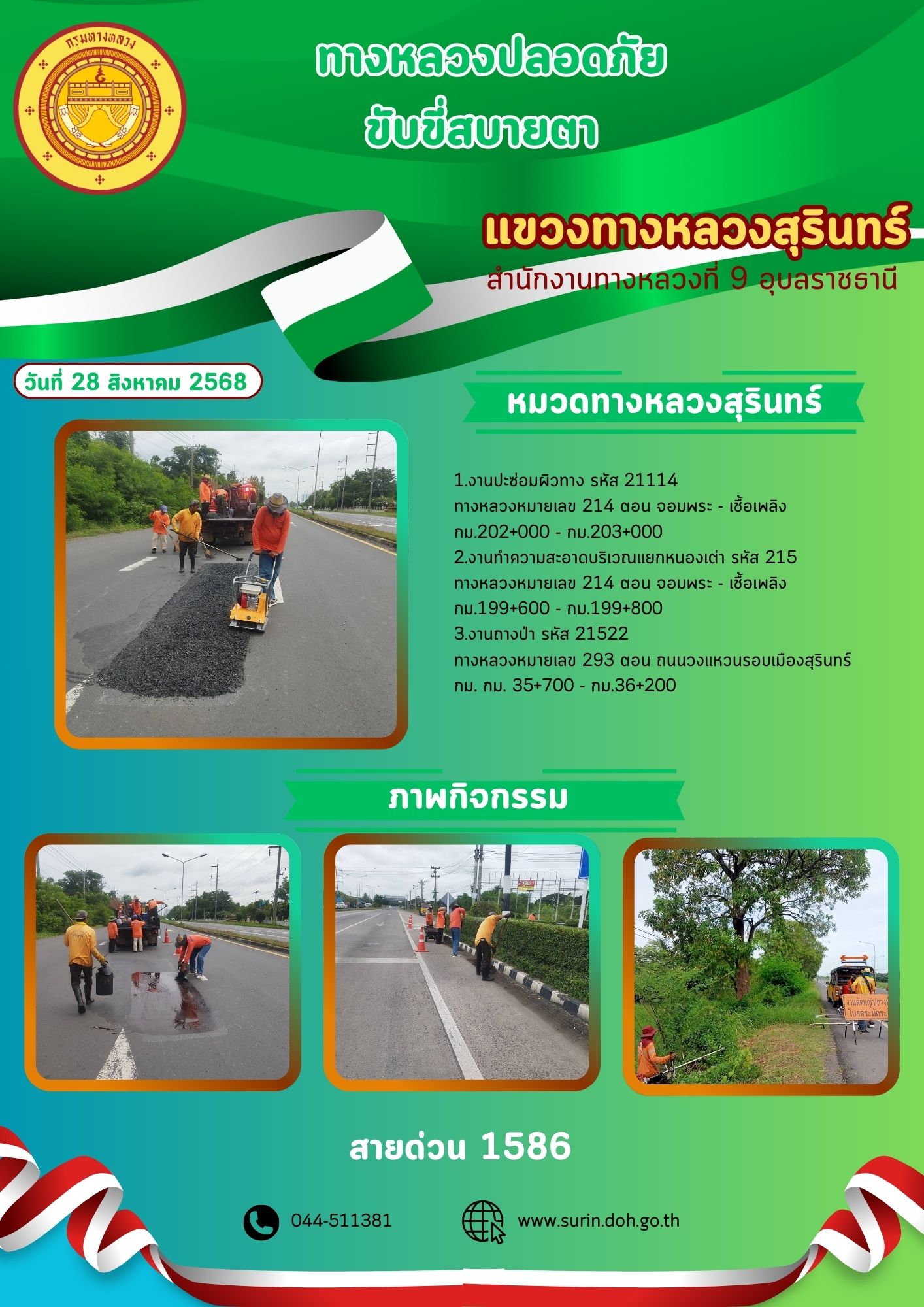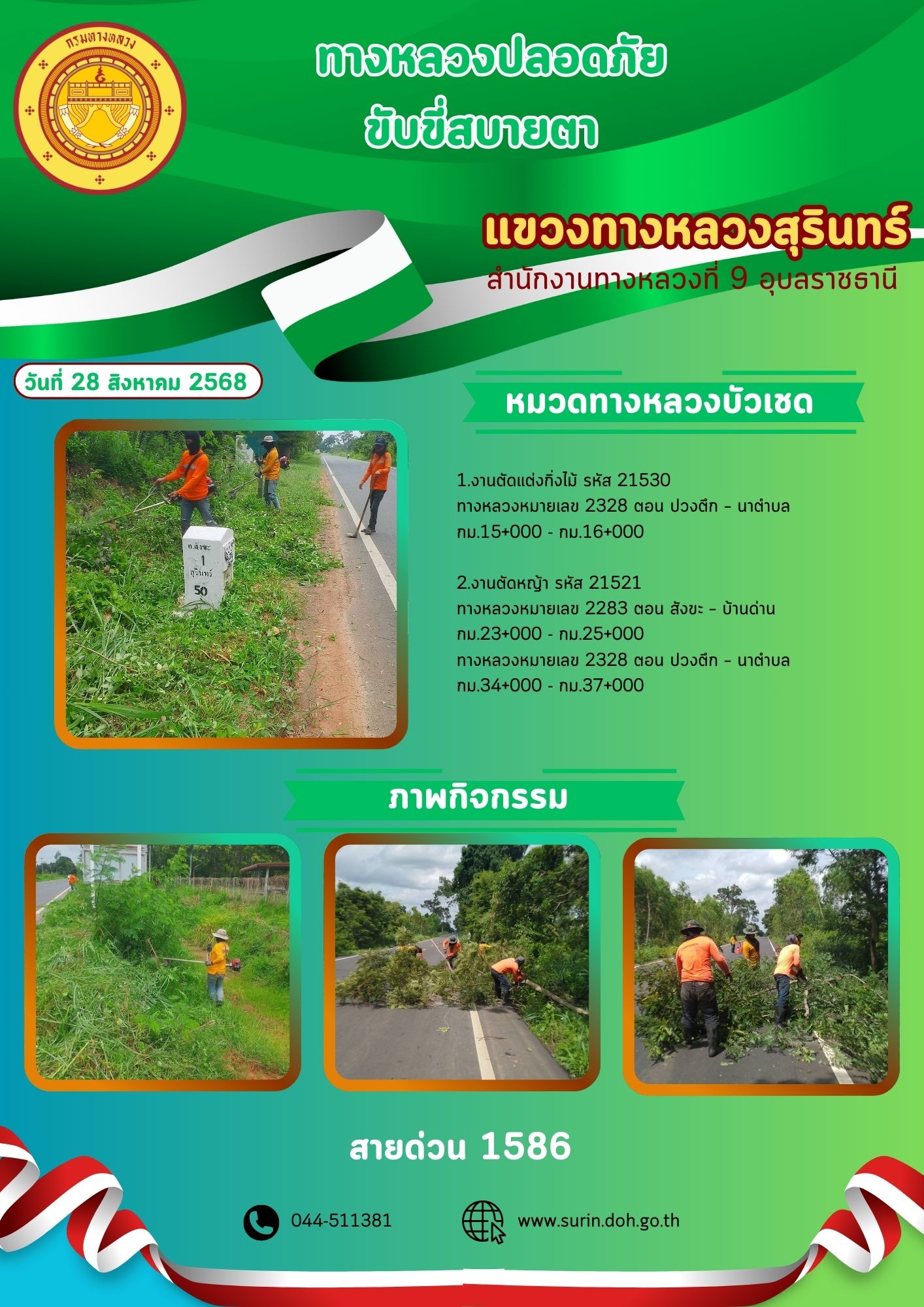 ข้อมูลข่าว : ทางหลวงปลอดภัย ขับขี่สบายตา 28 สิงหาคม 2568