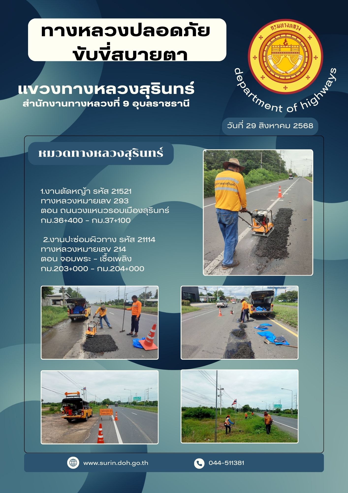 ข้อมูลข่าว : ทางหลวงปลอดภัย ขับขี่สบายตา 29 สิงหาคม 2568