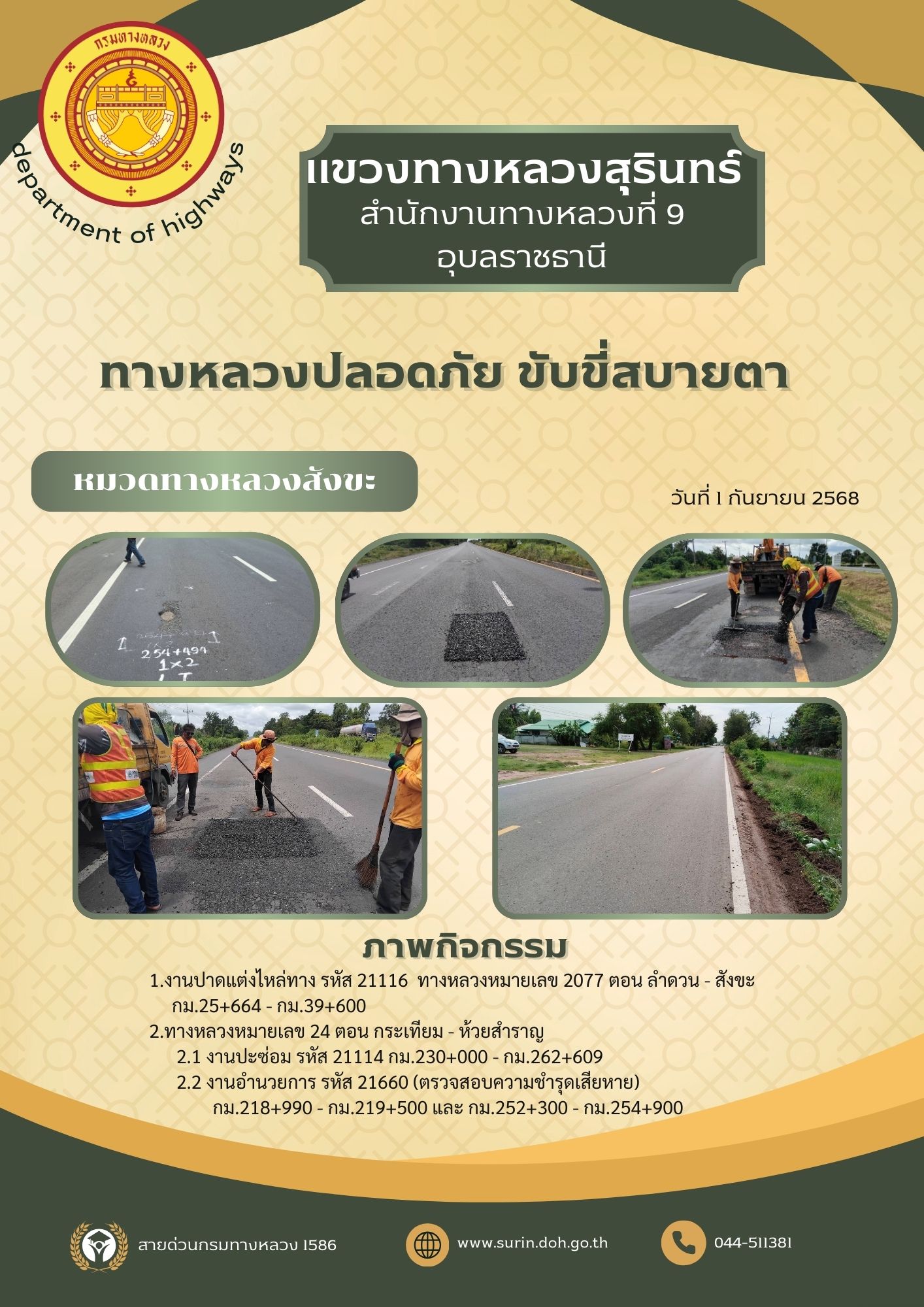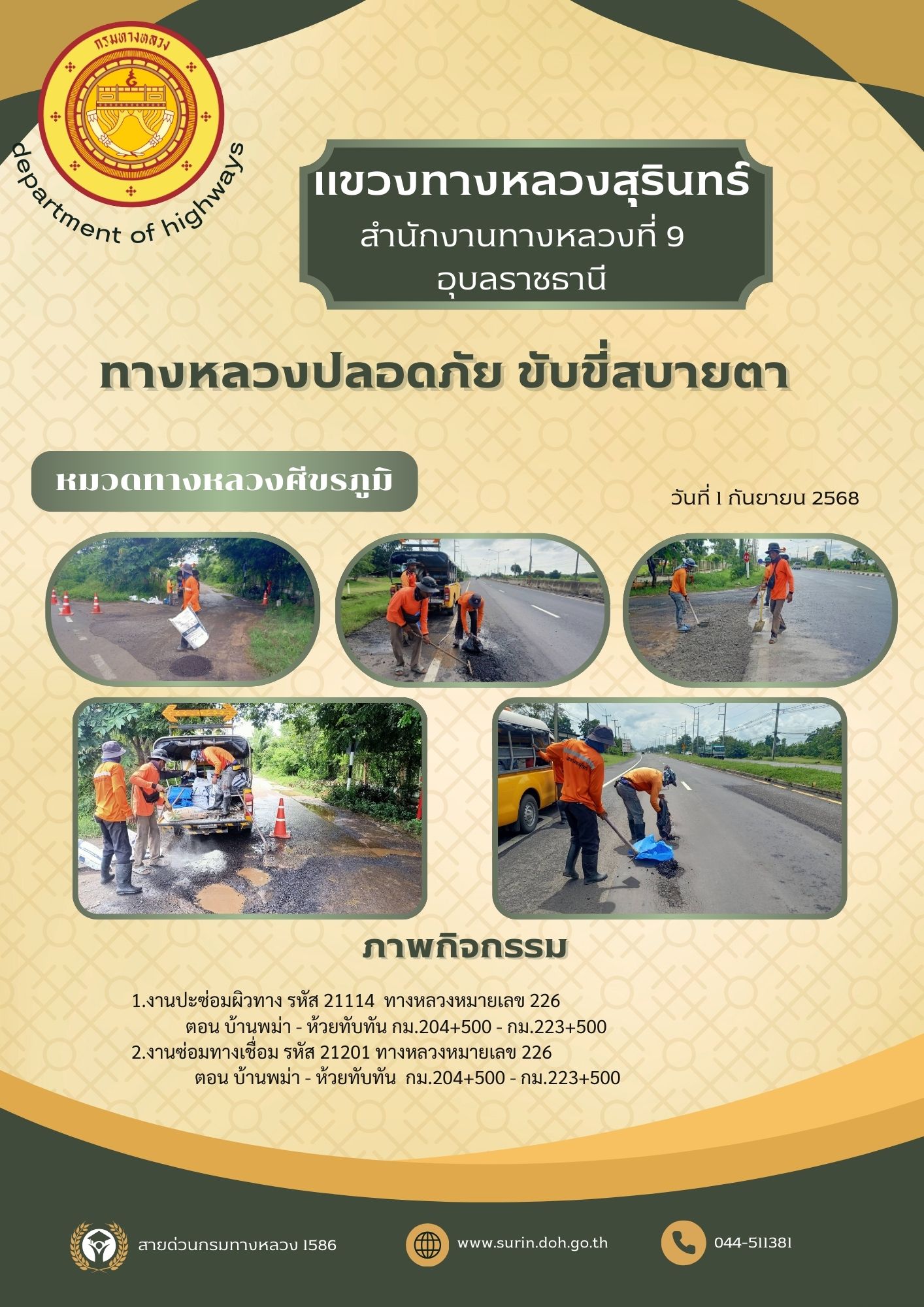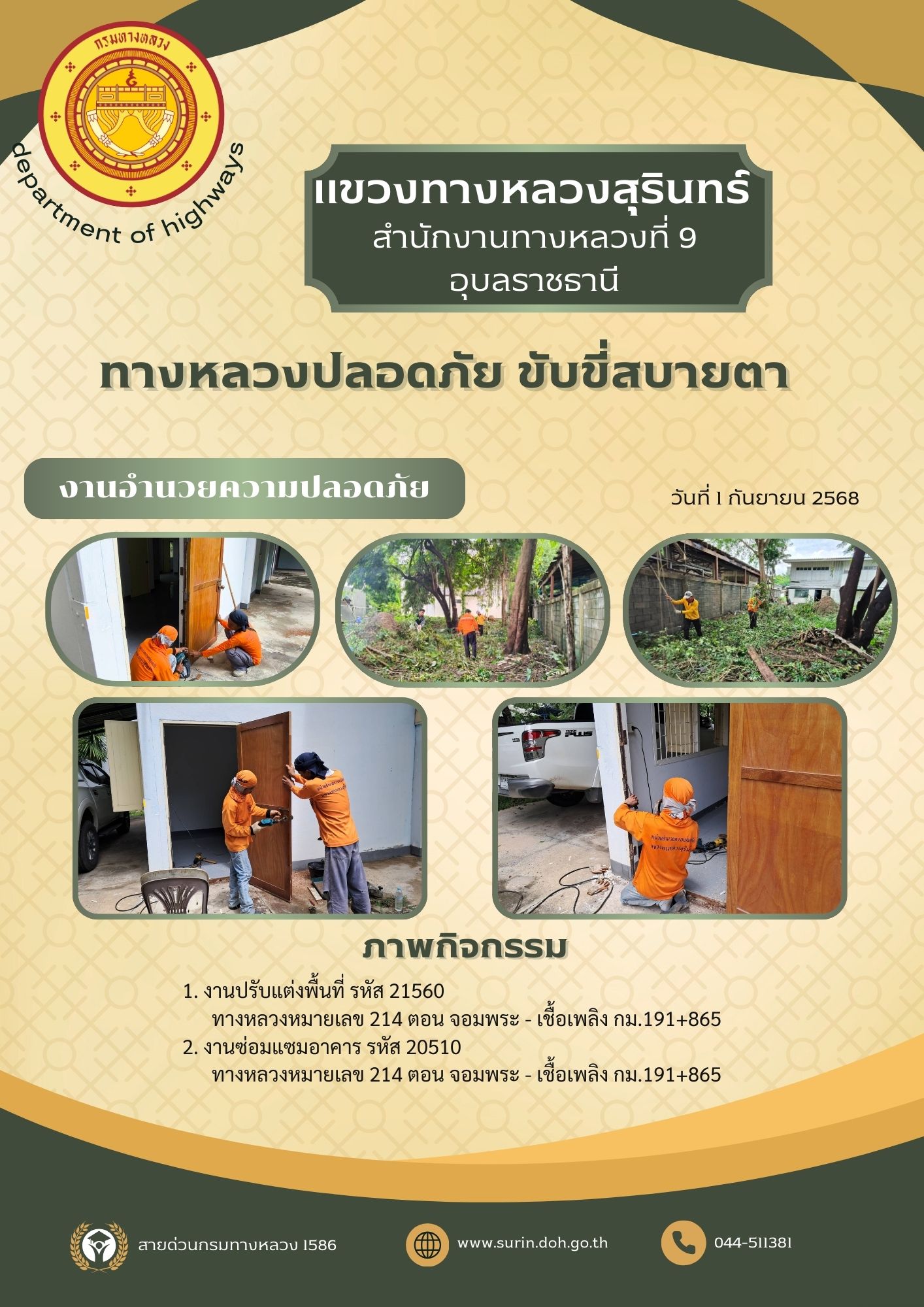 ทางหลวงปลอดภัย ขับขี่สบายตา 1 กันยายน 2568