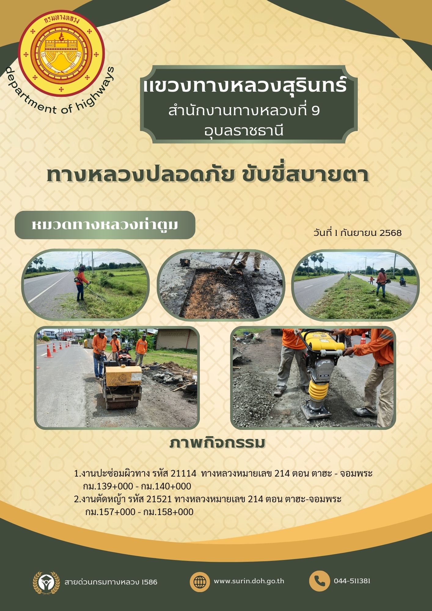 ข้อมูลข่าว : ทางหลวงปลอดภัย ขับขี่สบายตา 1 กันยายน 2568
