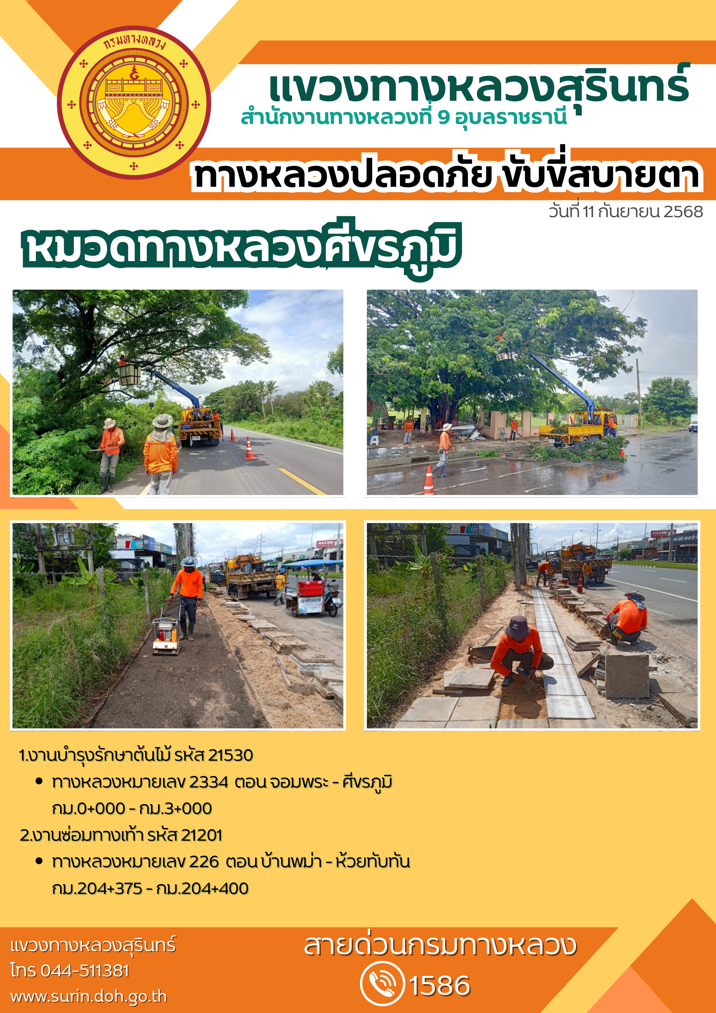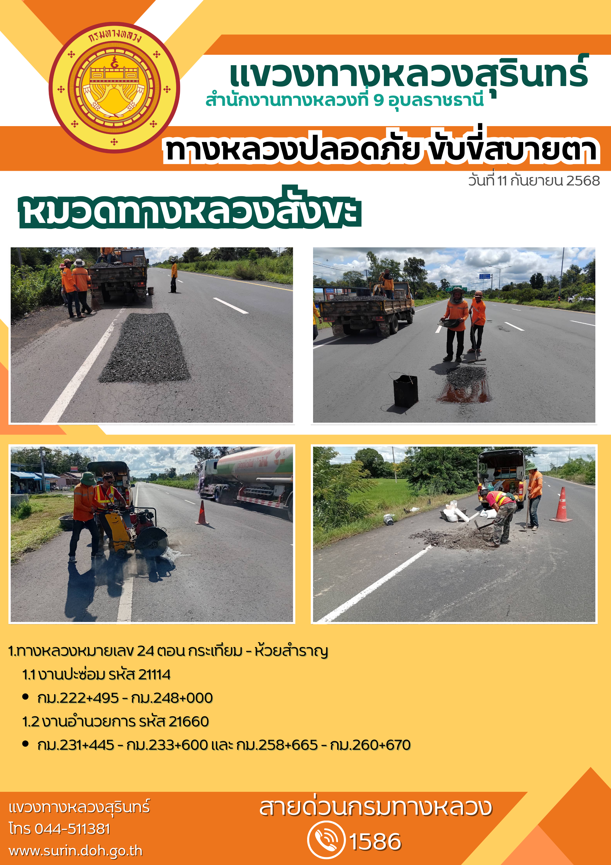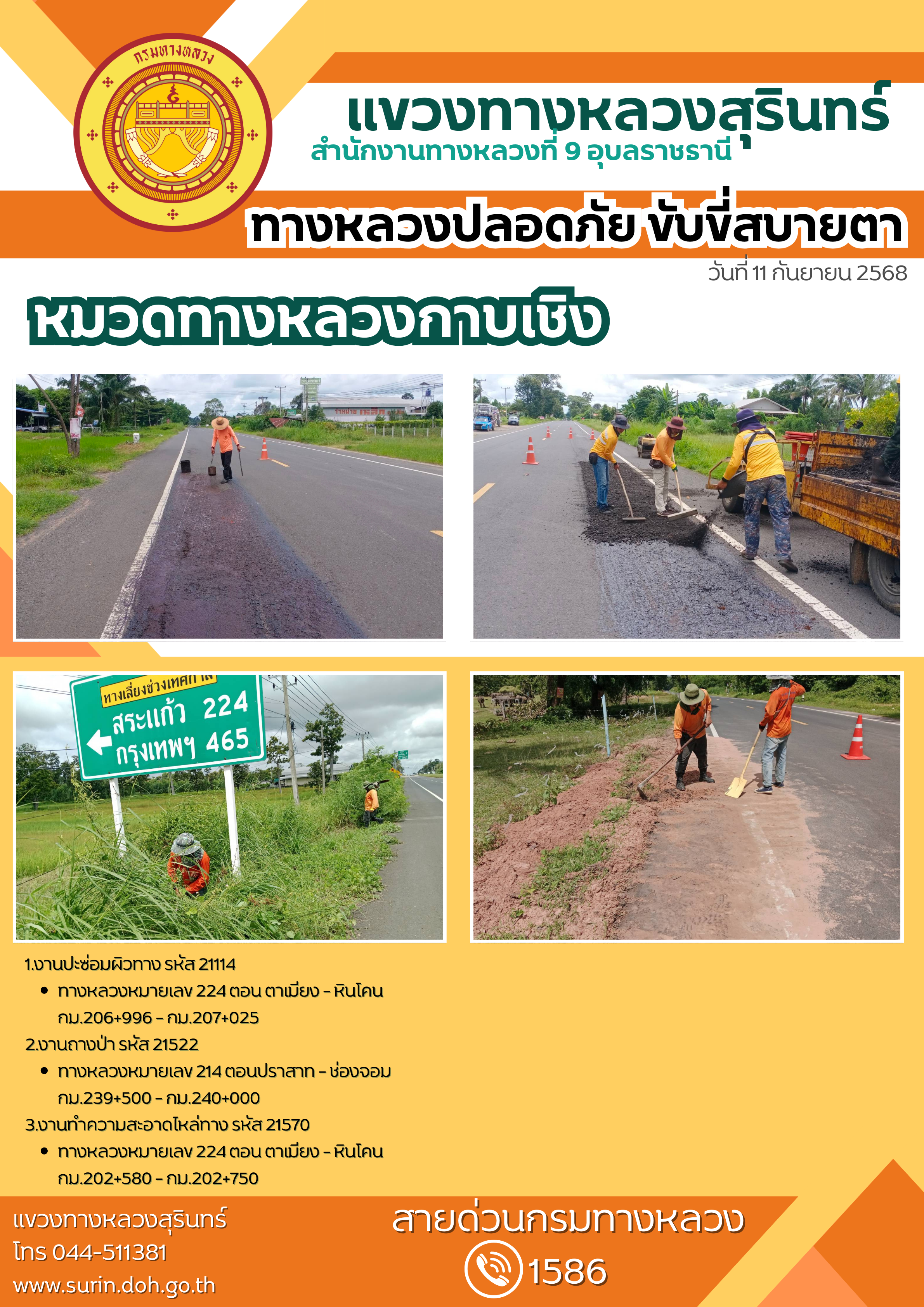 ข้อมูลข่าว : ทางหลวงปลอดภัย ขับขี่สบายตา 11 กันยายน 2568
