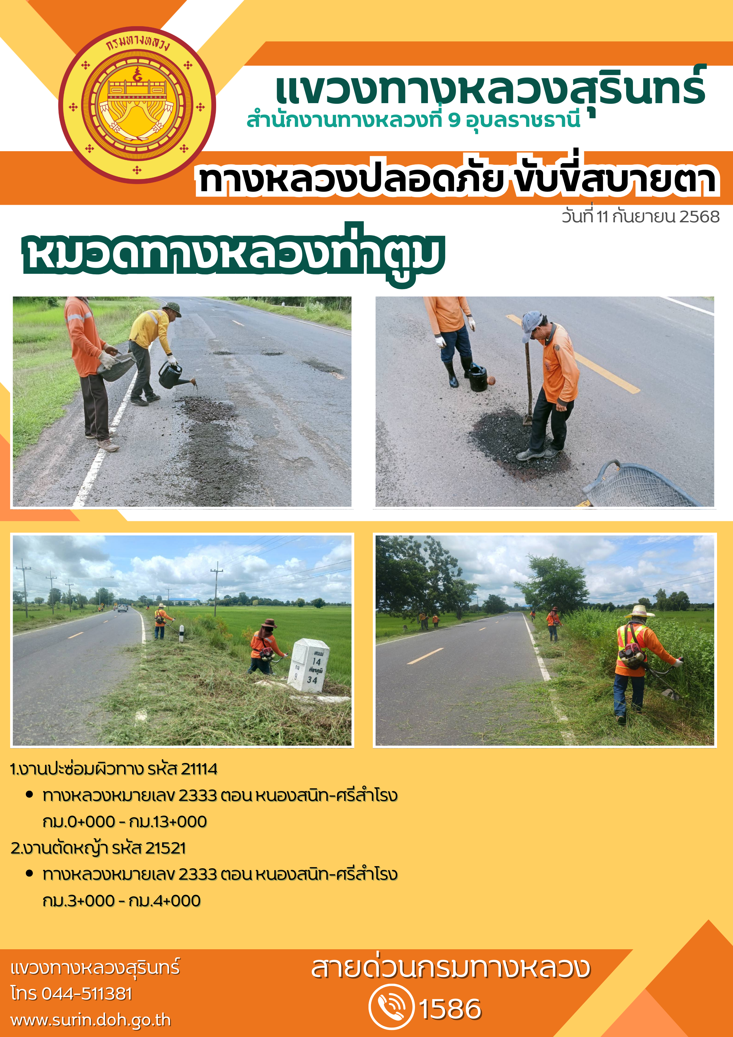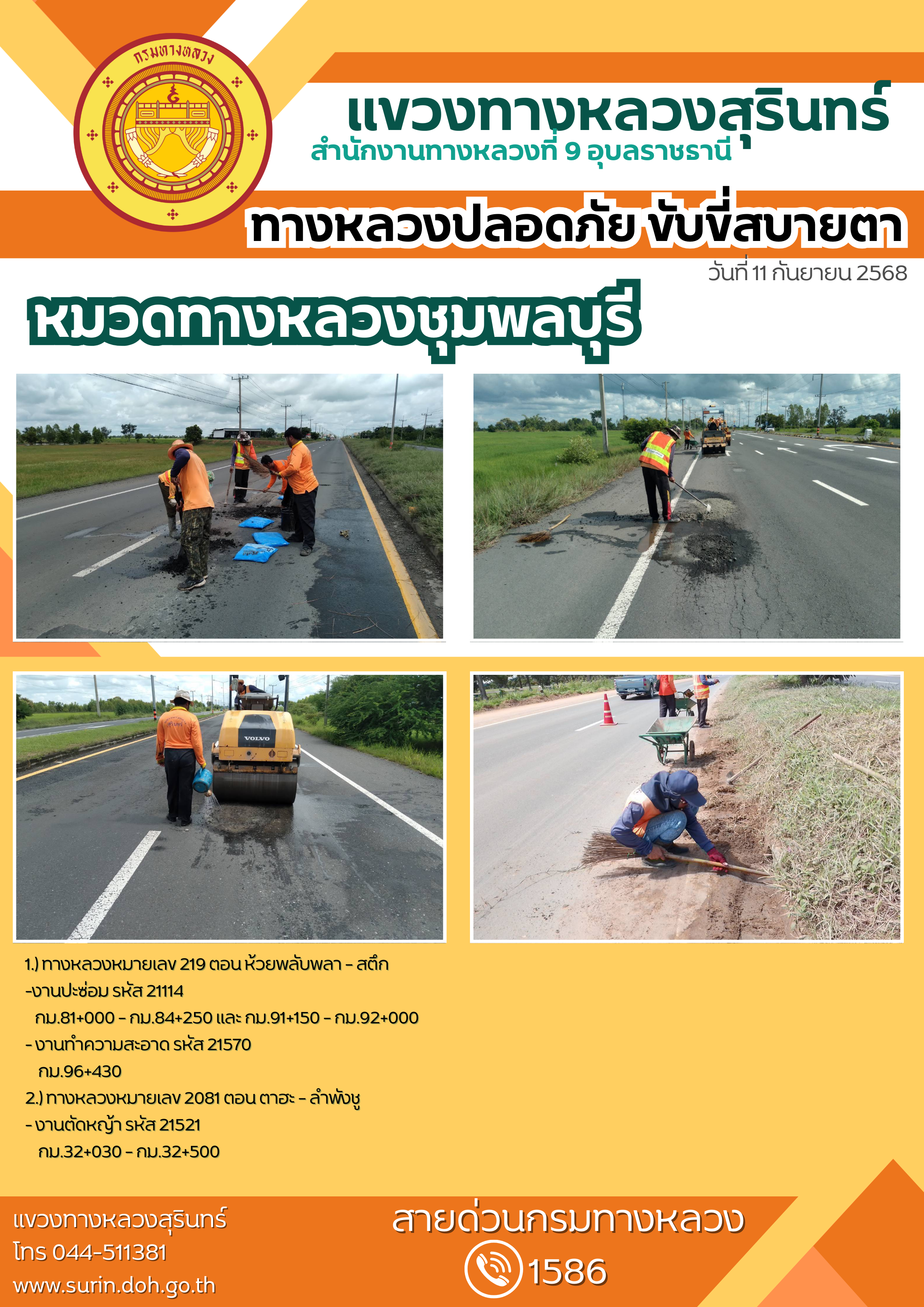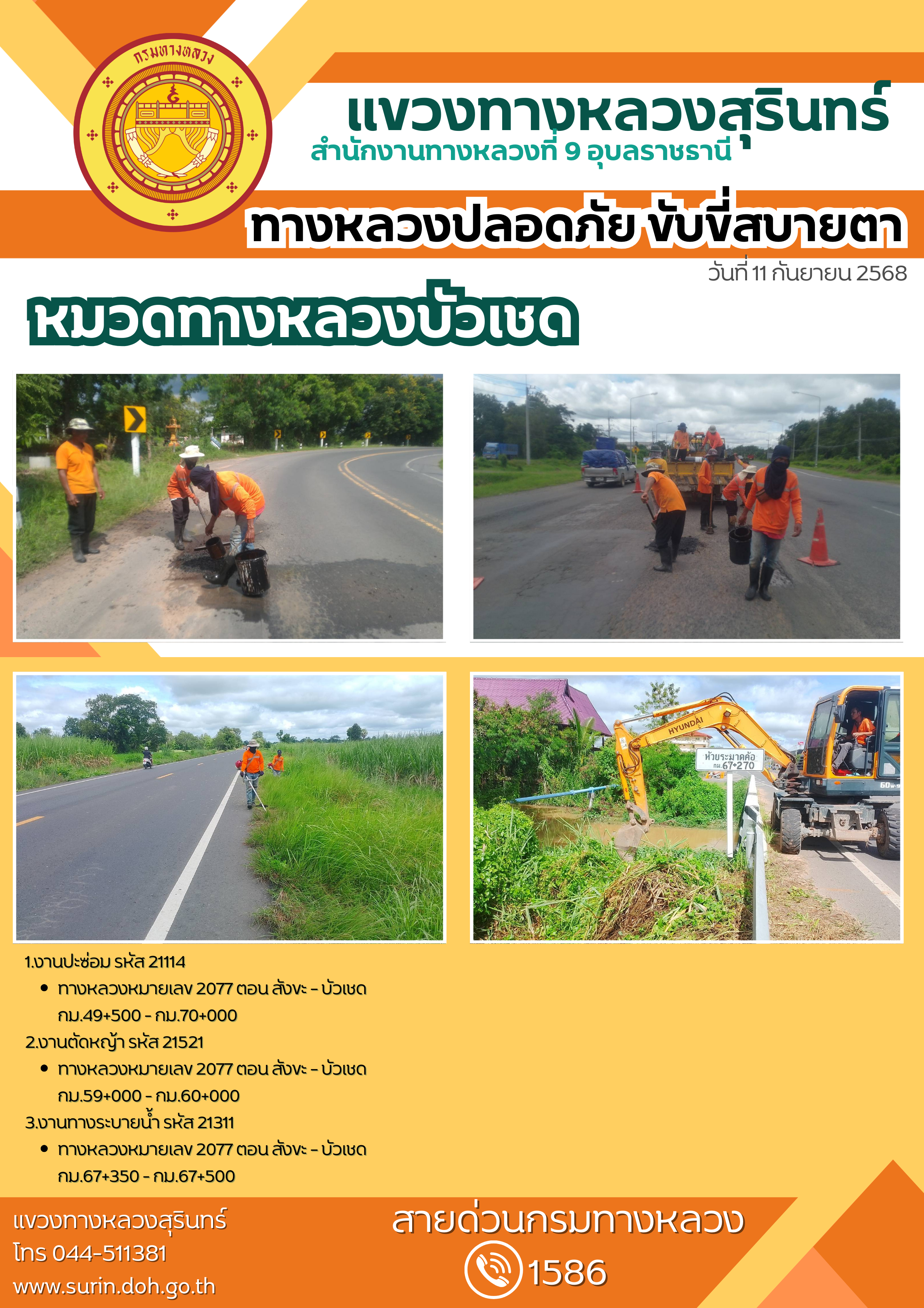 ข้อมูลข่าว : ทางหลวงปลอดภัย ขับขี่สบายตา 11 กันยายน 2568