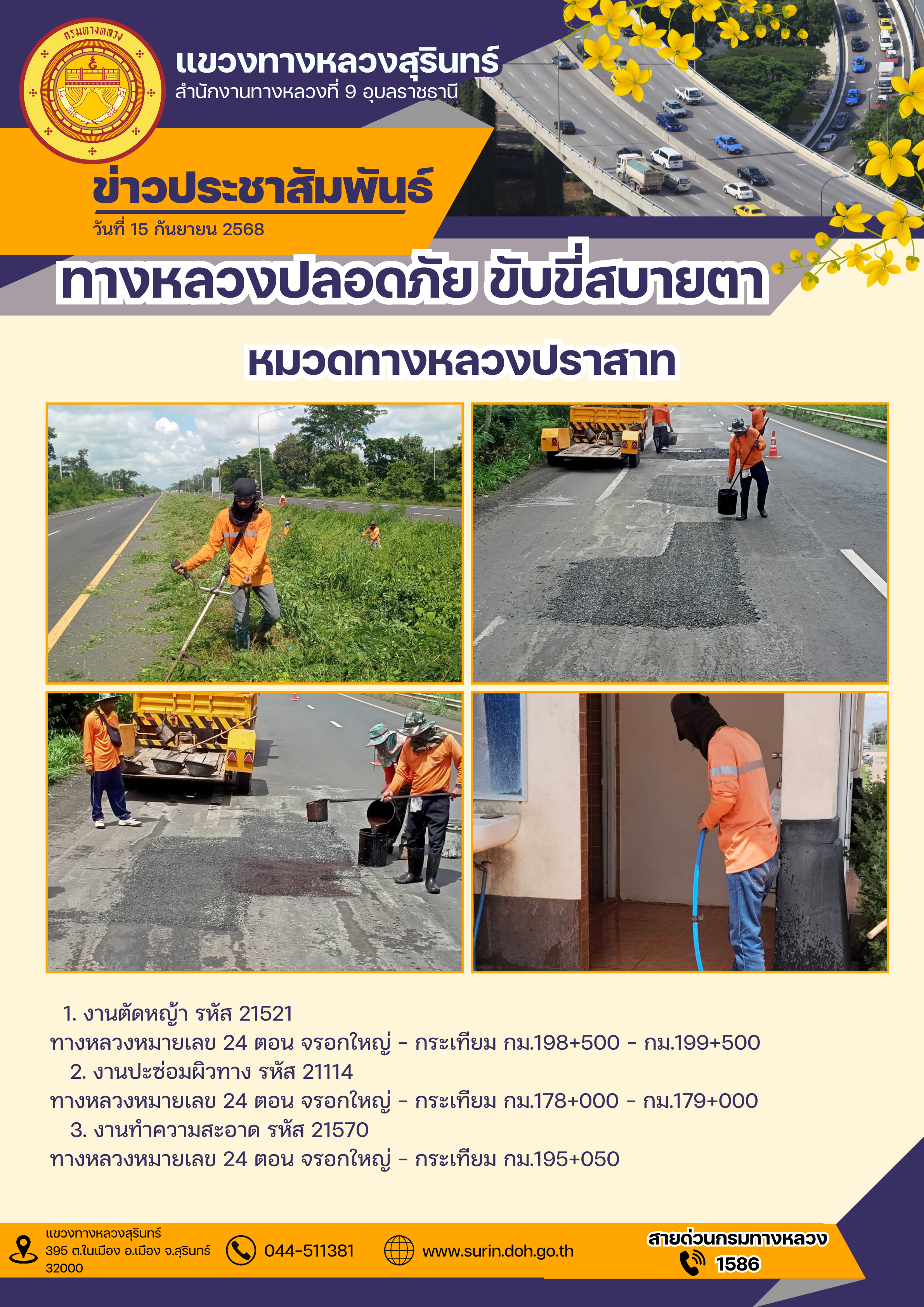 ทางหลวงปลอดภัย ขับขี่สบายตา 15 กันยายน 2568