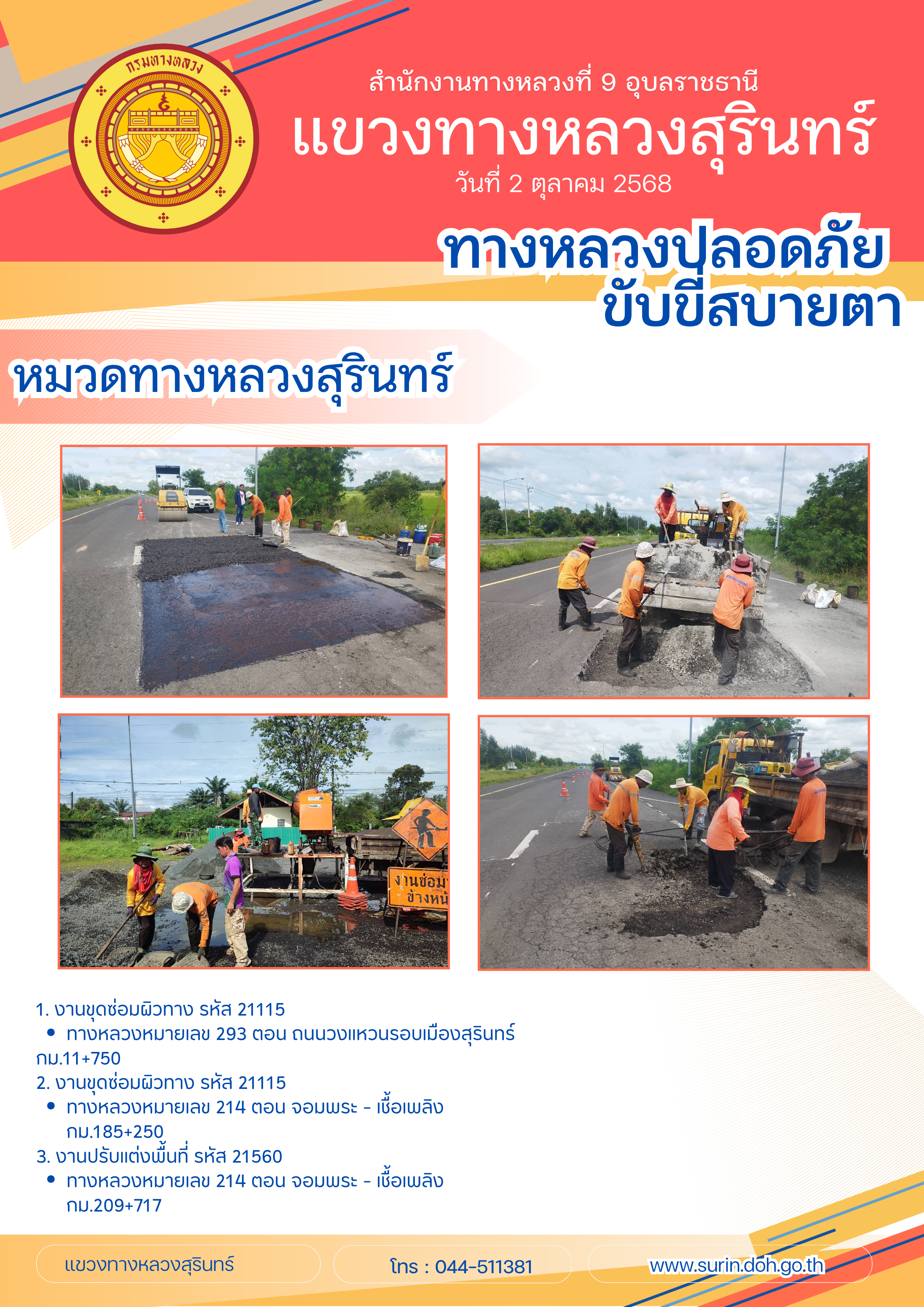 ข้อมูลข่าว : ทางหลวงปลอดภัย ขับขี่สบายตา 2 ตุลาคม 2568