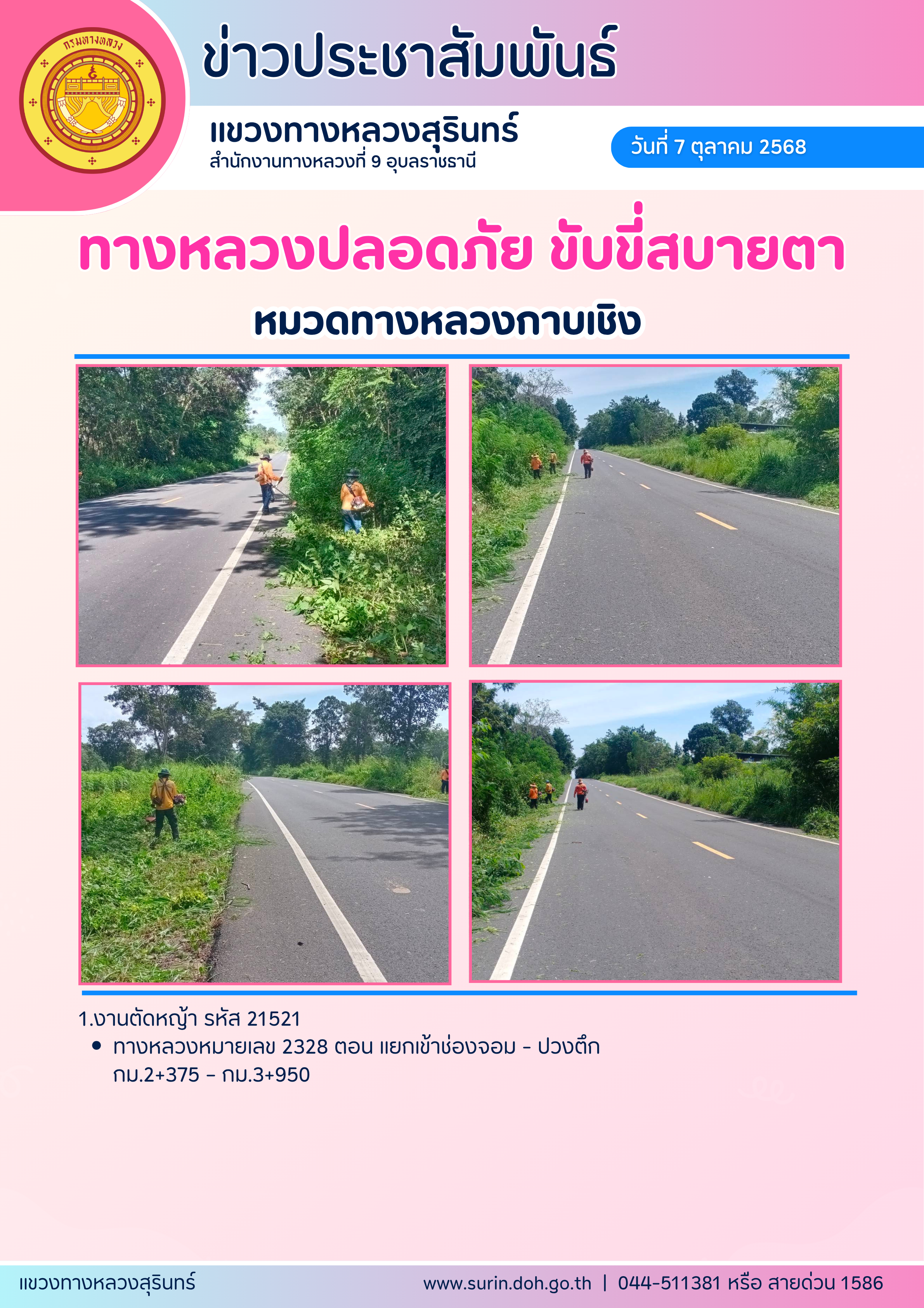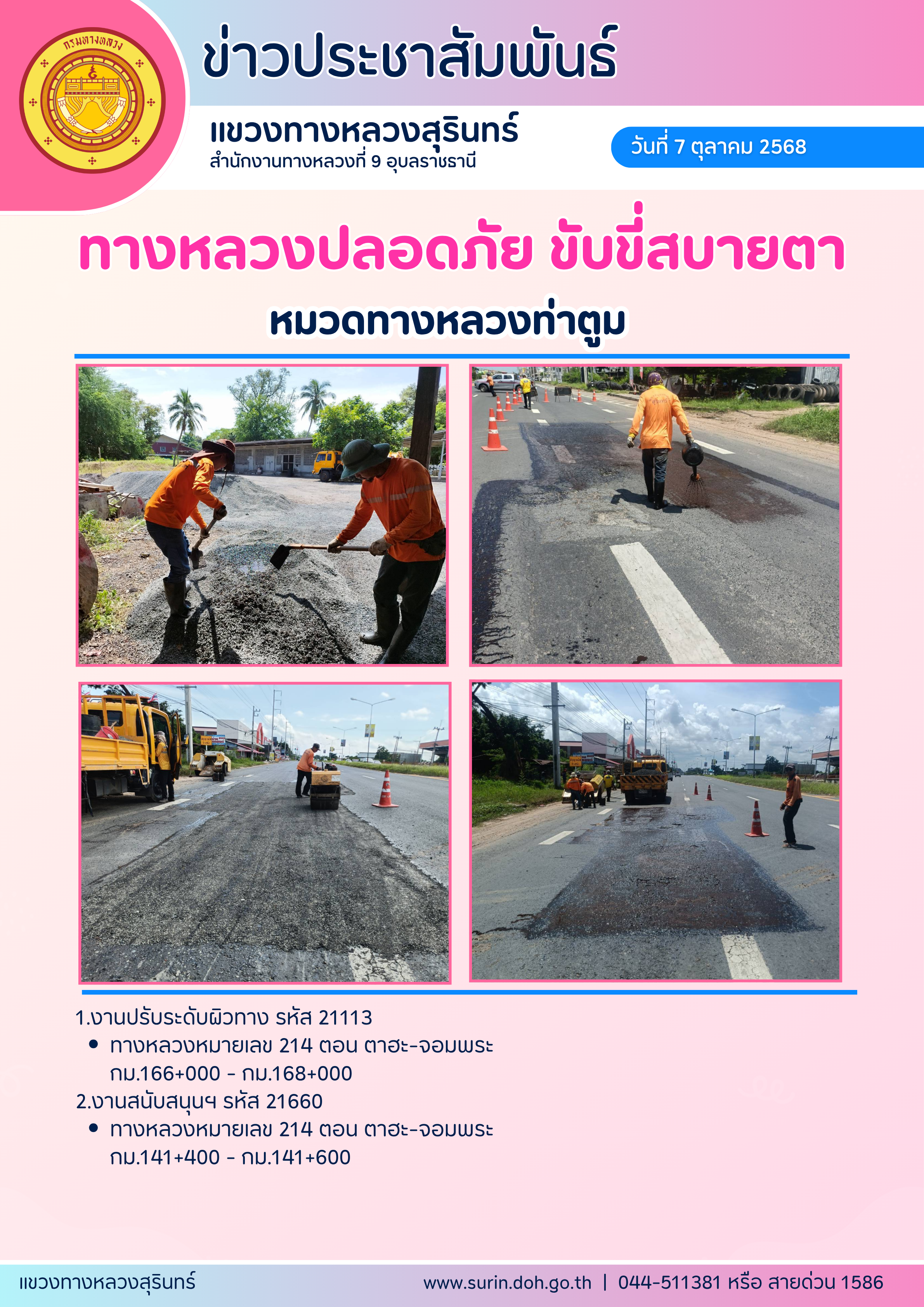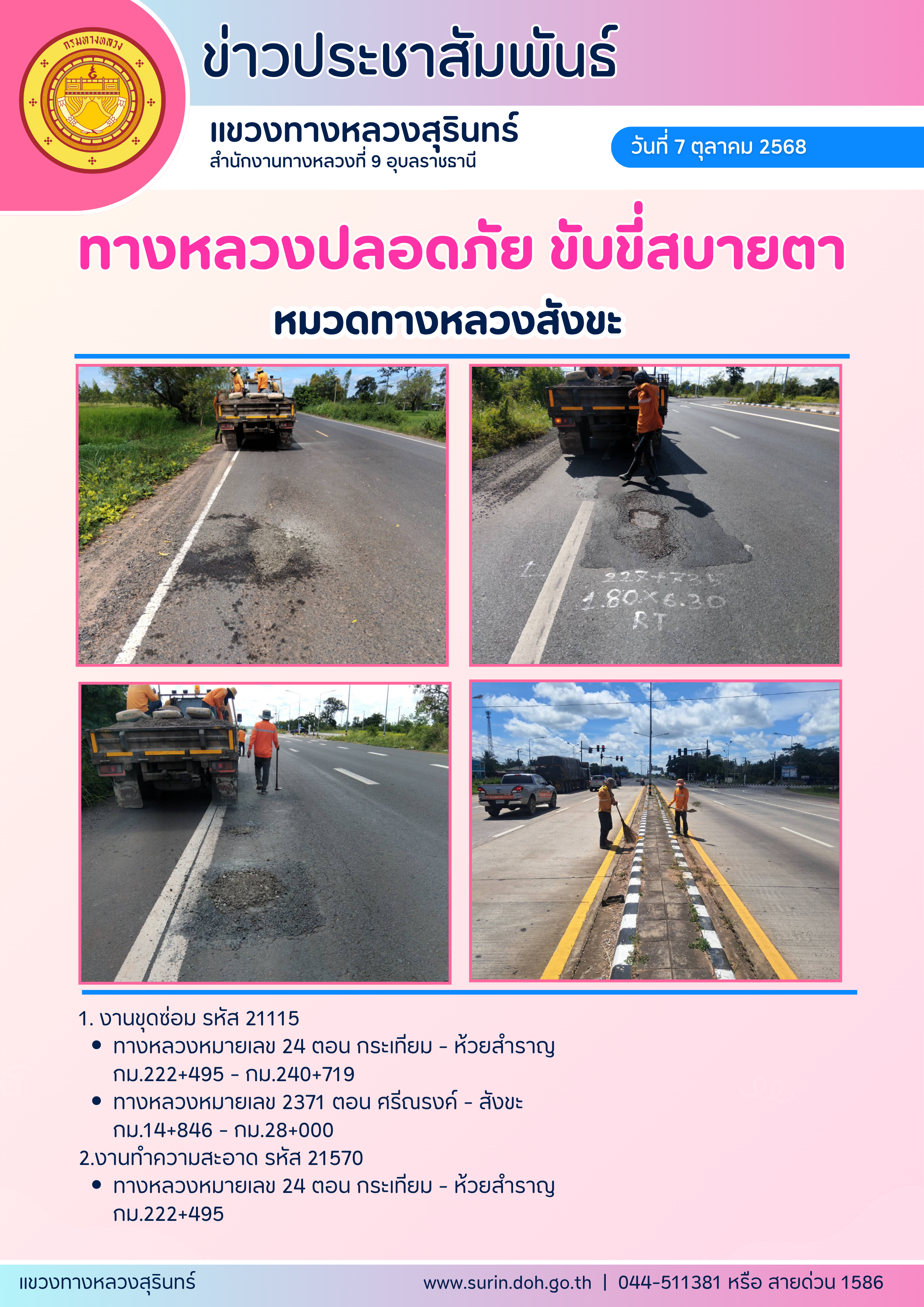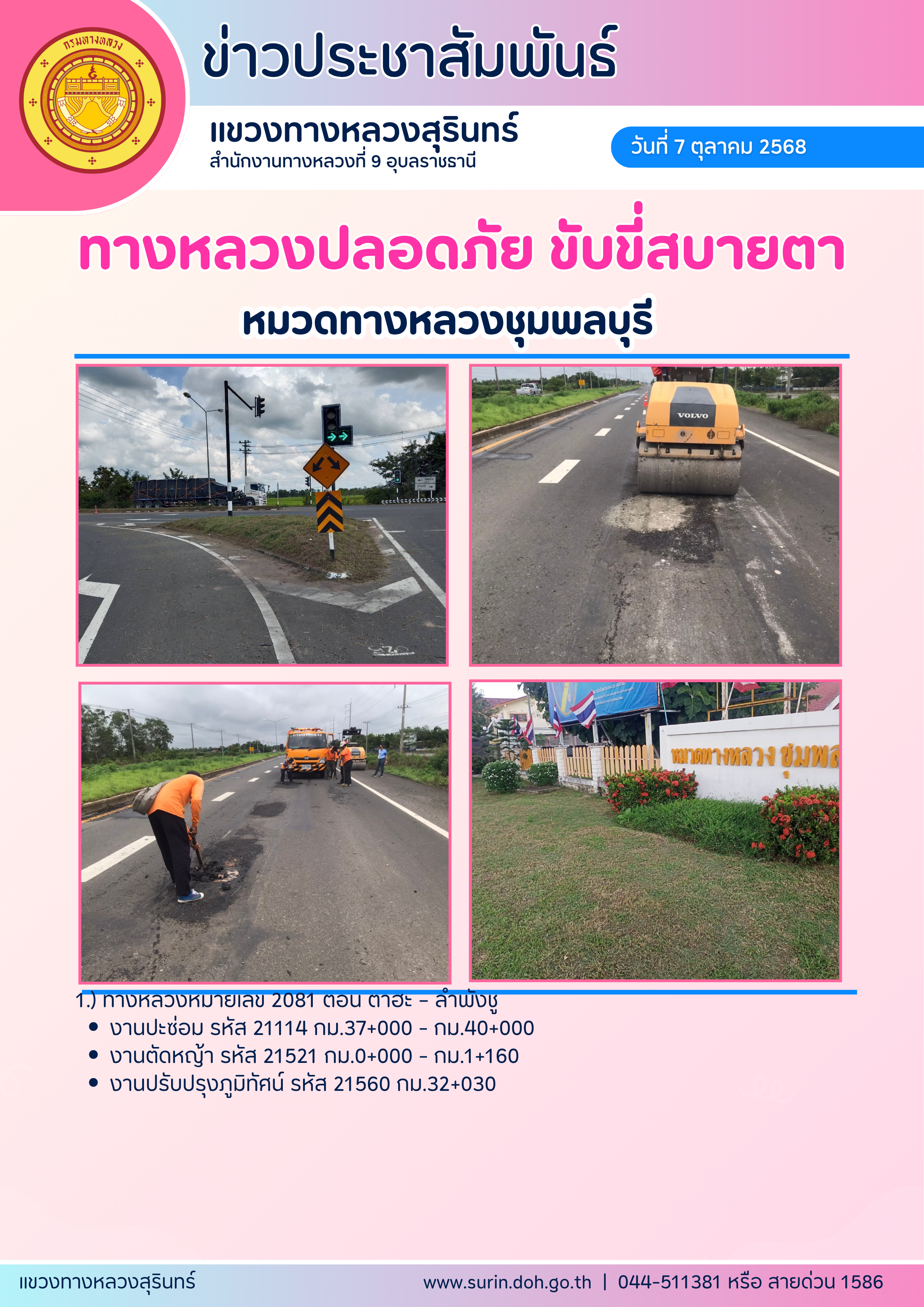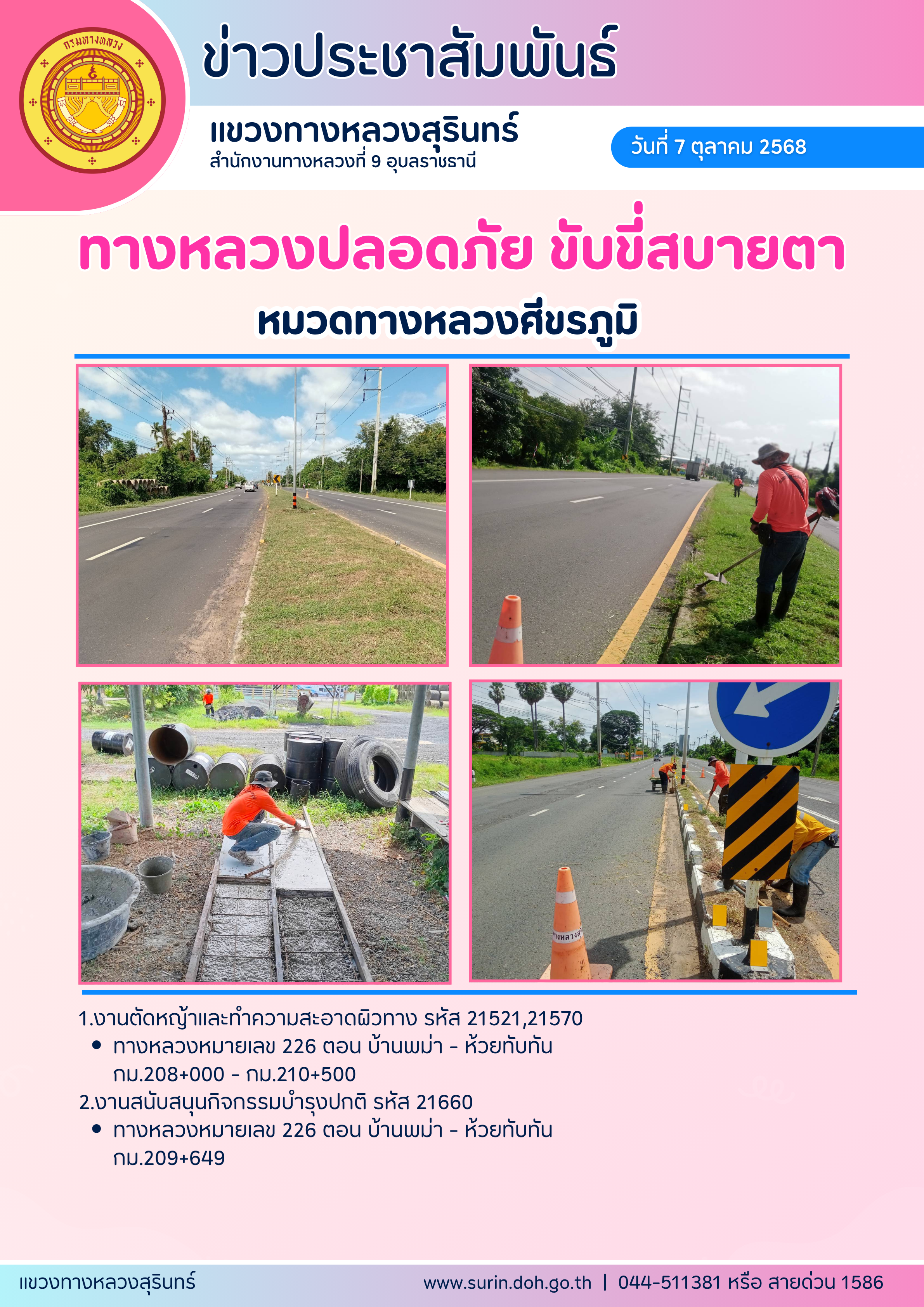 ทางหลวงปลอดภัย ขับขี่สบายตา 7 ตุลาคม 2568