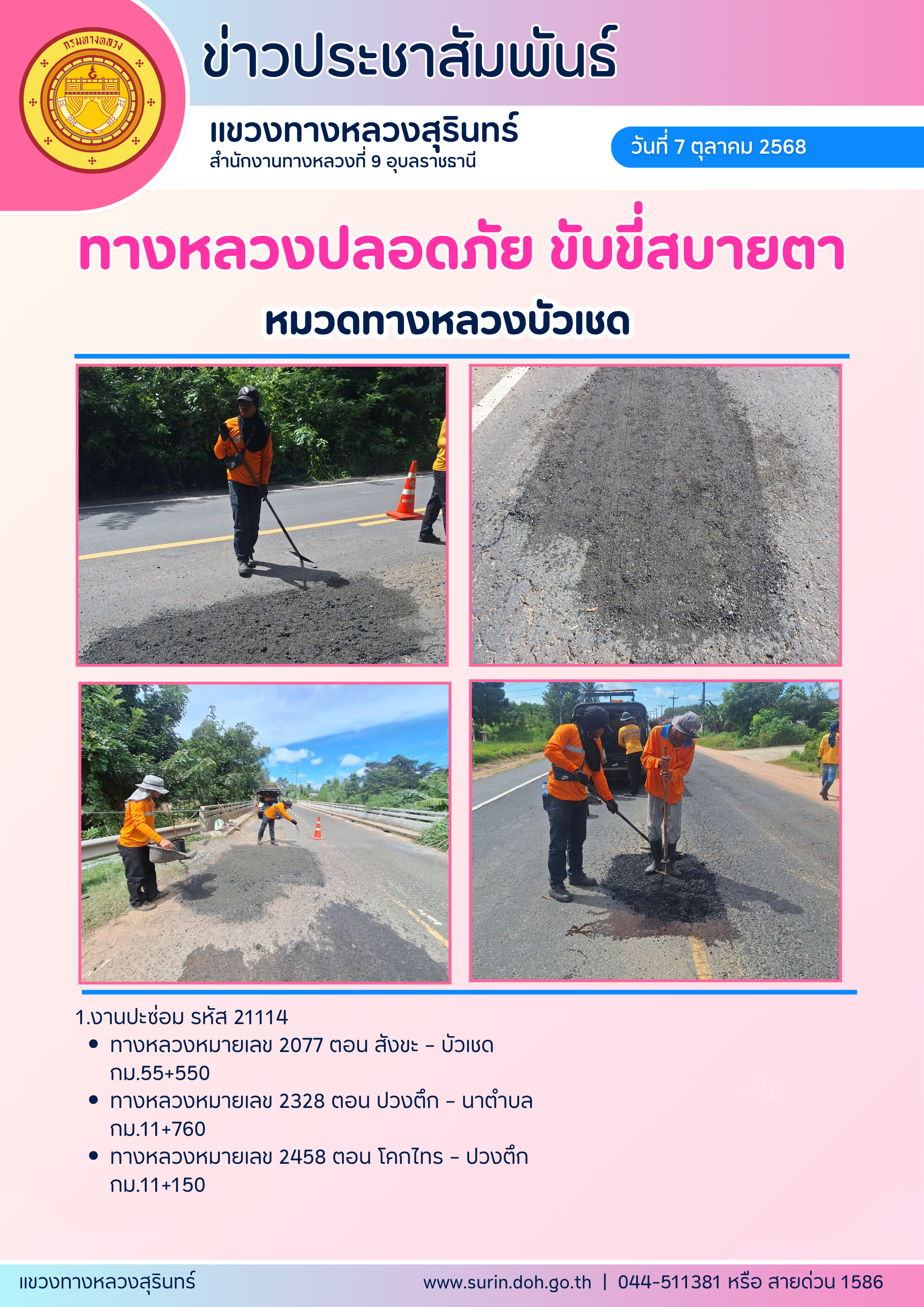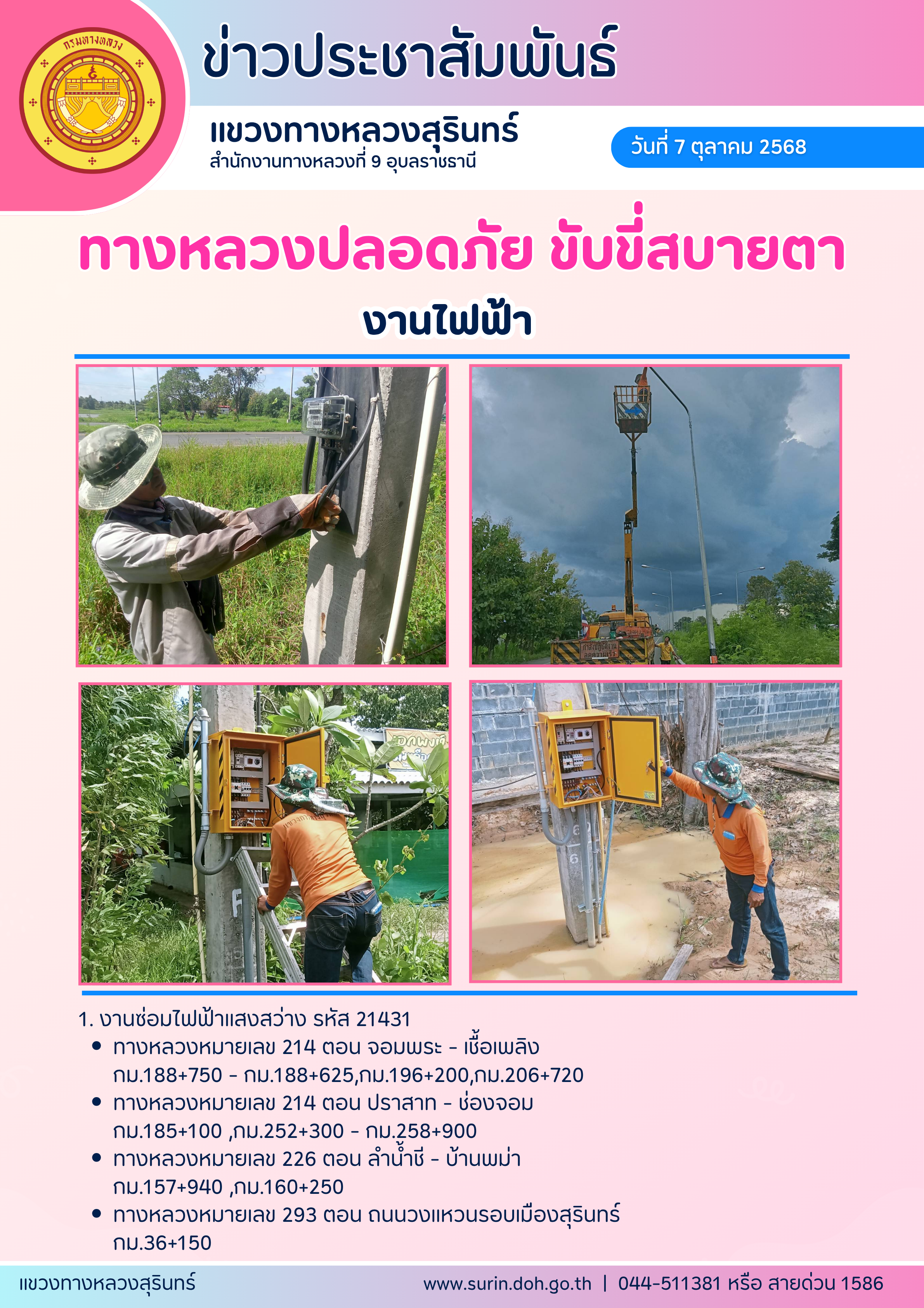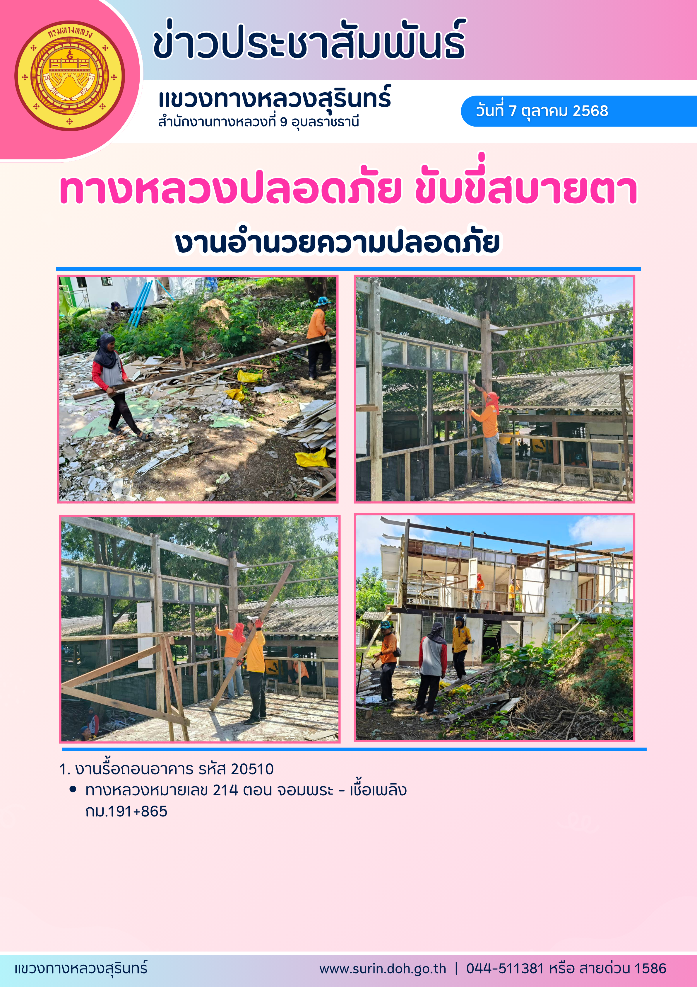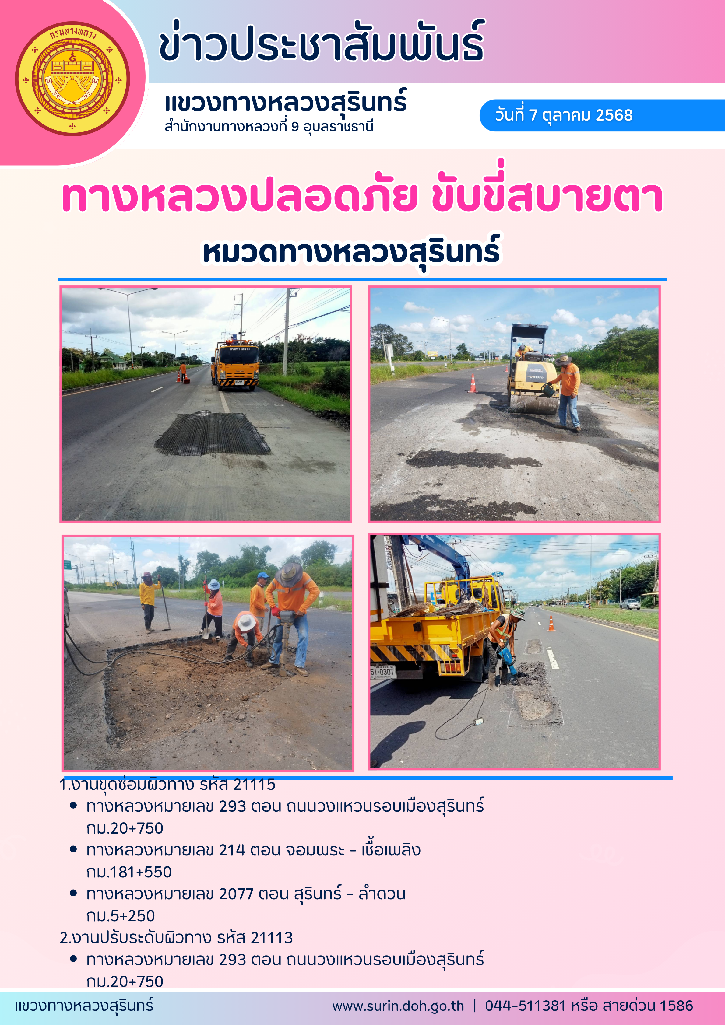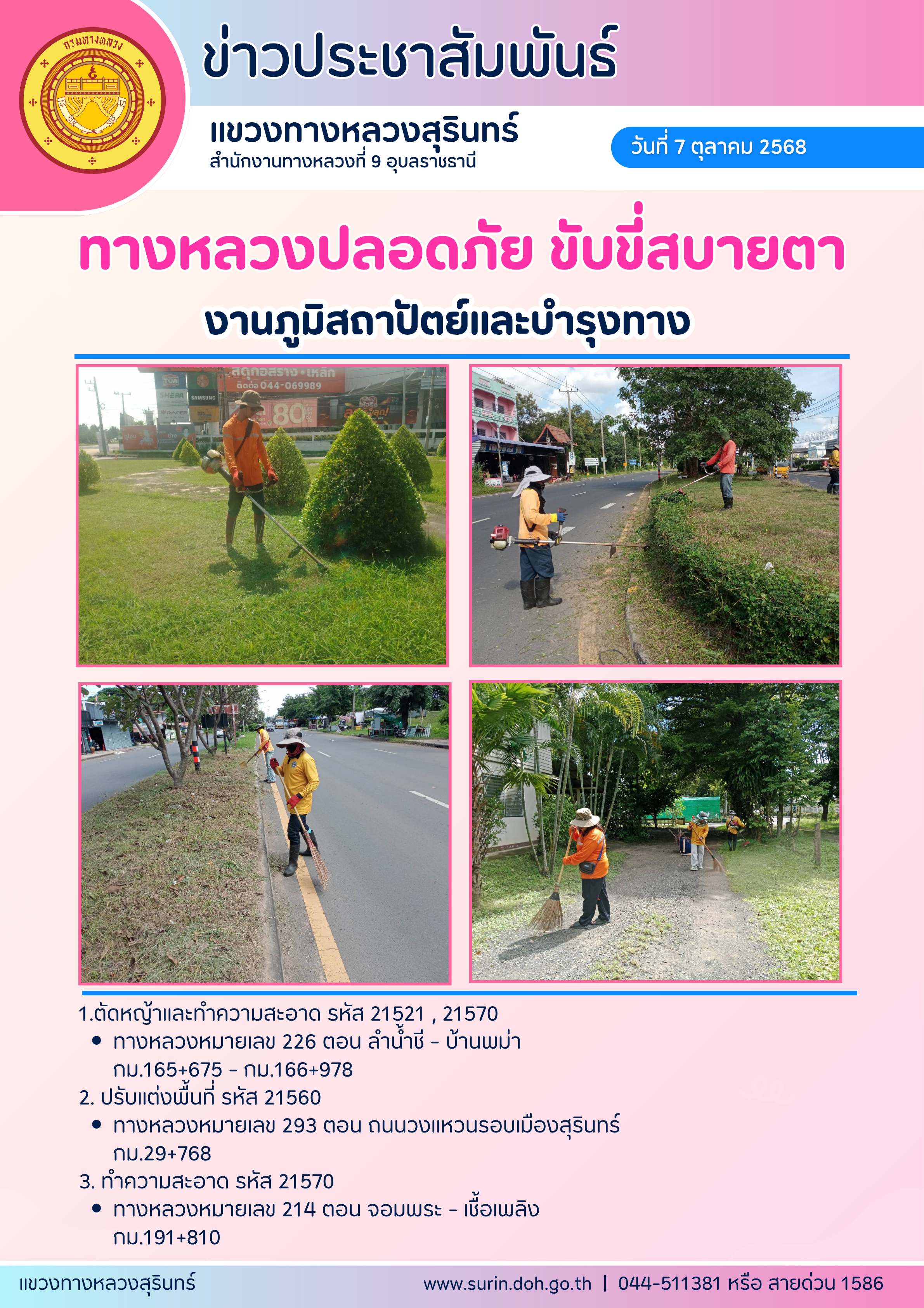 ทางหลวงปลอดภัย ขับขี่สบายตา 7 ตุลาคม 2568