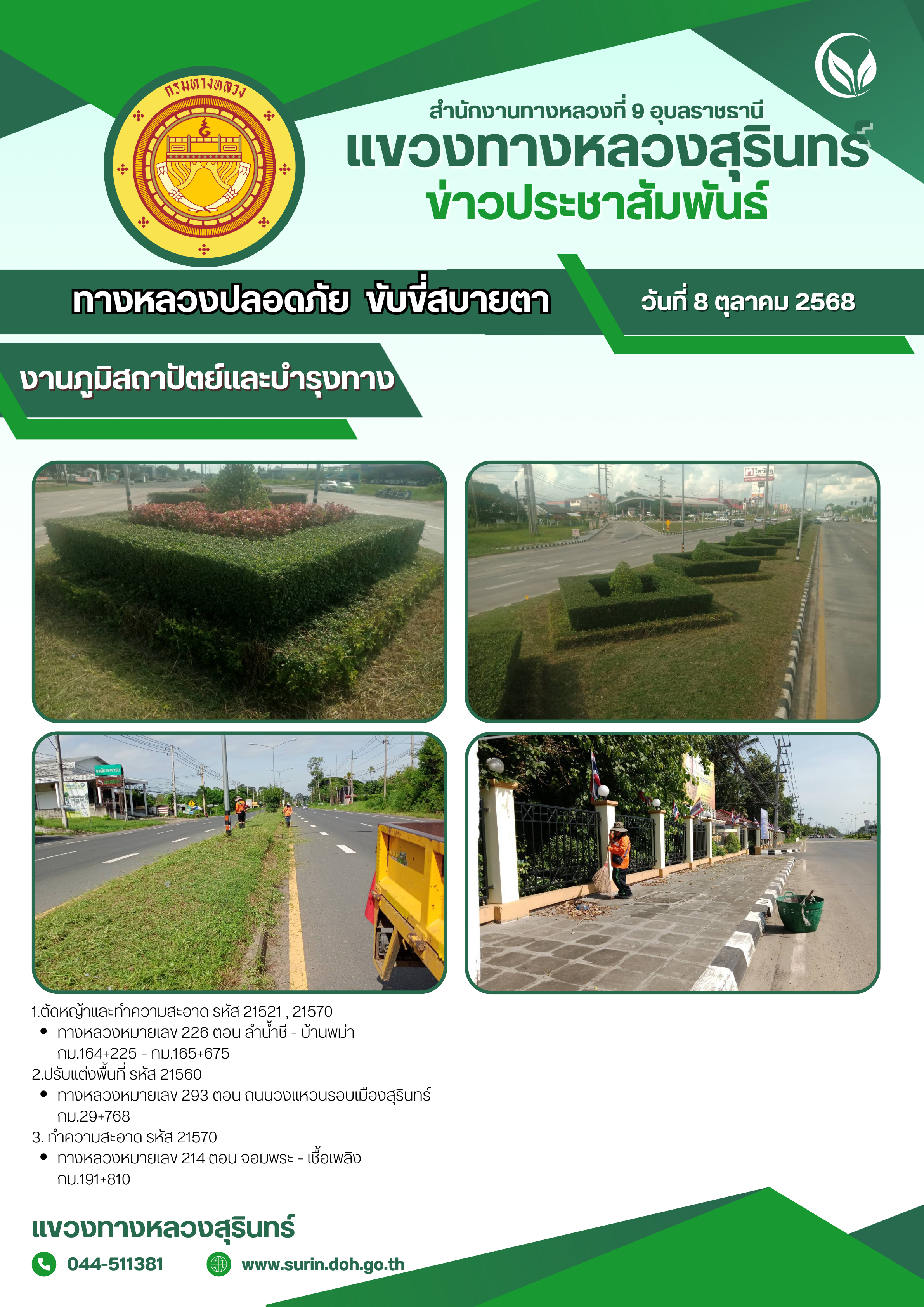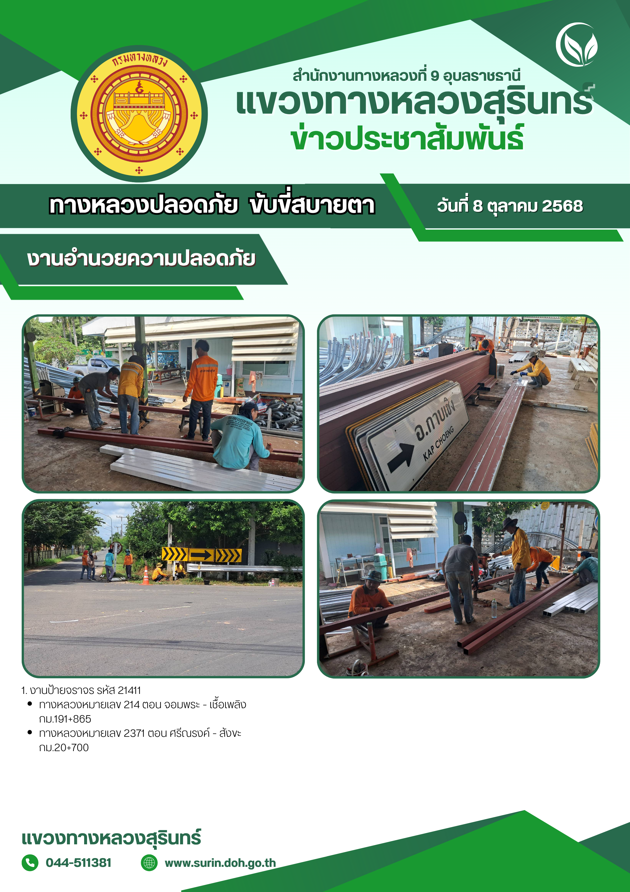 ข้อมูลข่าว : ทางหลวงปลอดภัย ขับขี่สบายตา 8 ตุลาคม 2568