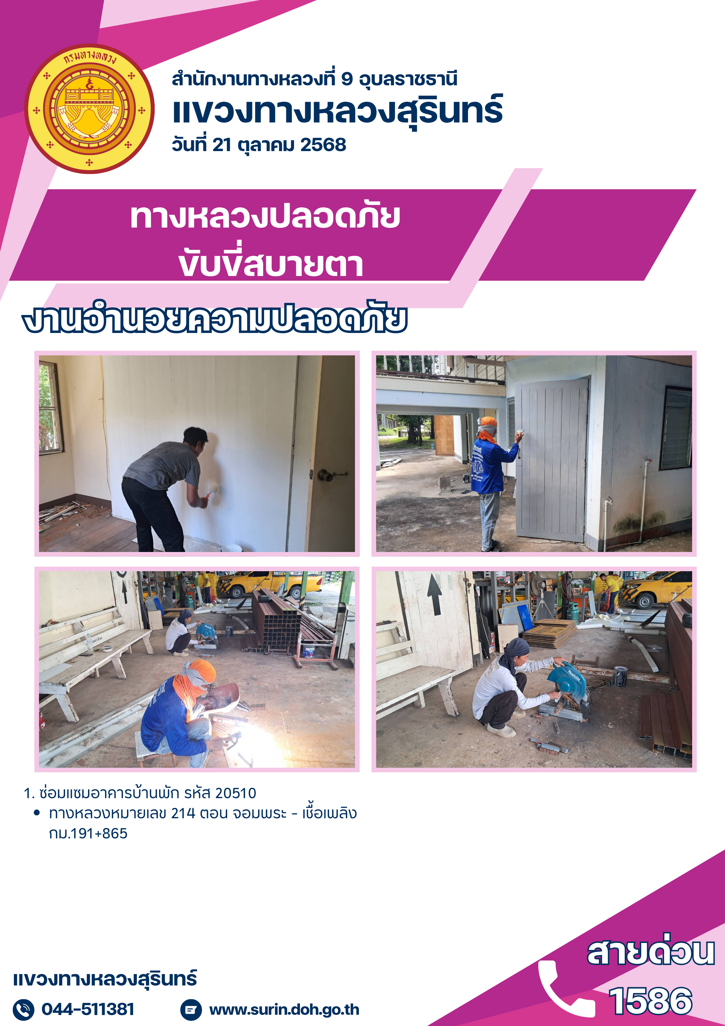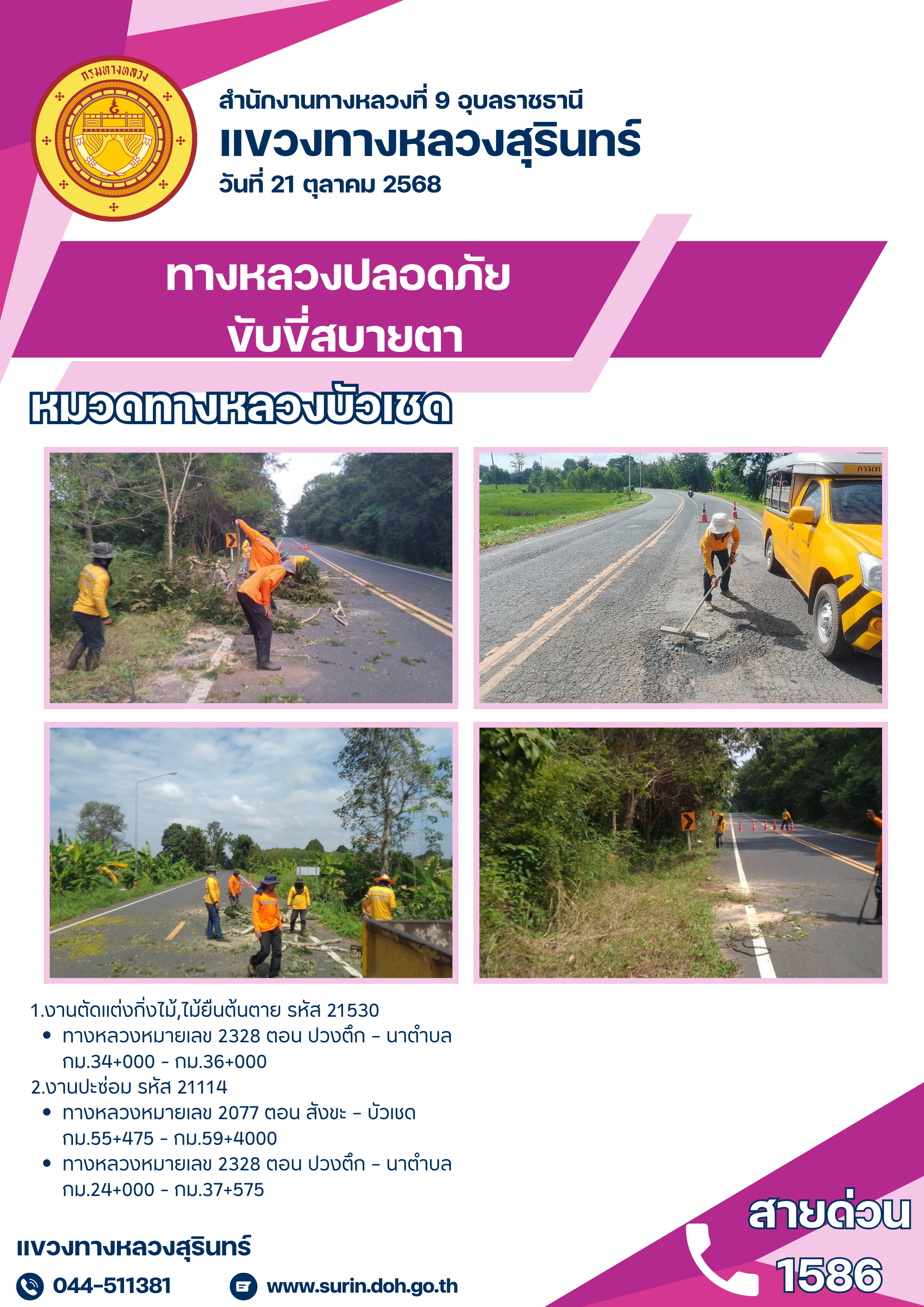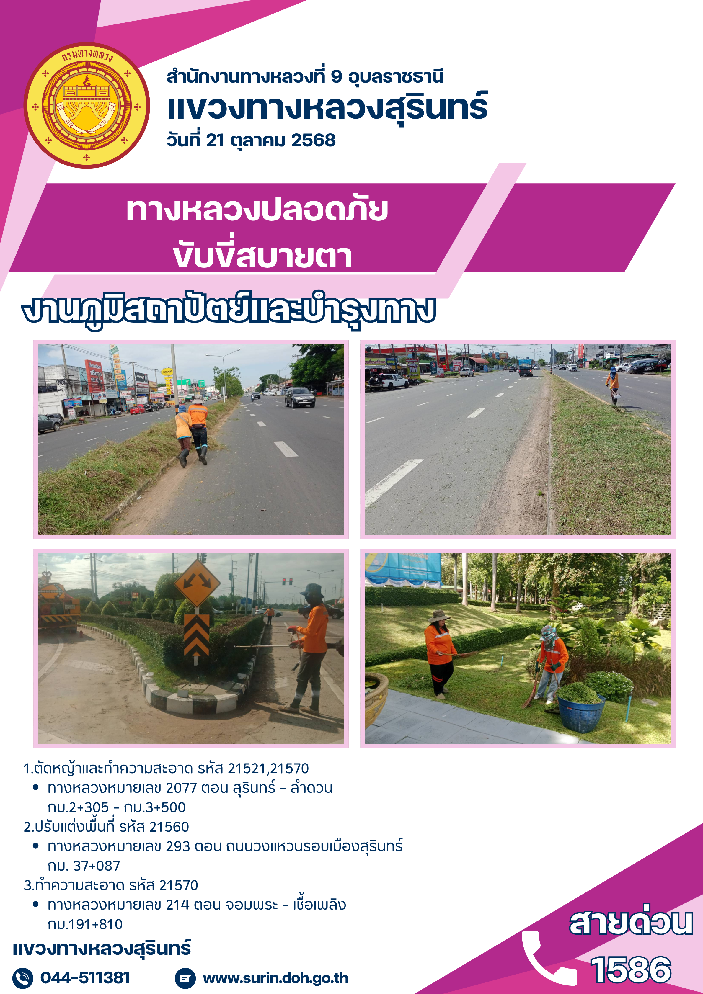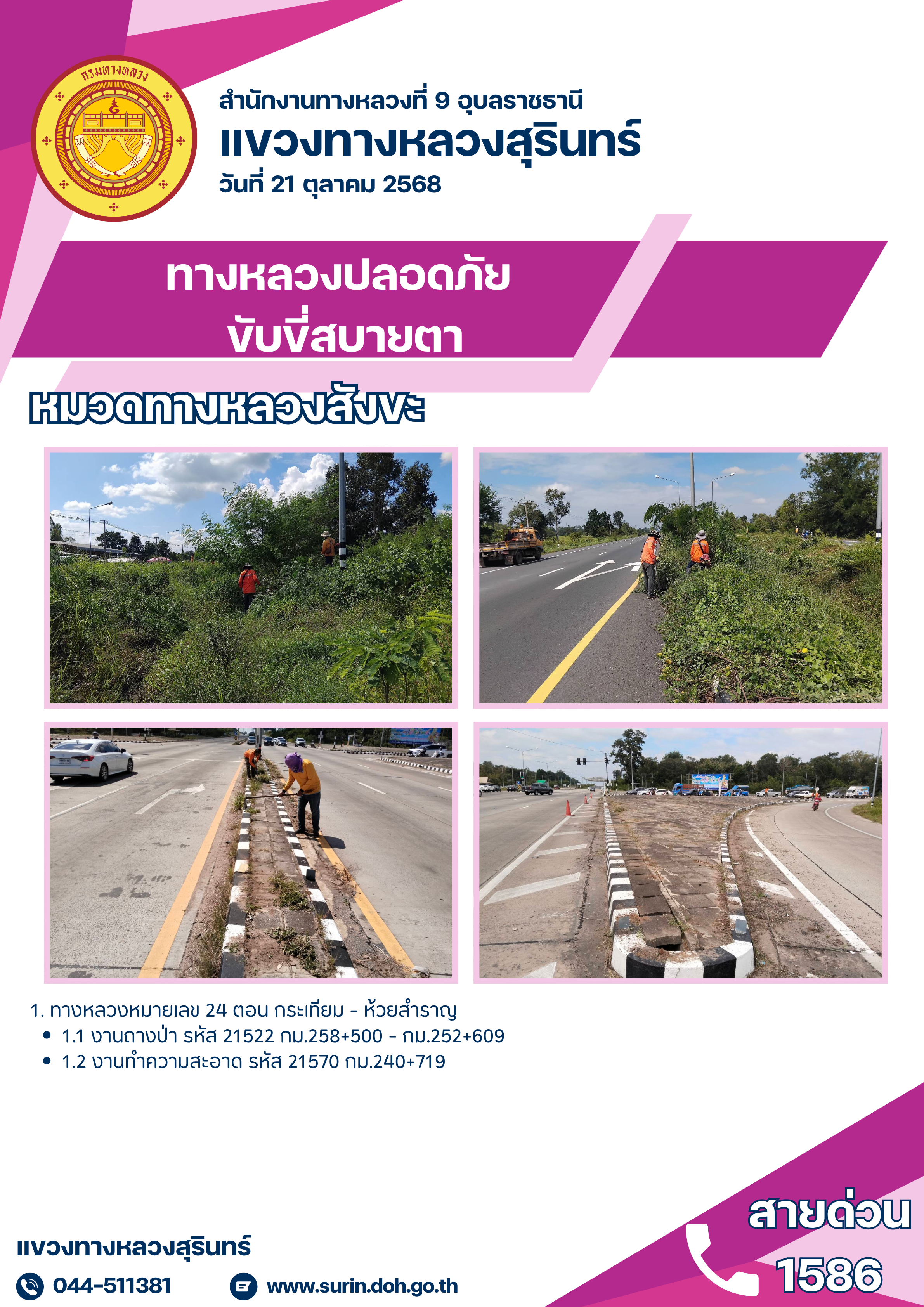 ข้อมูลข่าว : ทางหลวงปลอดภัย ขับขี่สบายตา 21 ตุลาคม 2568