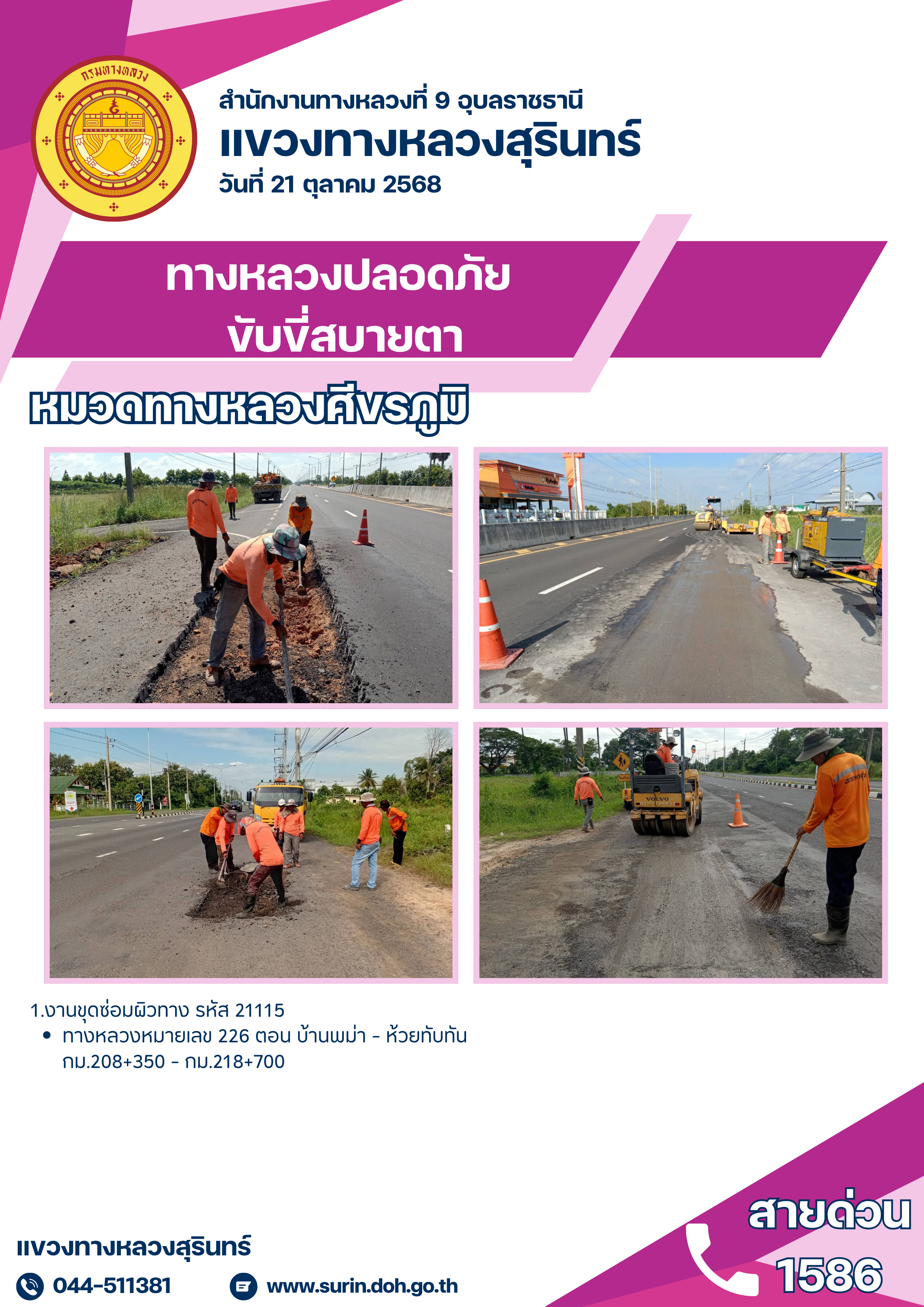 ทางหลวงปลอดภัย ขับขี่สบายตา 21 ตุลาคม 2568