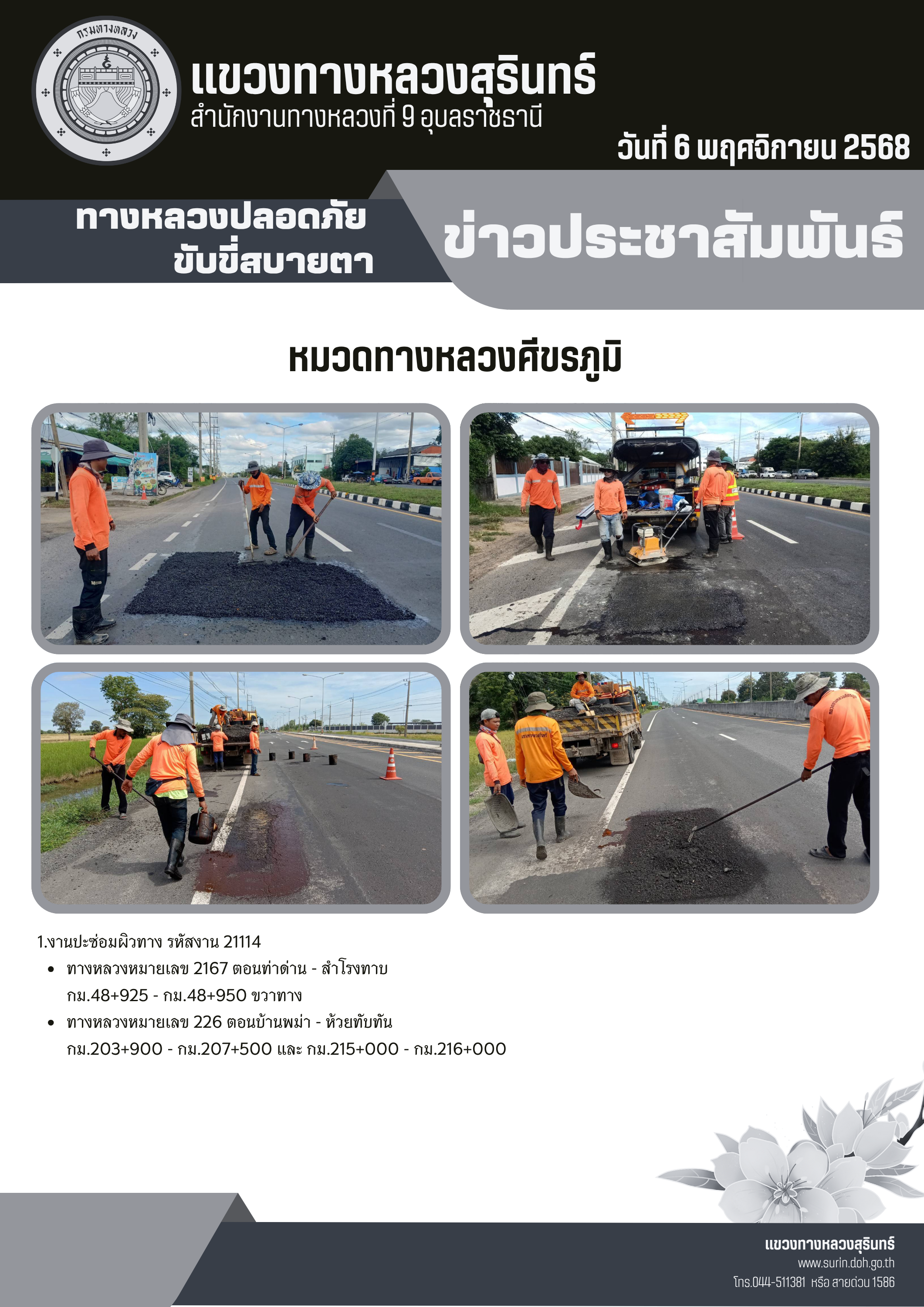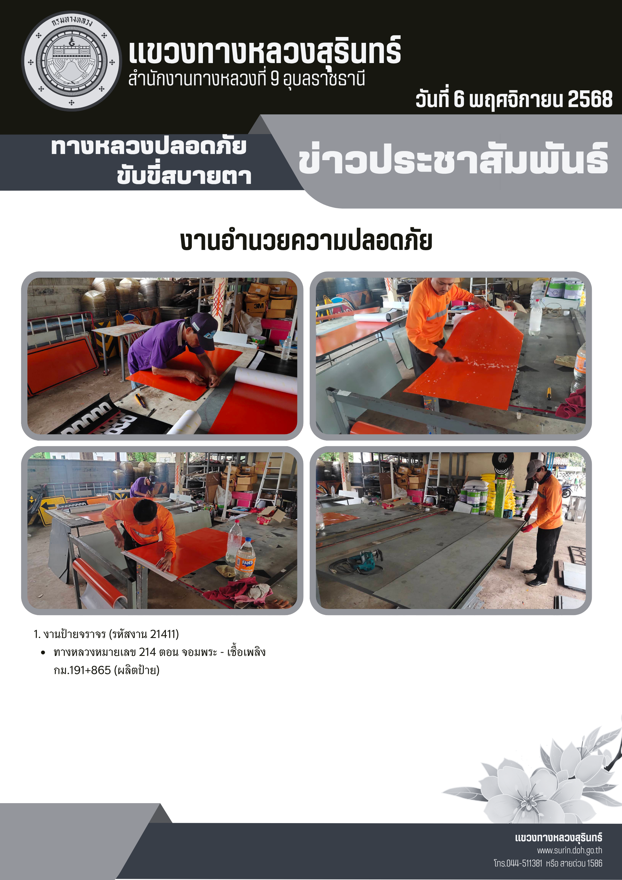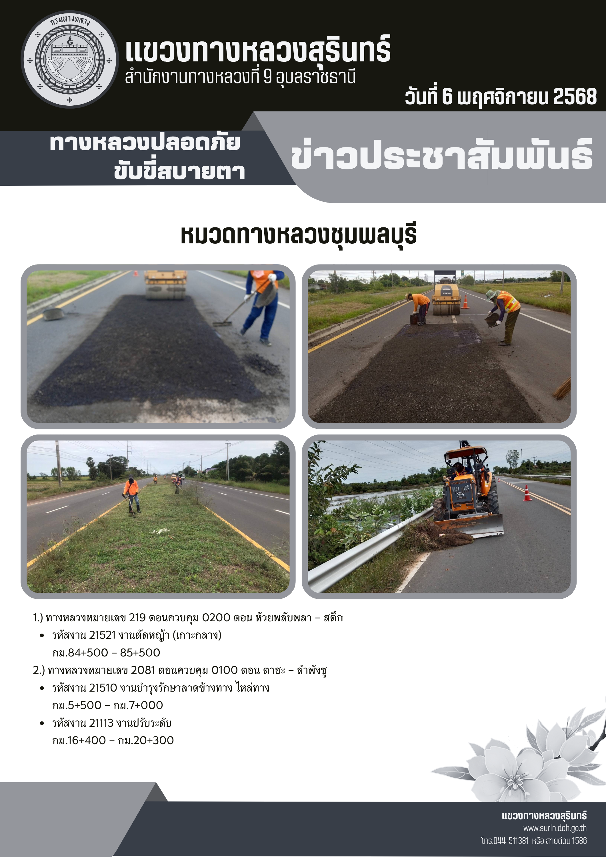ข้อมูลข่าว : ทางหลวงปลอดภัย ขับขี่สบายตา 6 พฤศจิกายน 2568