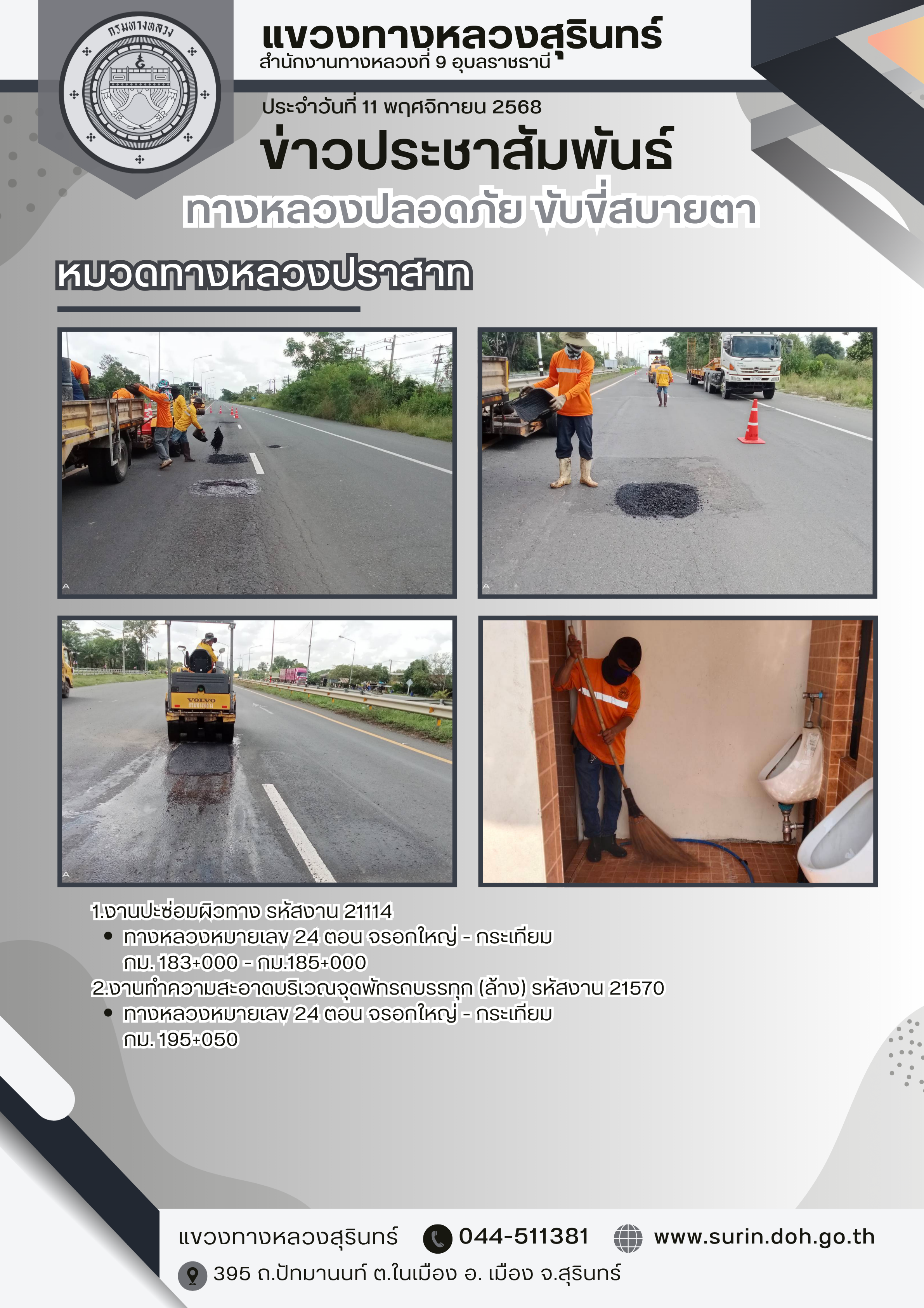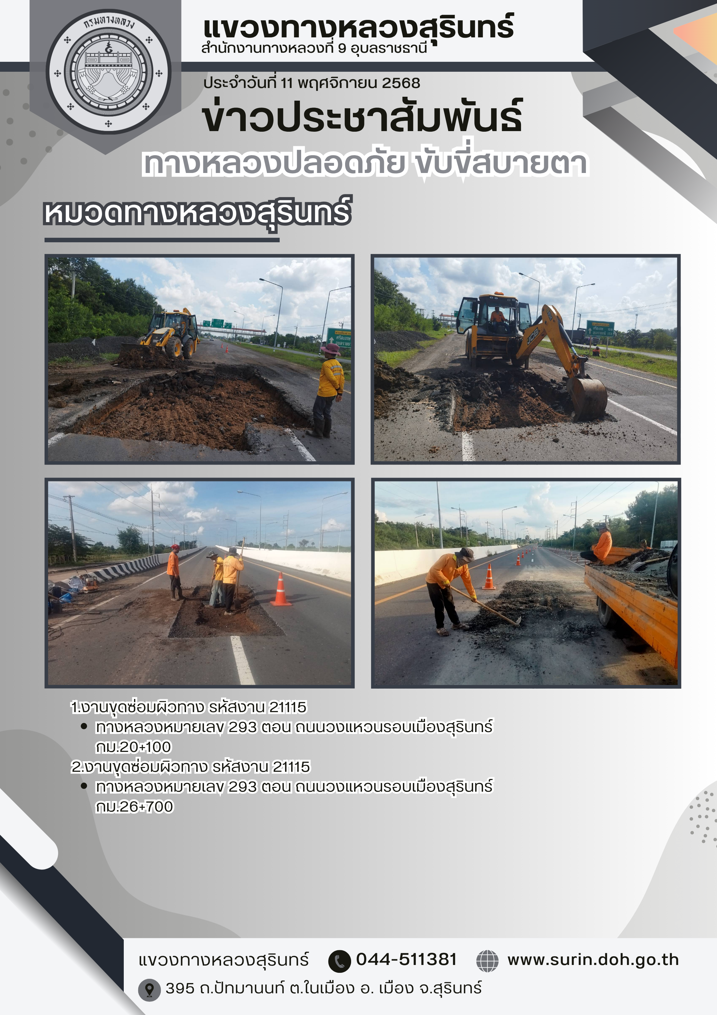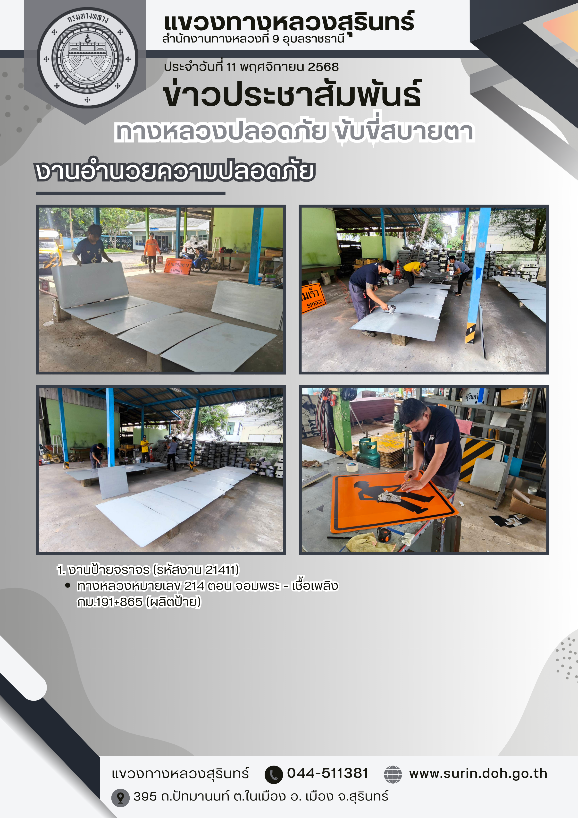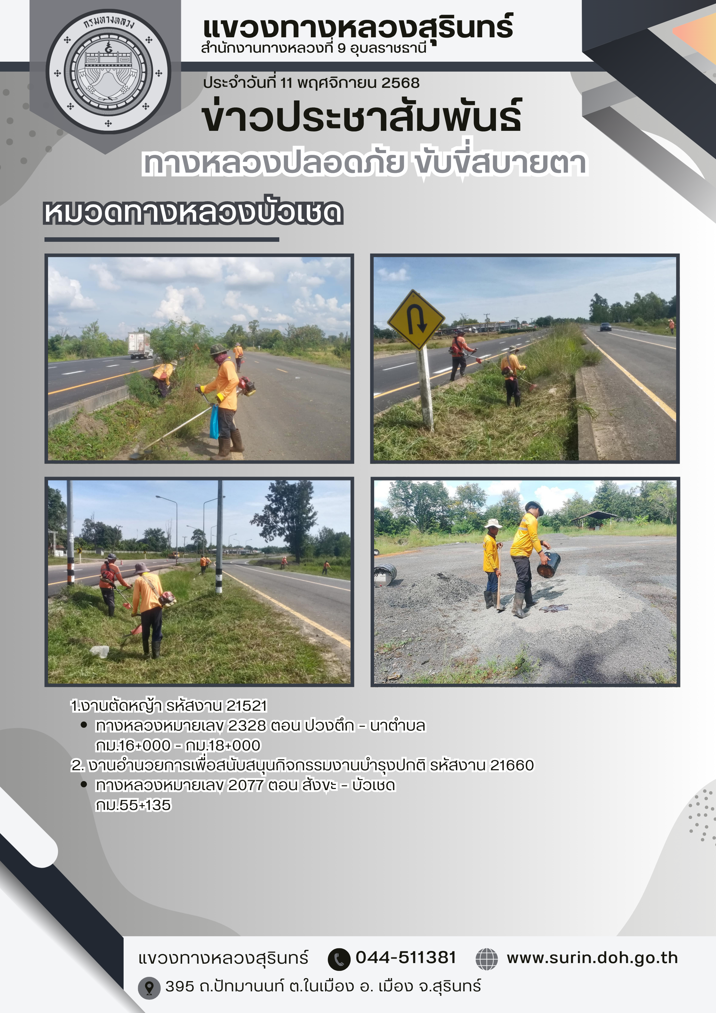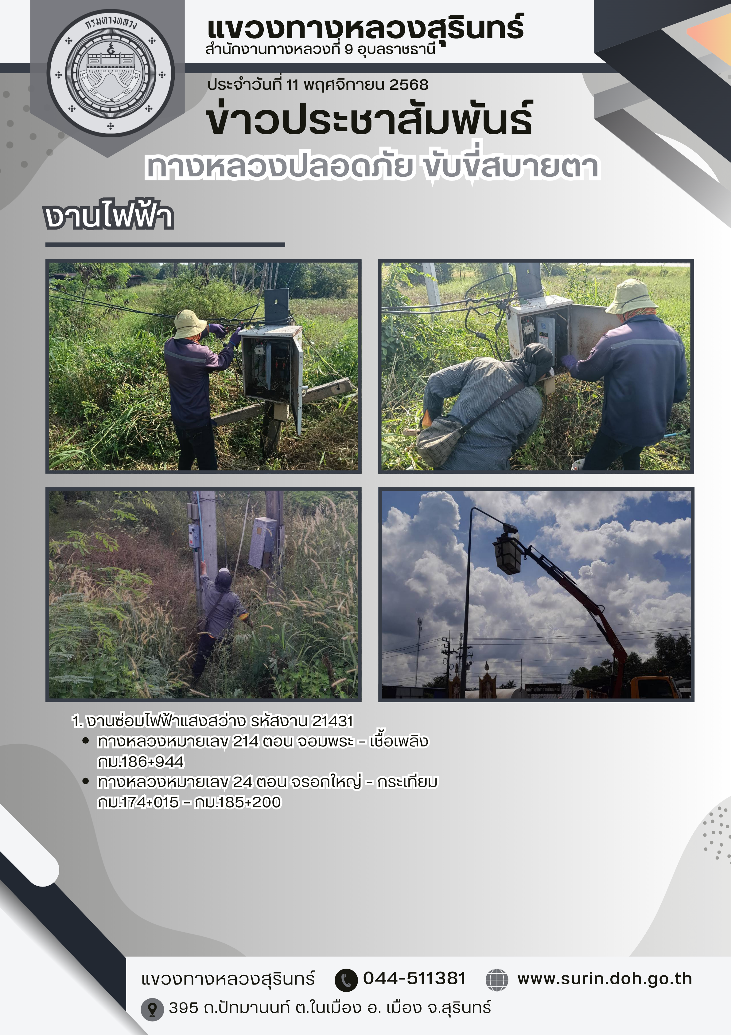 ข้อมูลข่าว : ทางหลวงปลอดภัย ขับขี่สบายตา 11 พฤศจิกายน 2568