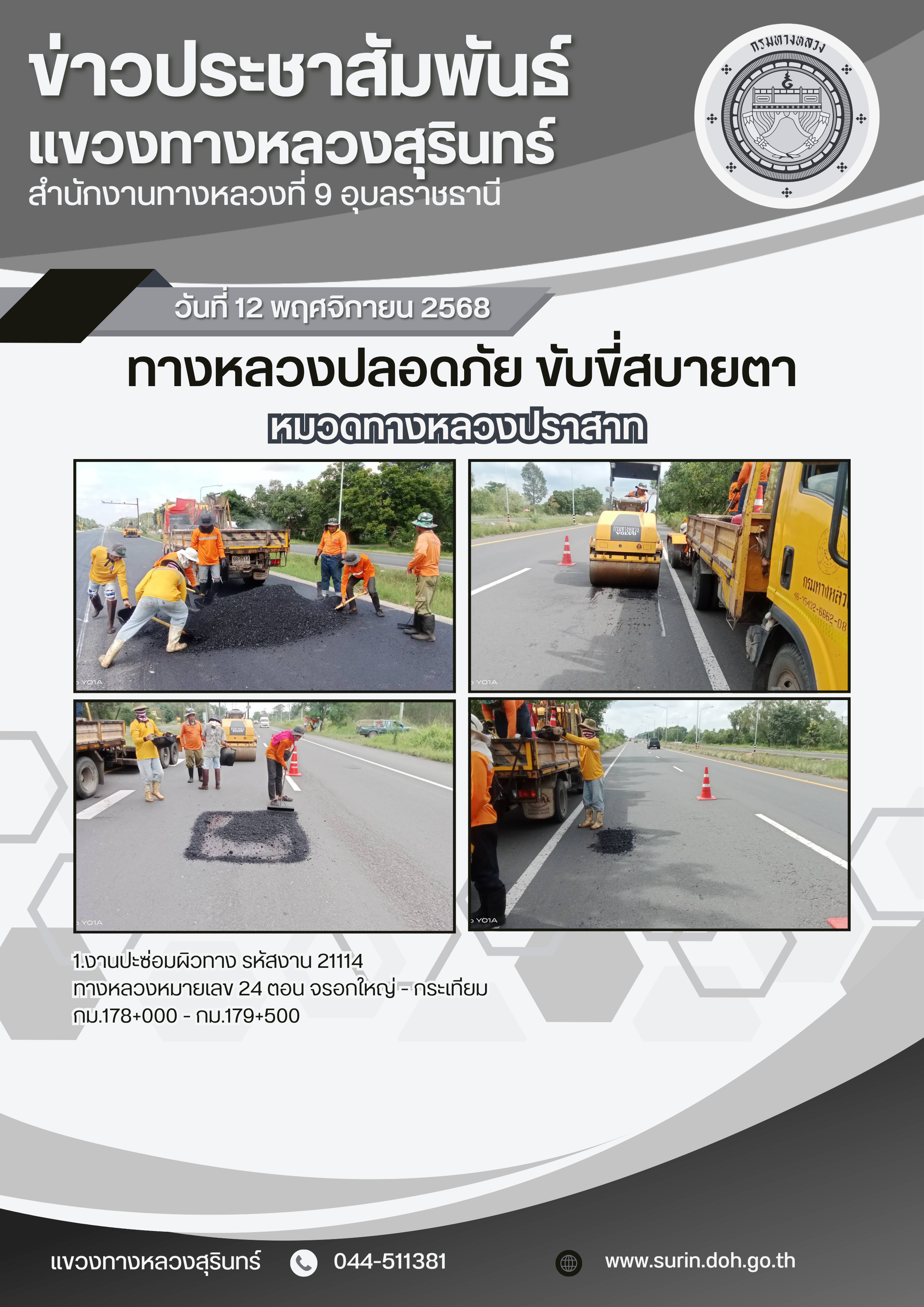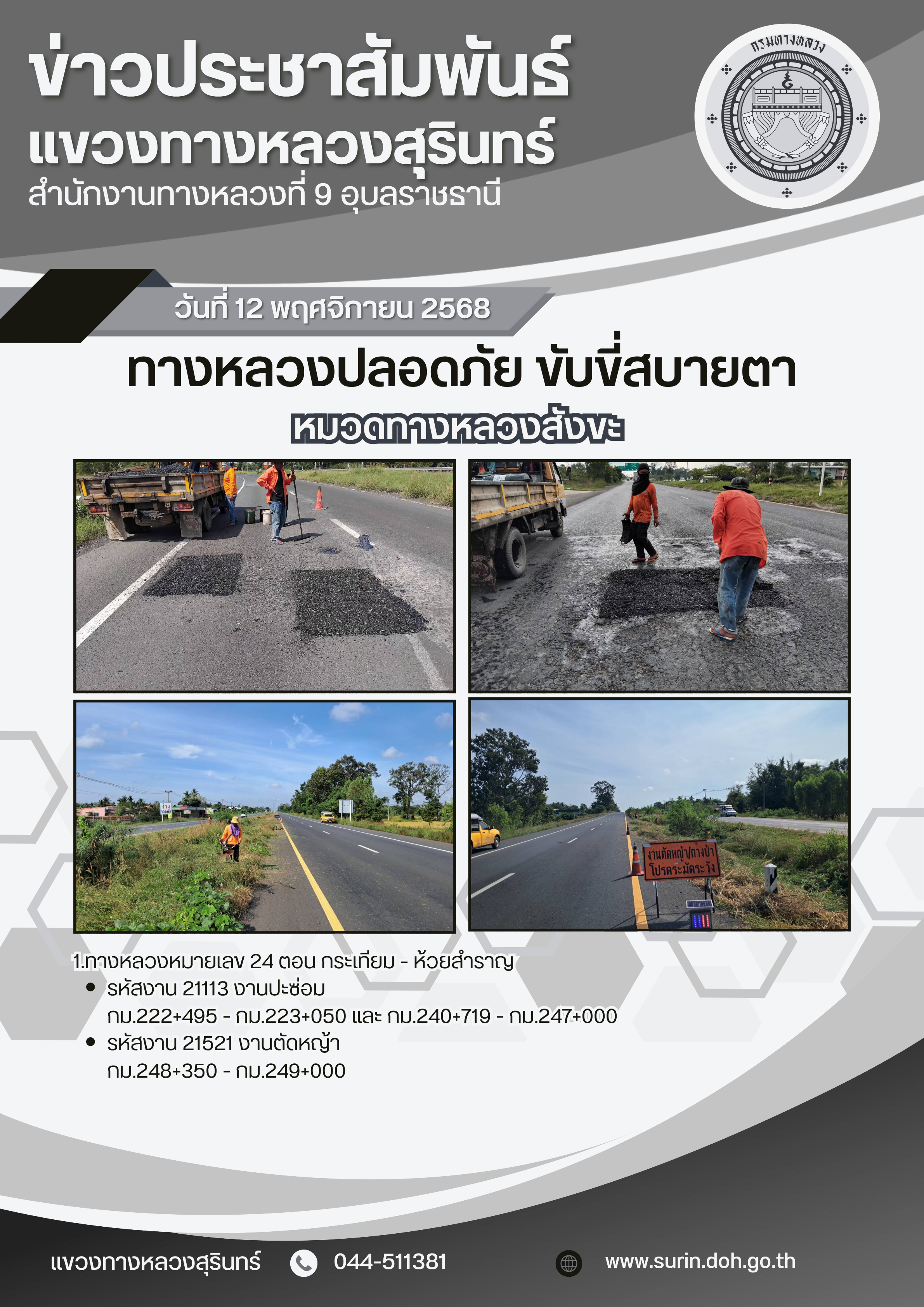 ทางหลวงปลอดภัย ขับขี่สบายตา 12 พฤศจิกายน 2568