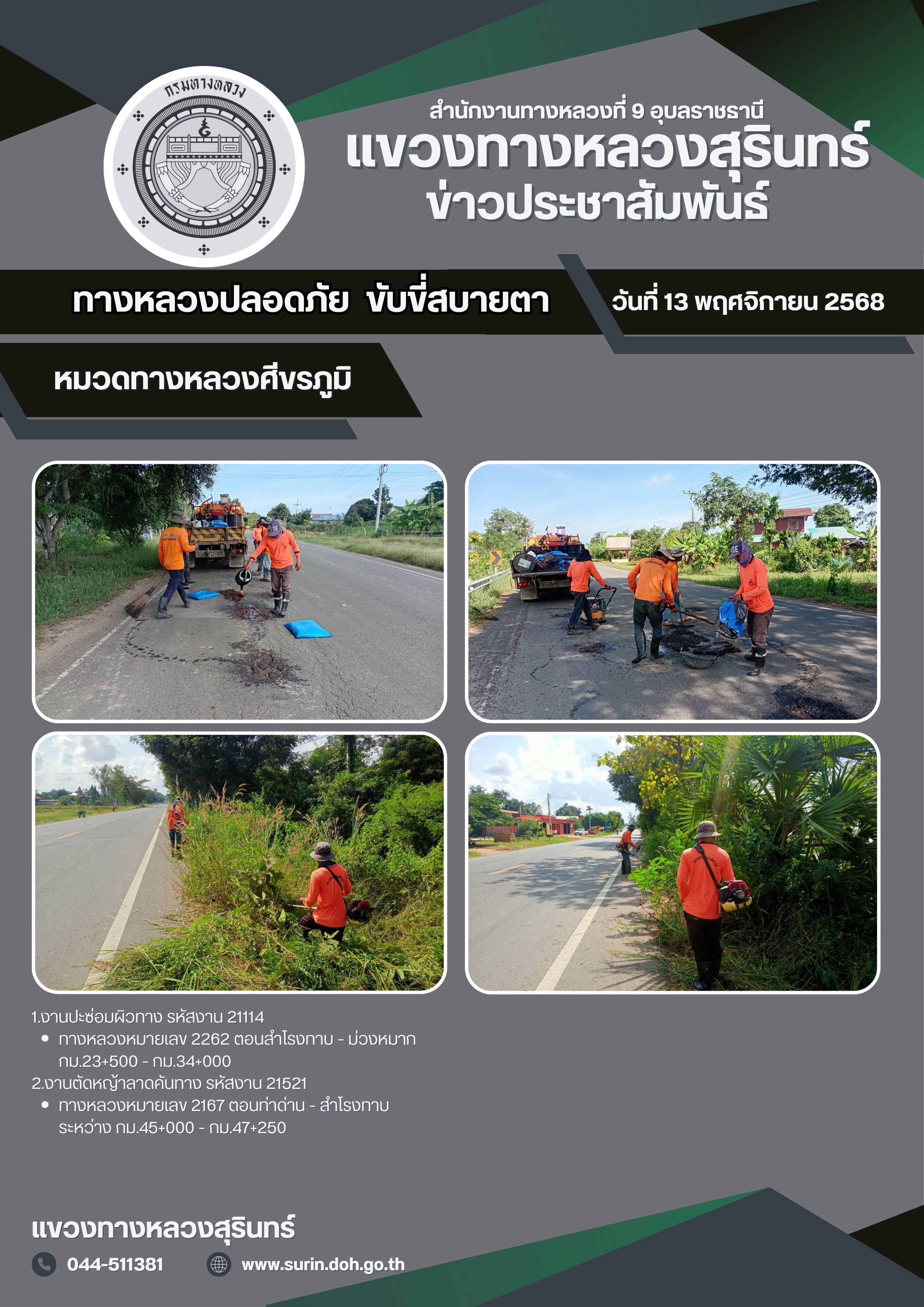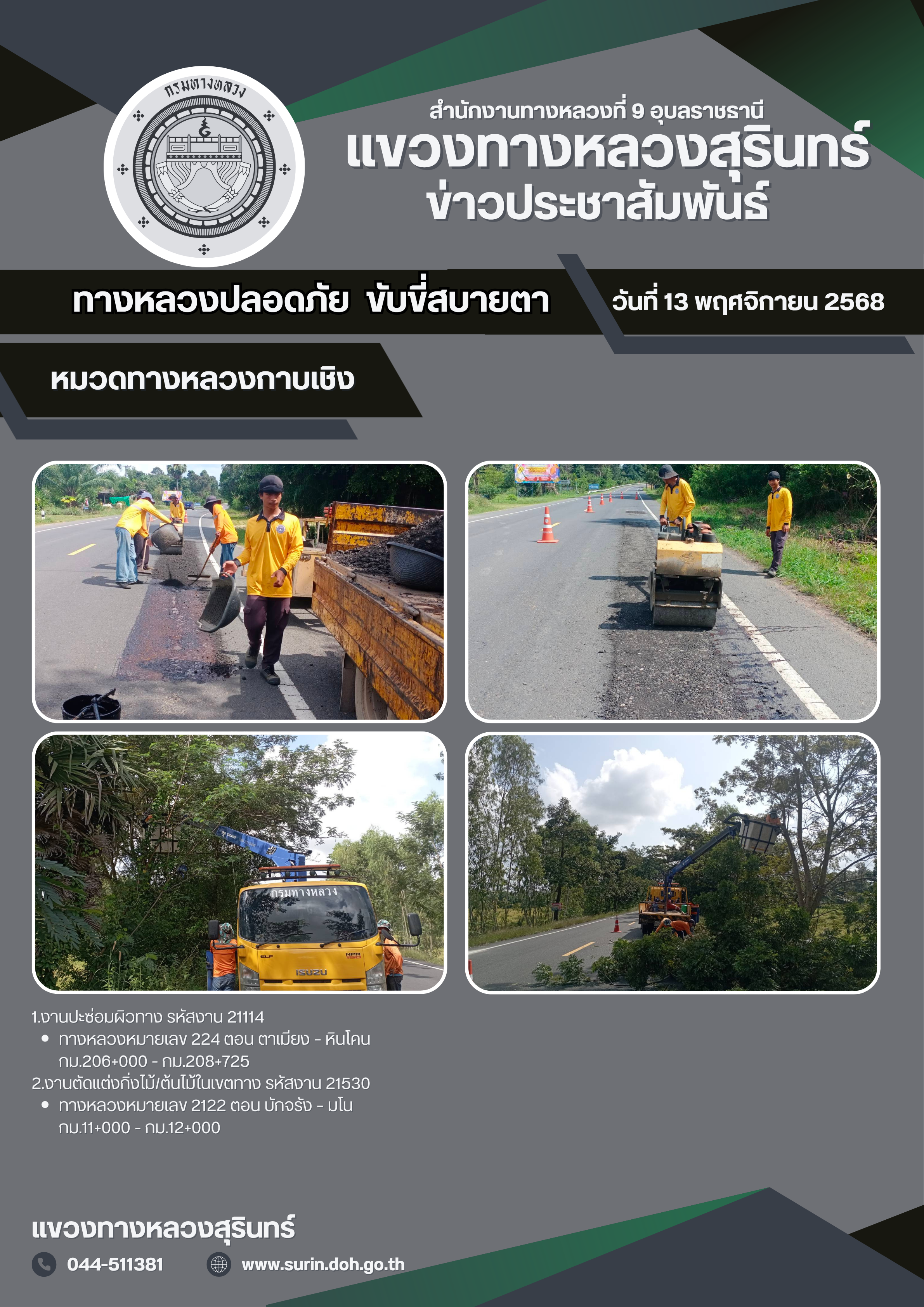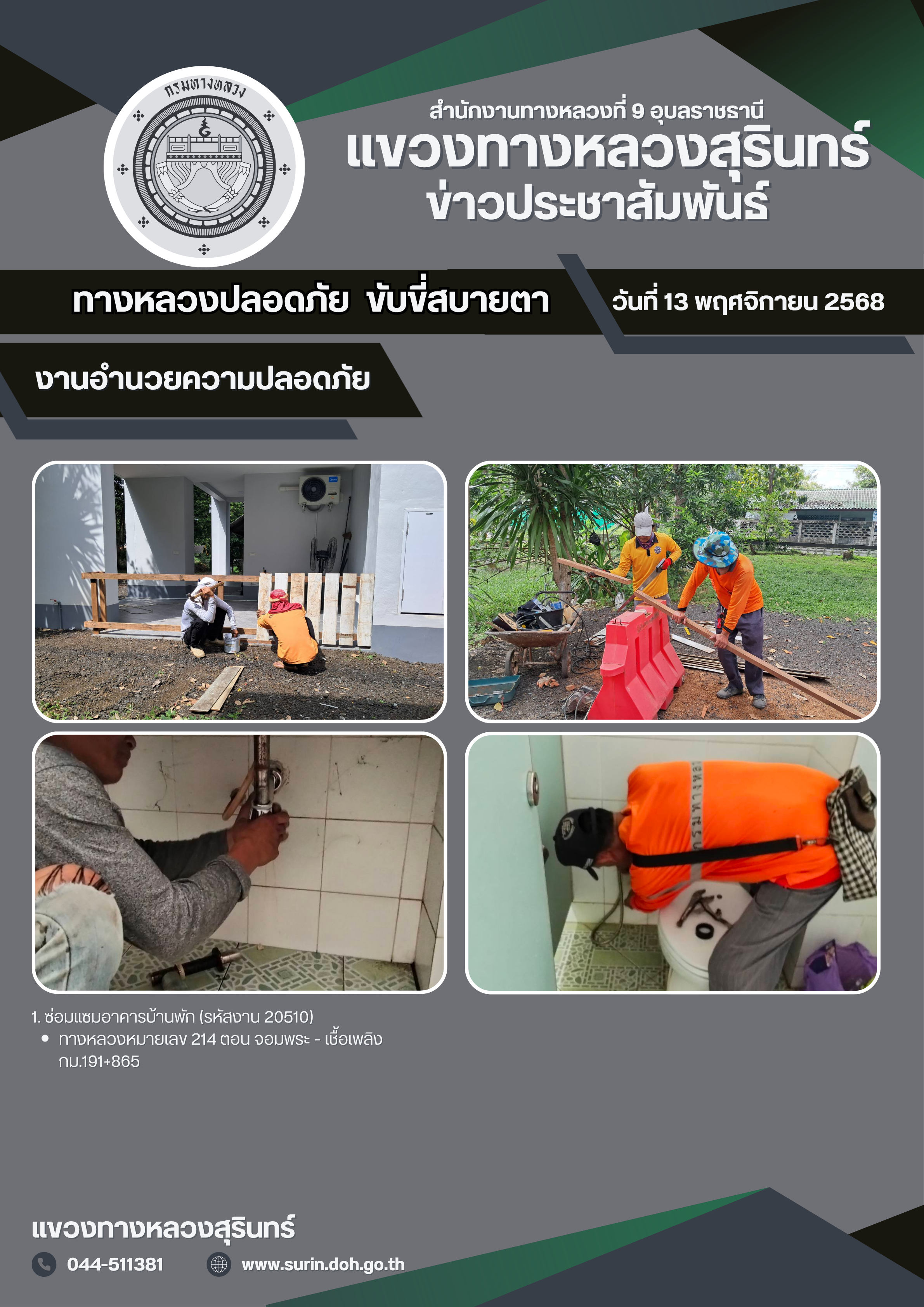 ข้อมูลข่าว : ทางหลวงปลอดภัย ขับขี่สบายตา 13 พฤศจิกายน 2568