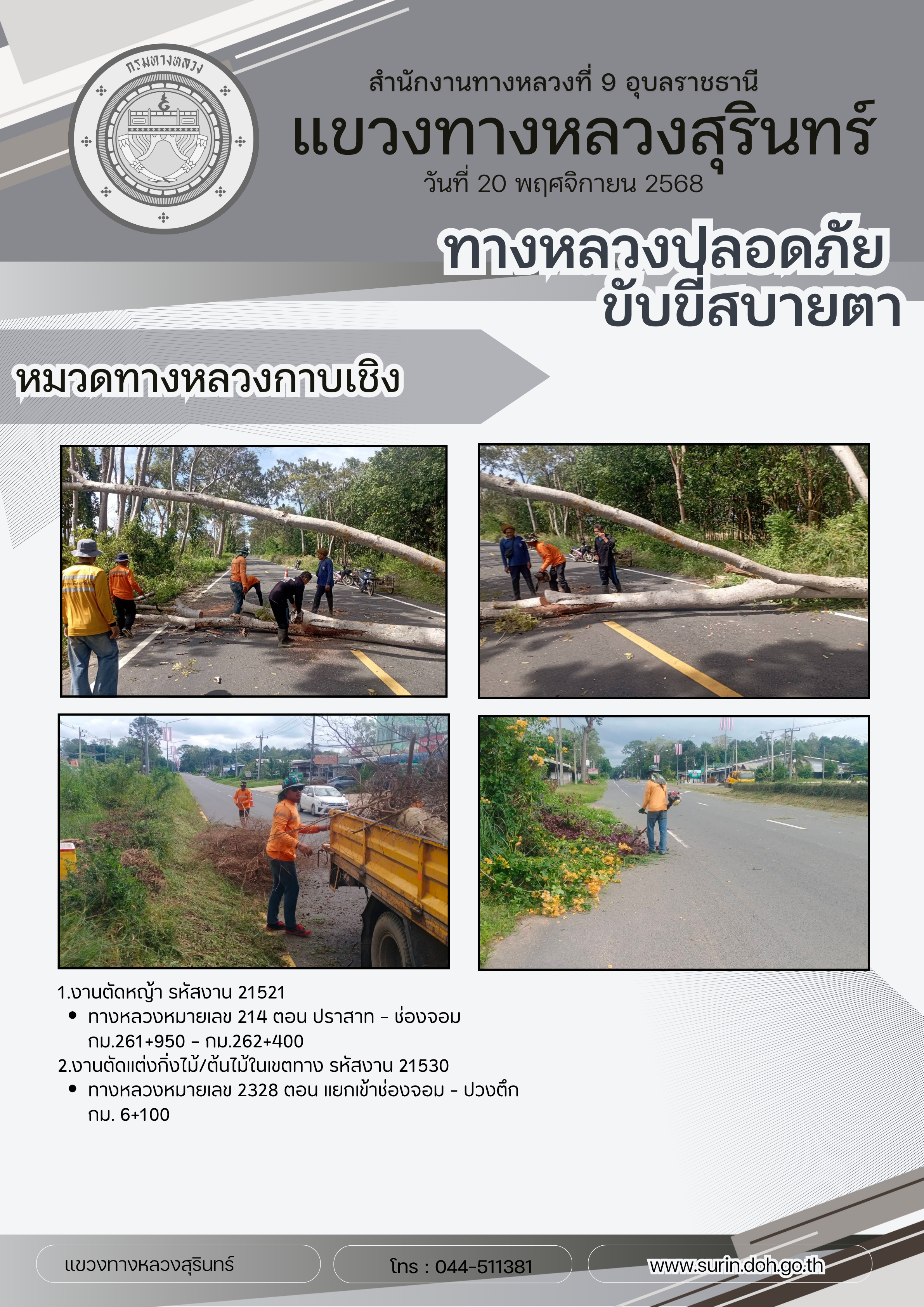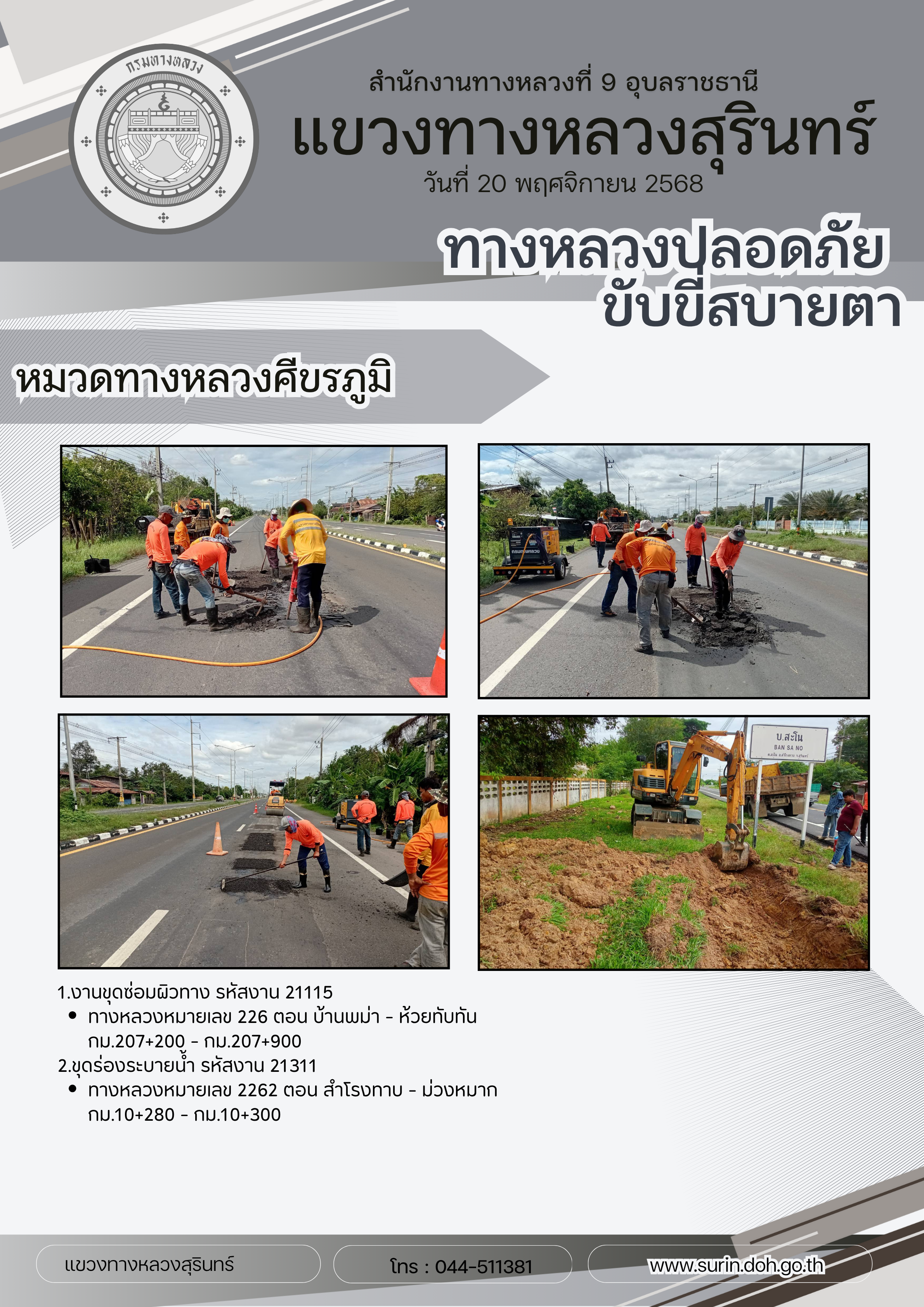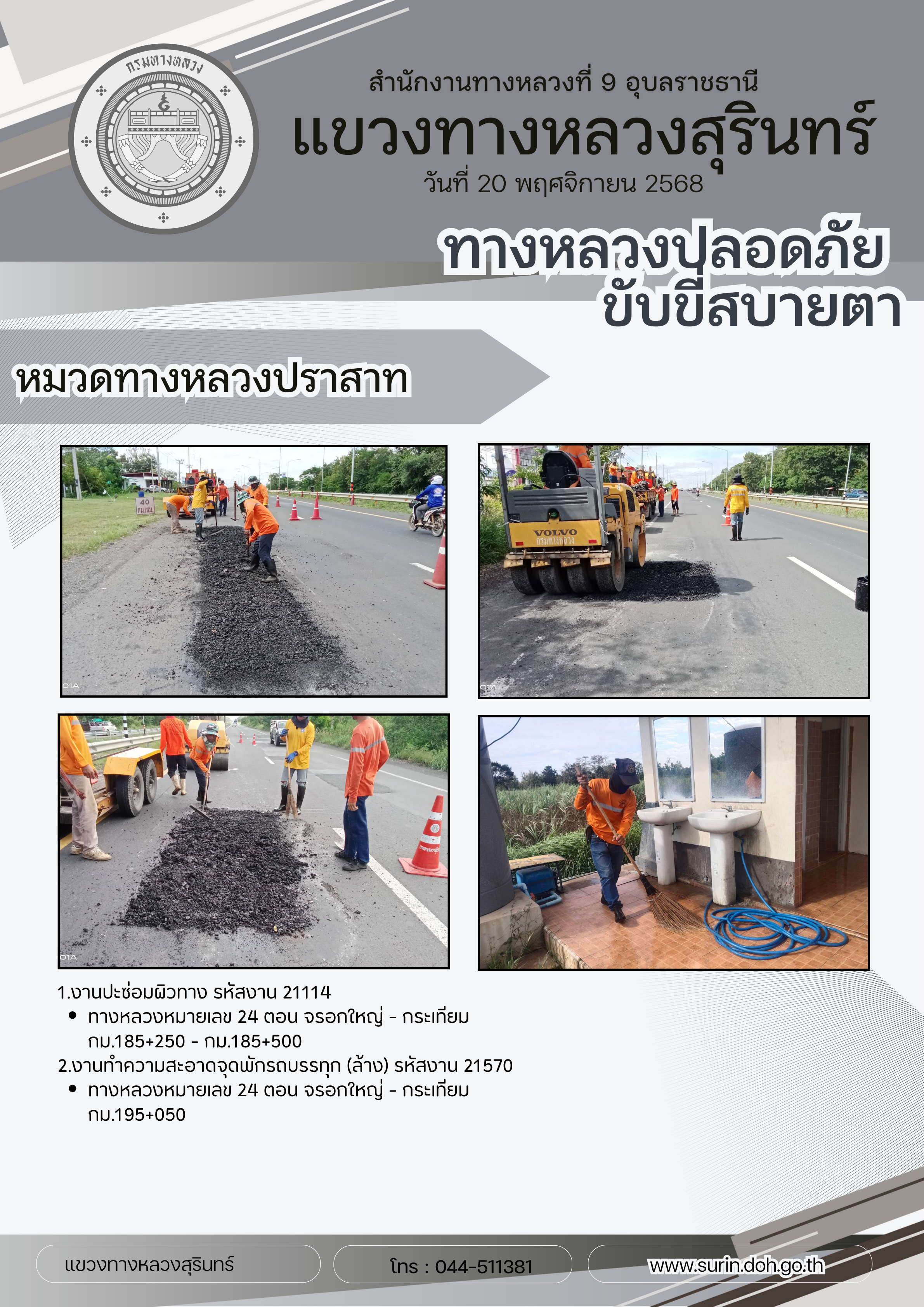 ข้อมูลข่าว : ทางหลวงปลอดภัย ขับขี่สบายตา 20 พฤศจิกายน 2568