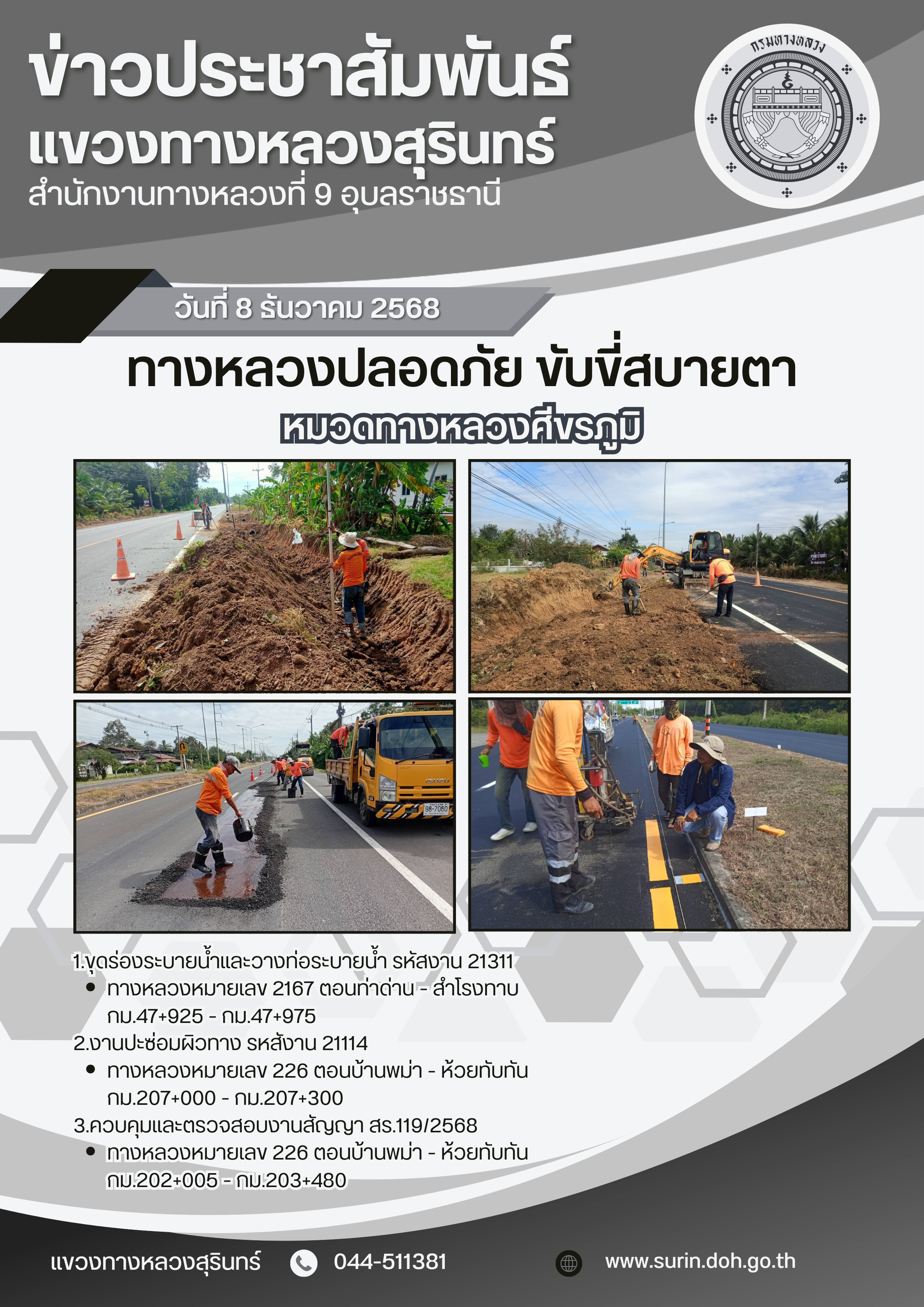 ข้อมูลข่าว : ทางหลวงปลอดภัย ขับขี่สบายตา 8 ธันวาคม 2568