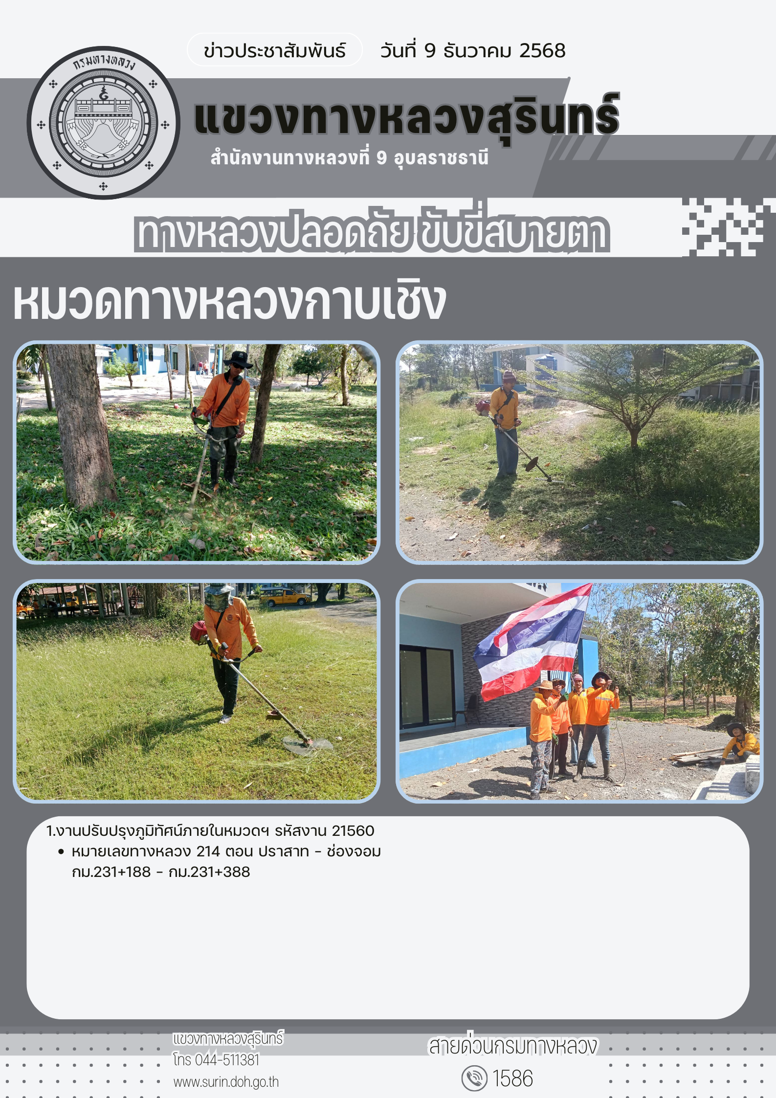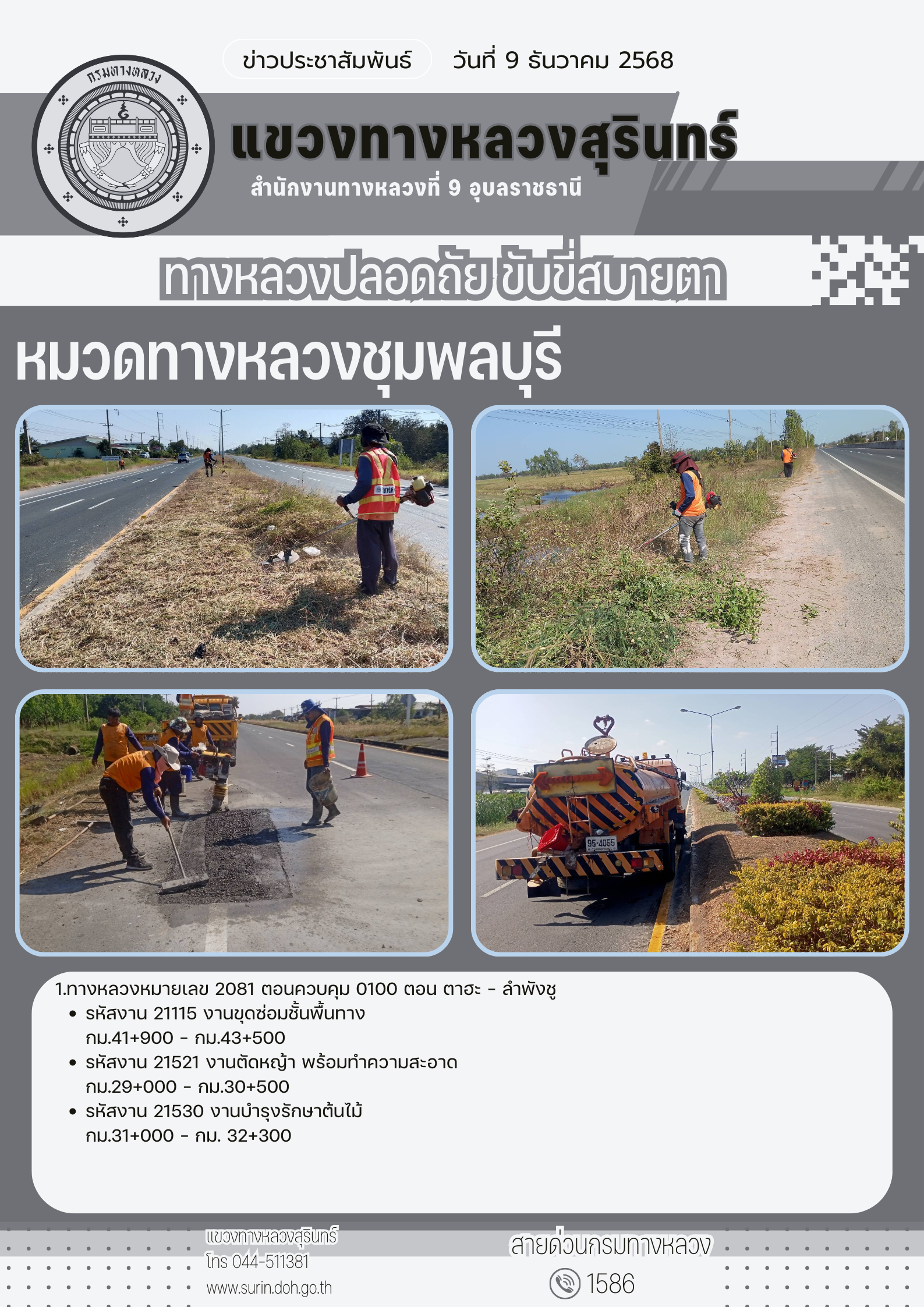 ข้อมูลข่าว : ทางหลวงปลอดภัย ขับขี่สบายตา 9 ธันวาคม 2568