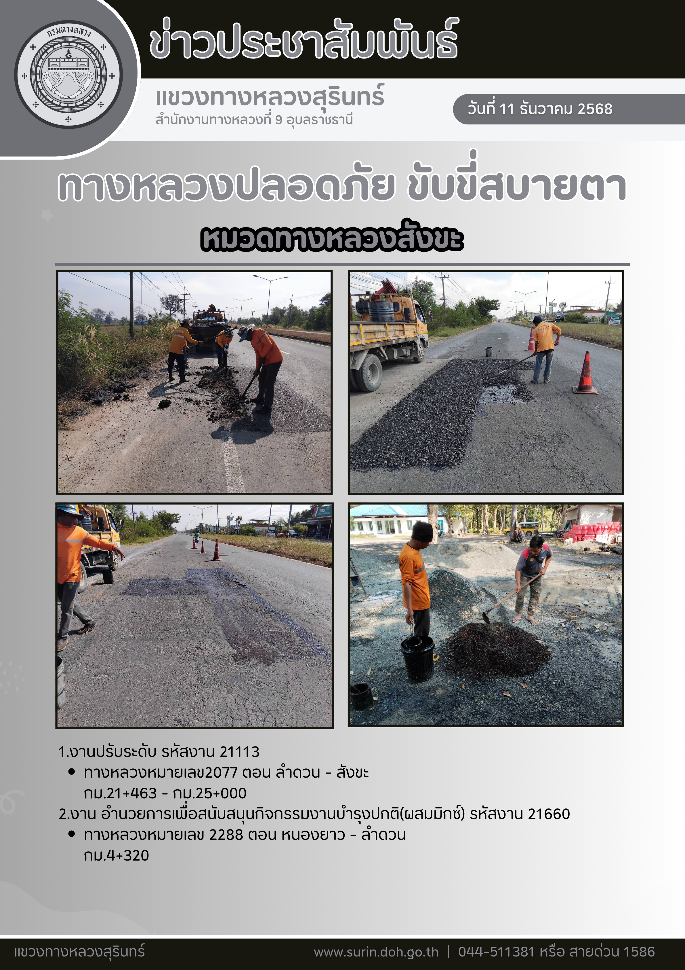 ข้อมูลข่าว : ทางหลวงปลอดภัย ขับขี่สบายตา 11 ธันวาคม 2568