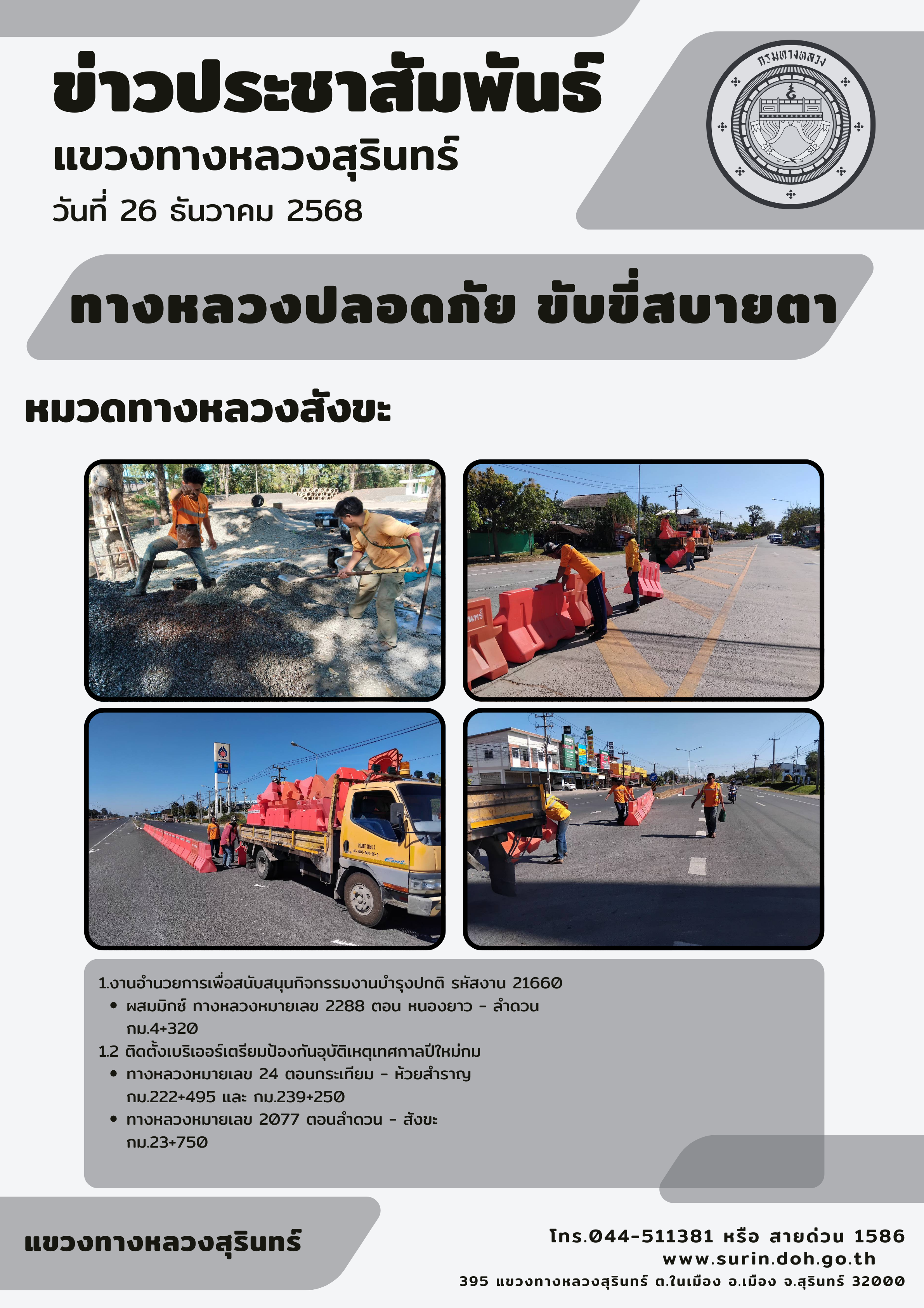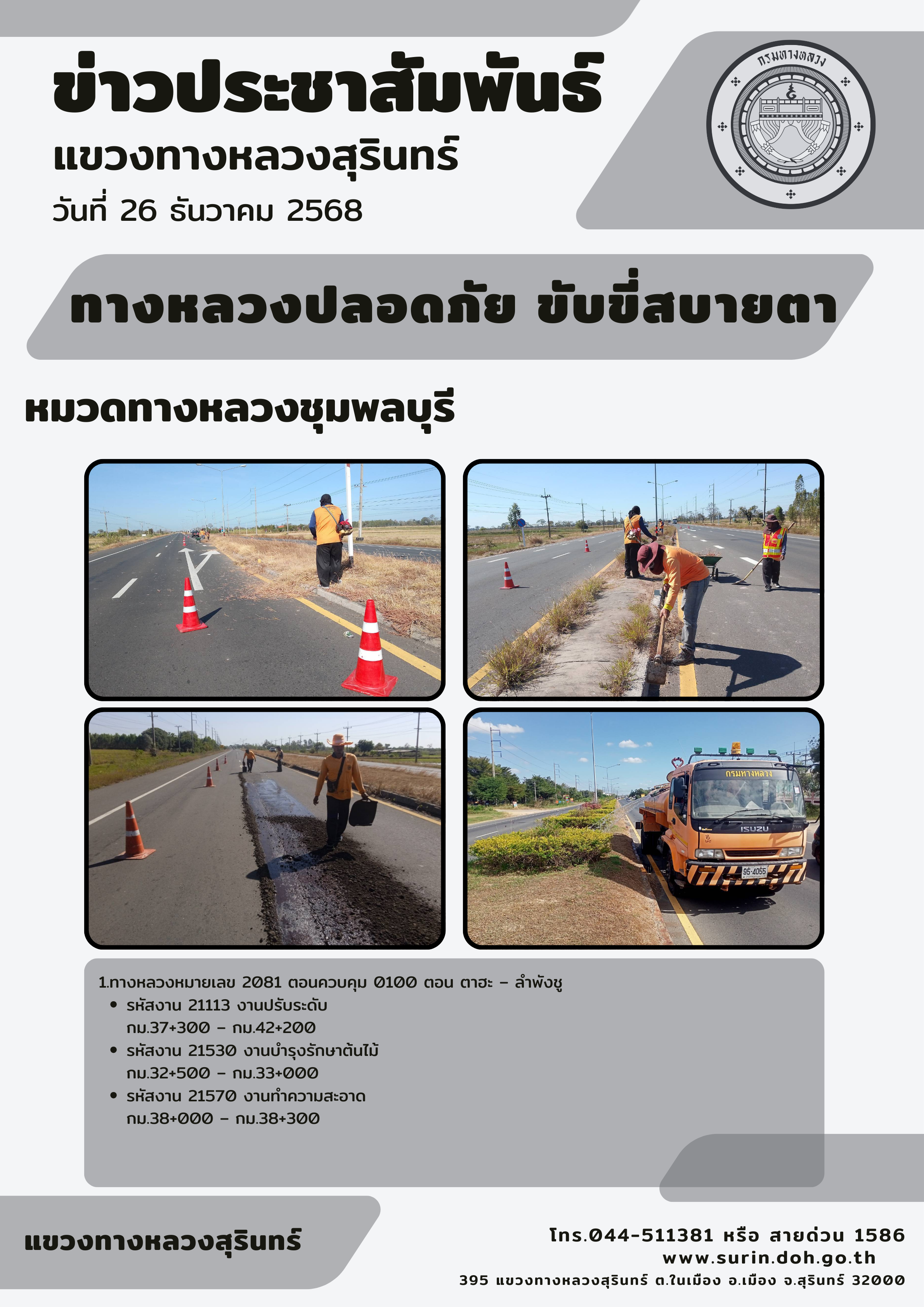 ข้อมูลข่าว : ทางหลวงปลอดภัย ขับขี่สบายตา 26 ธันวาคม 2568
