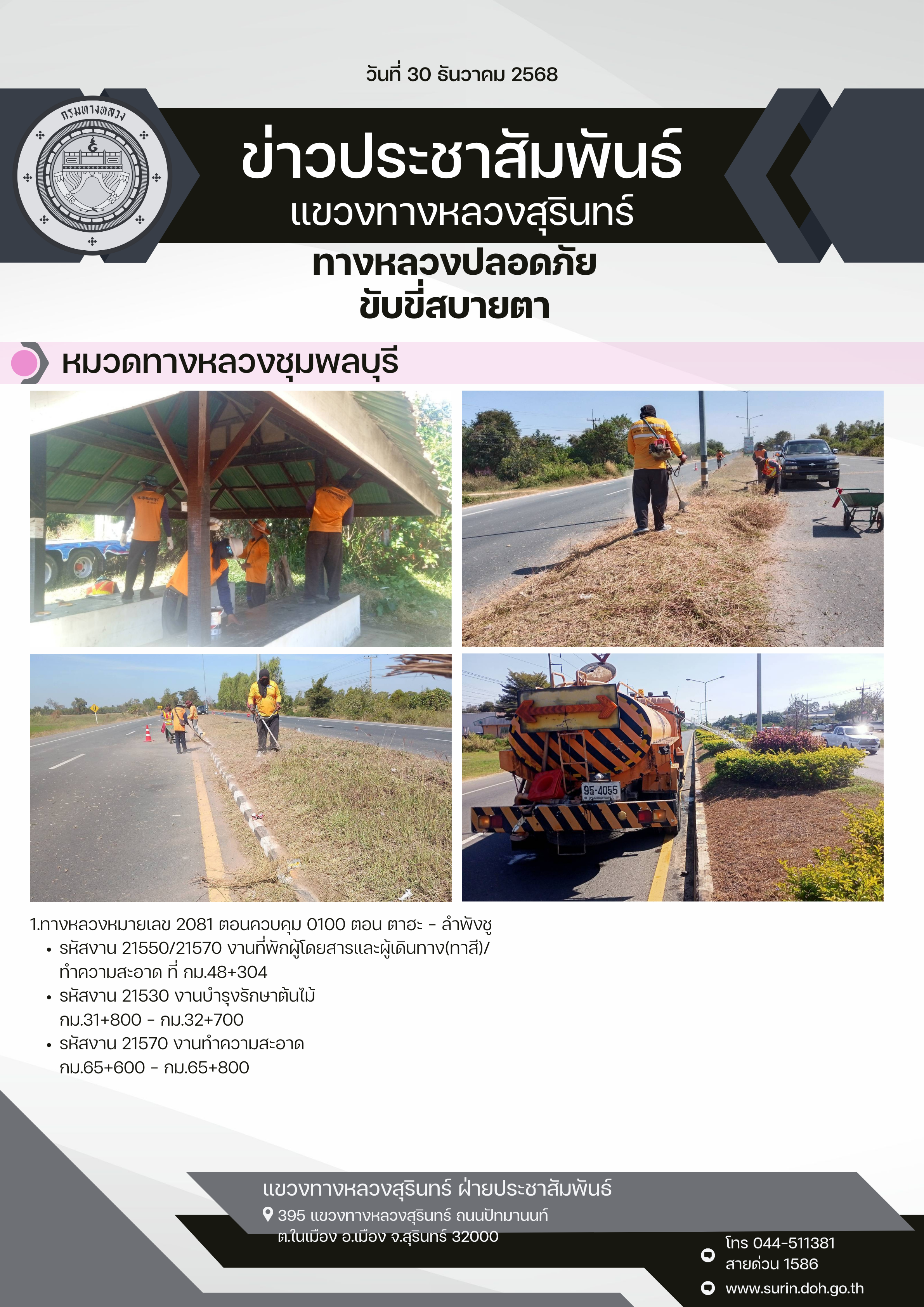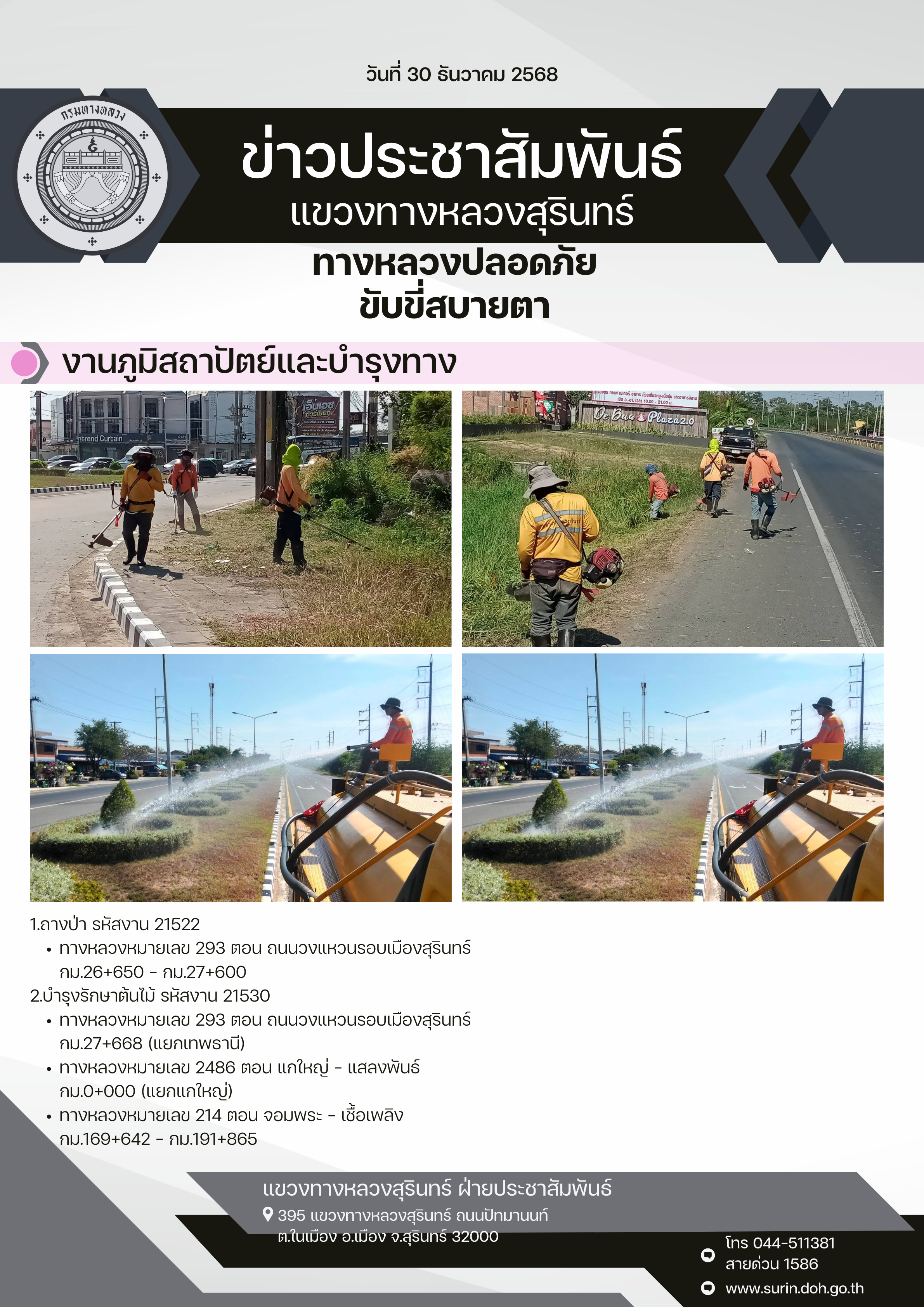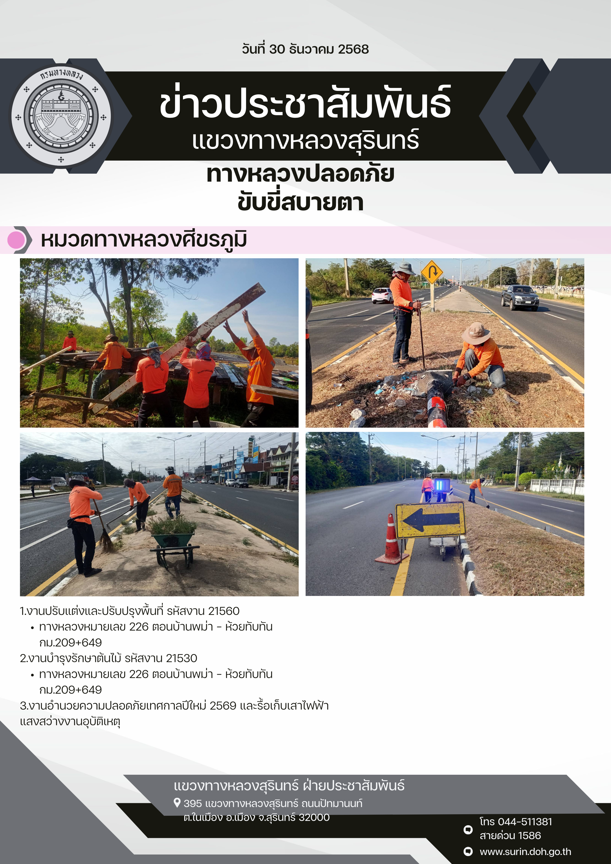 ข้อมูลข่าว : ทางหลวงปลอดภัย ขับขี่สบายตา 30 ธันวาคม 2568