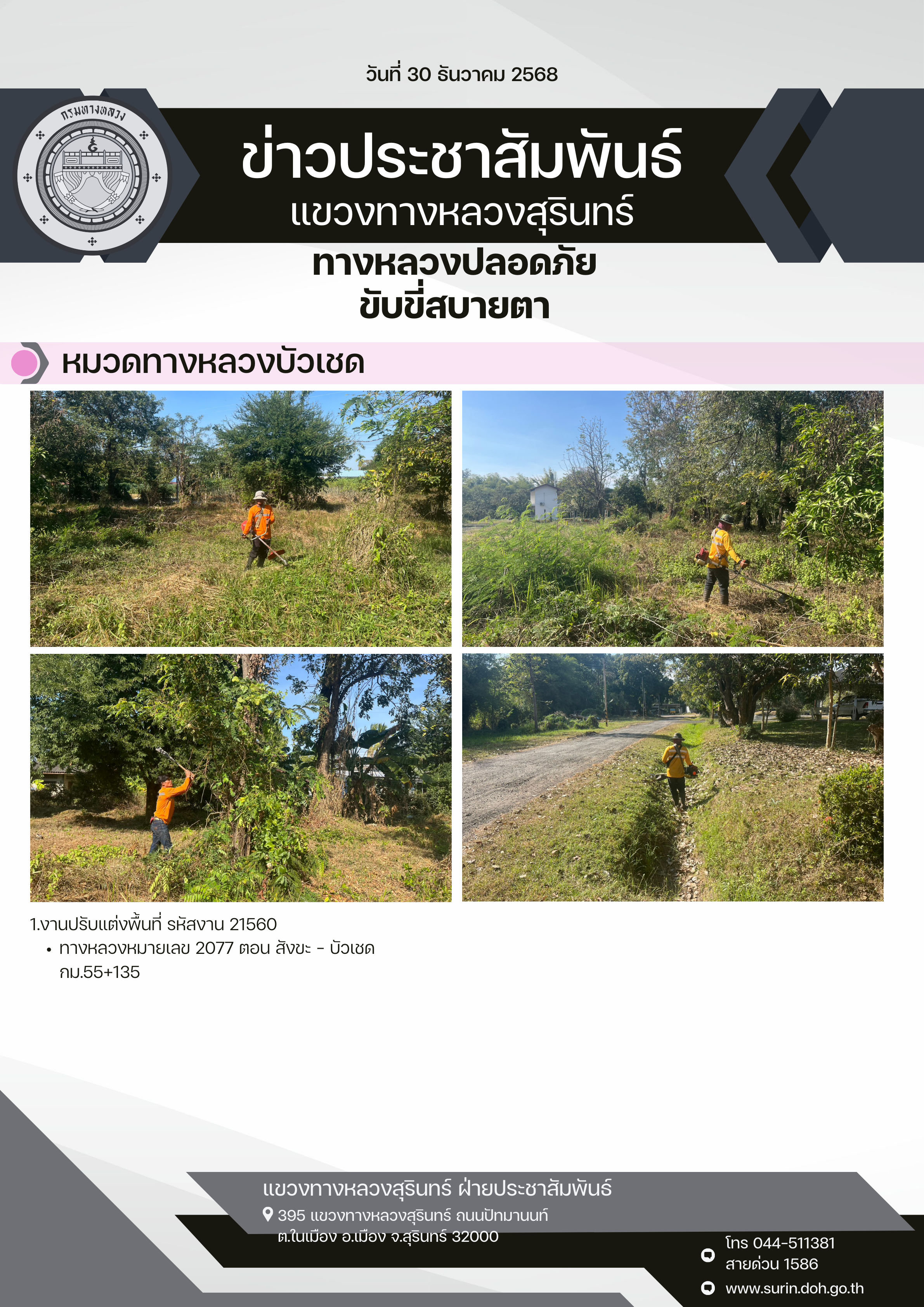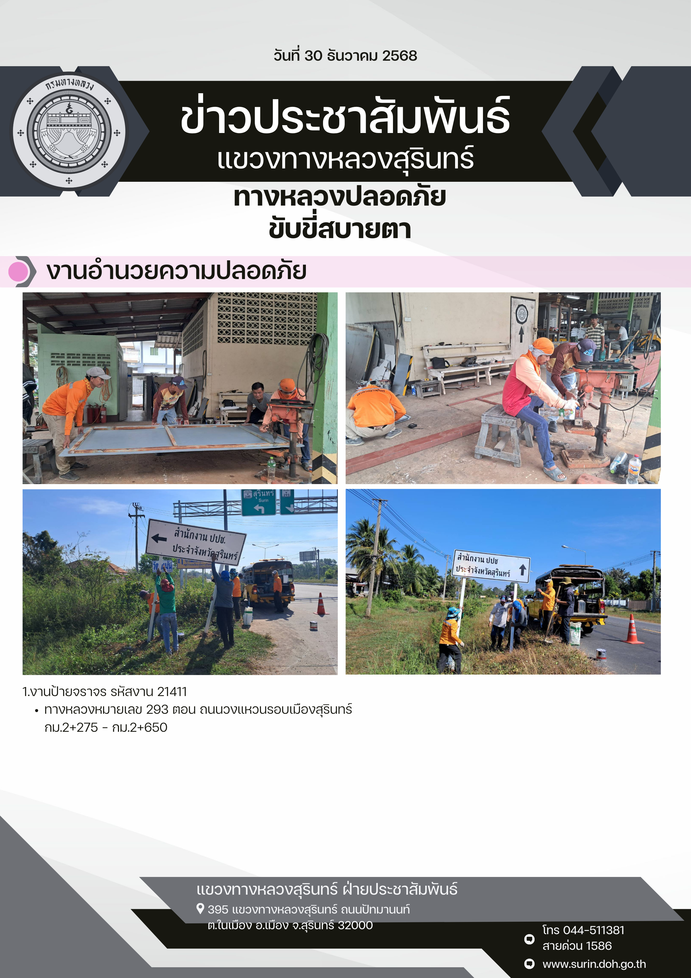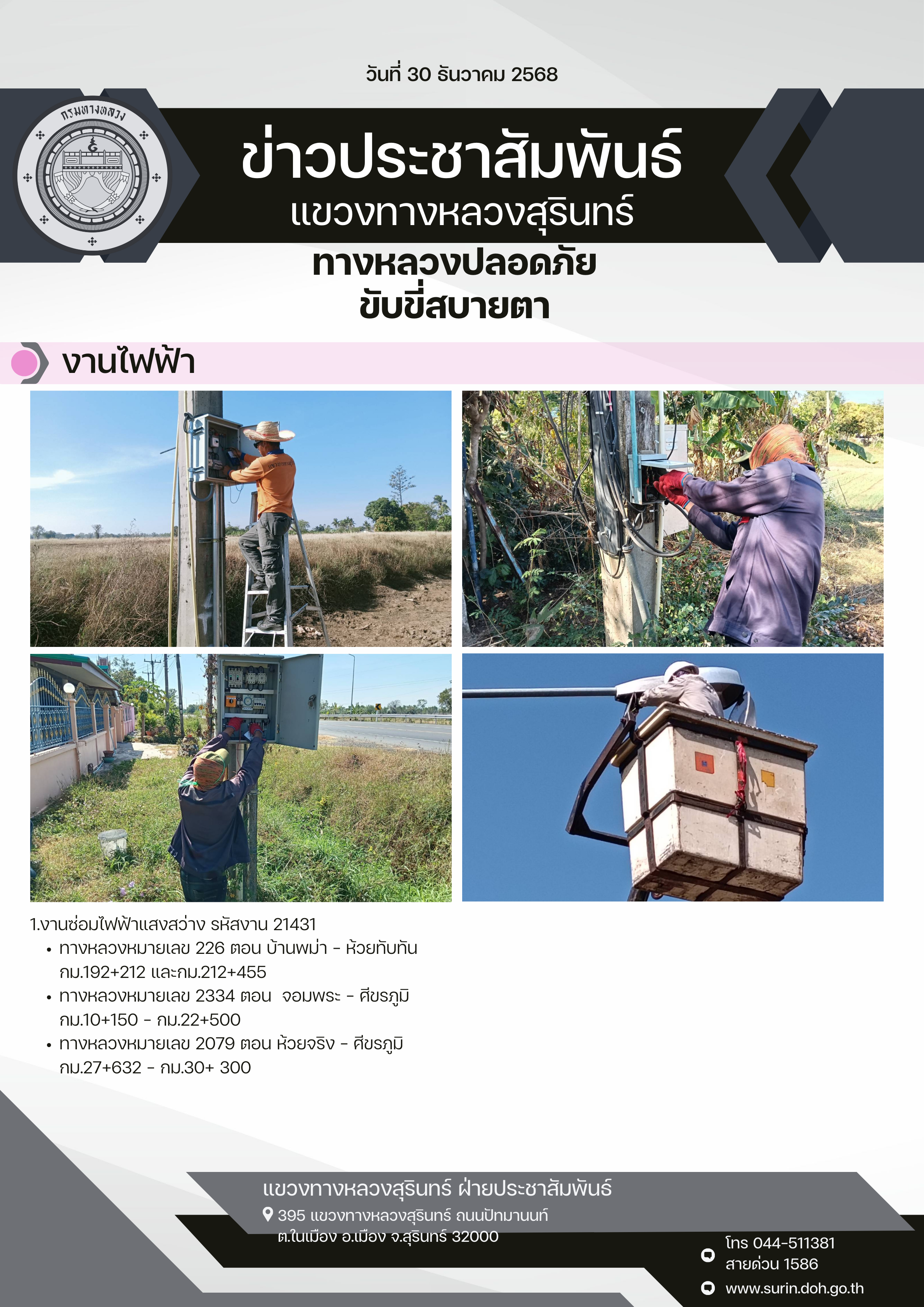 ข้อมูลข่าว : ทางหลวงปลอดภัย ขับขี่สบายตา 30 ธันวาคม 2568