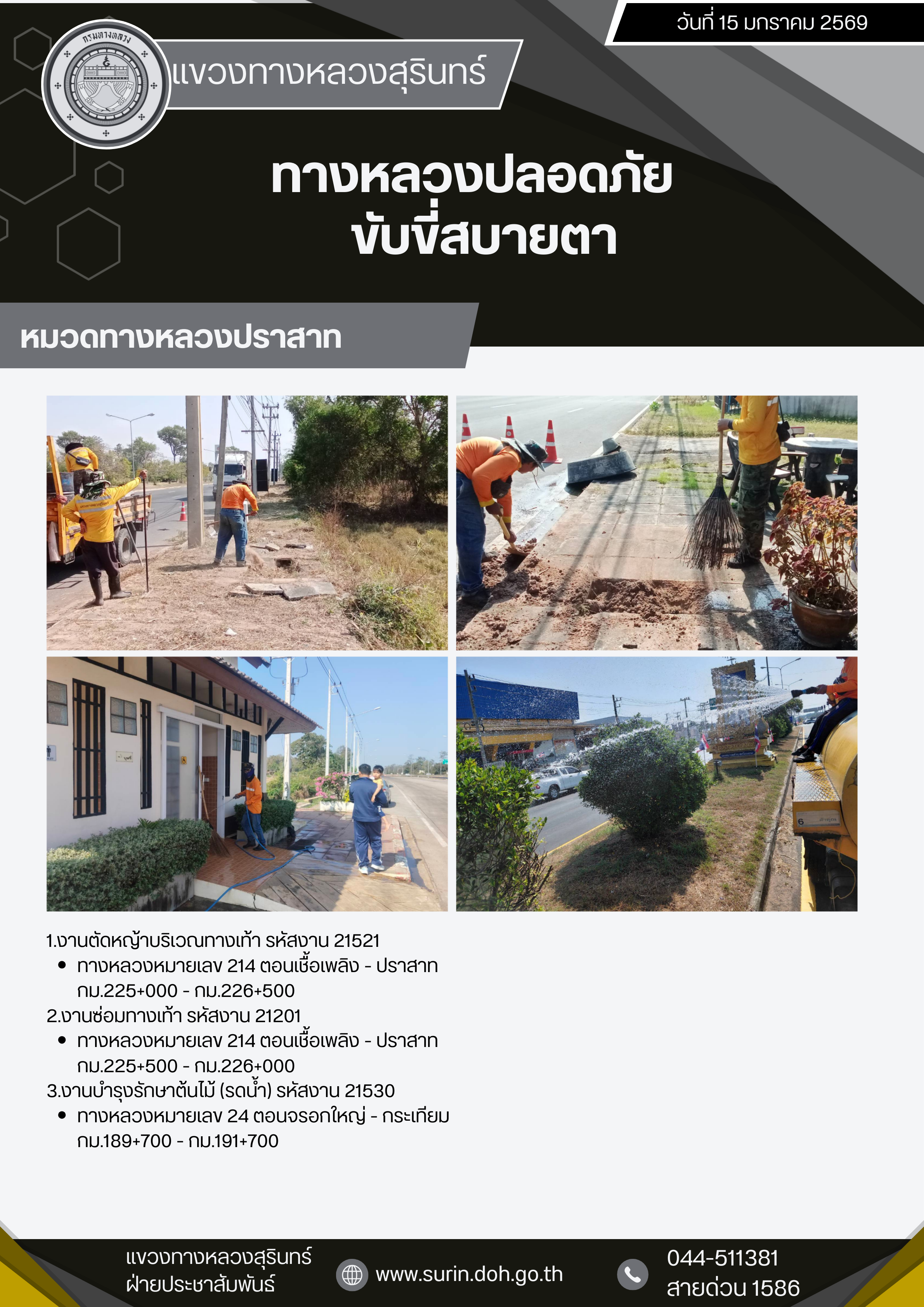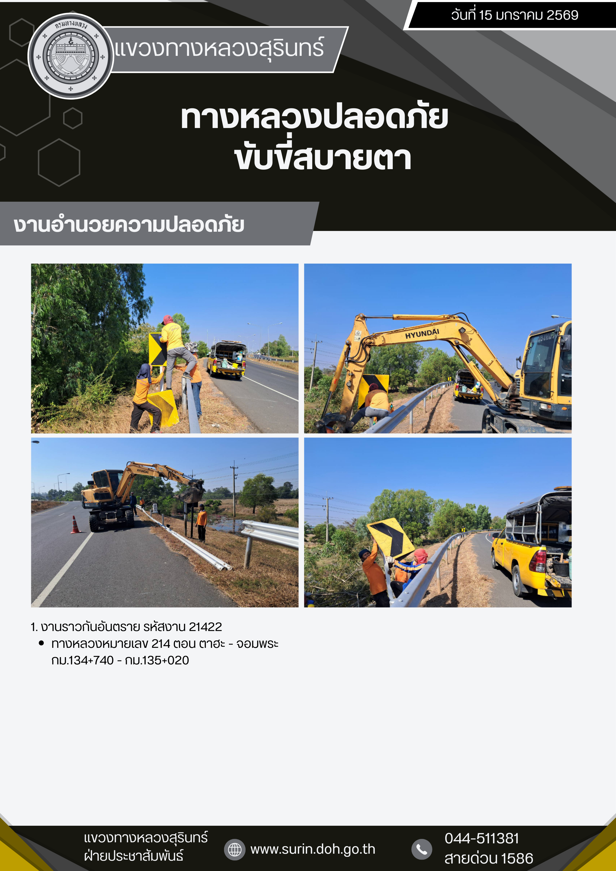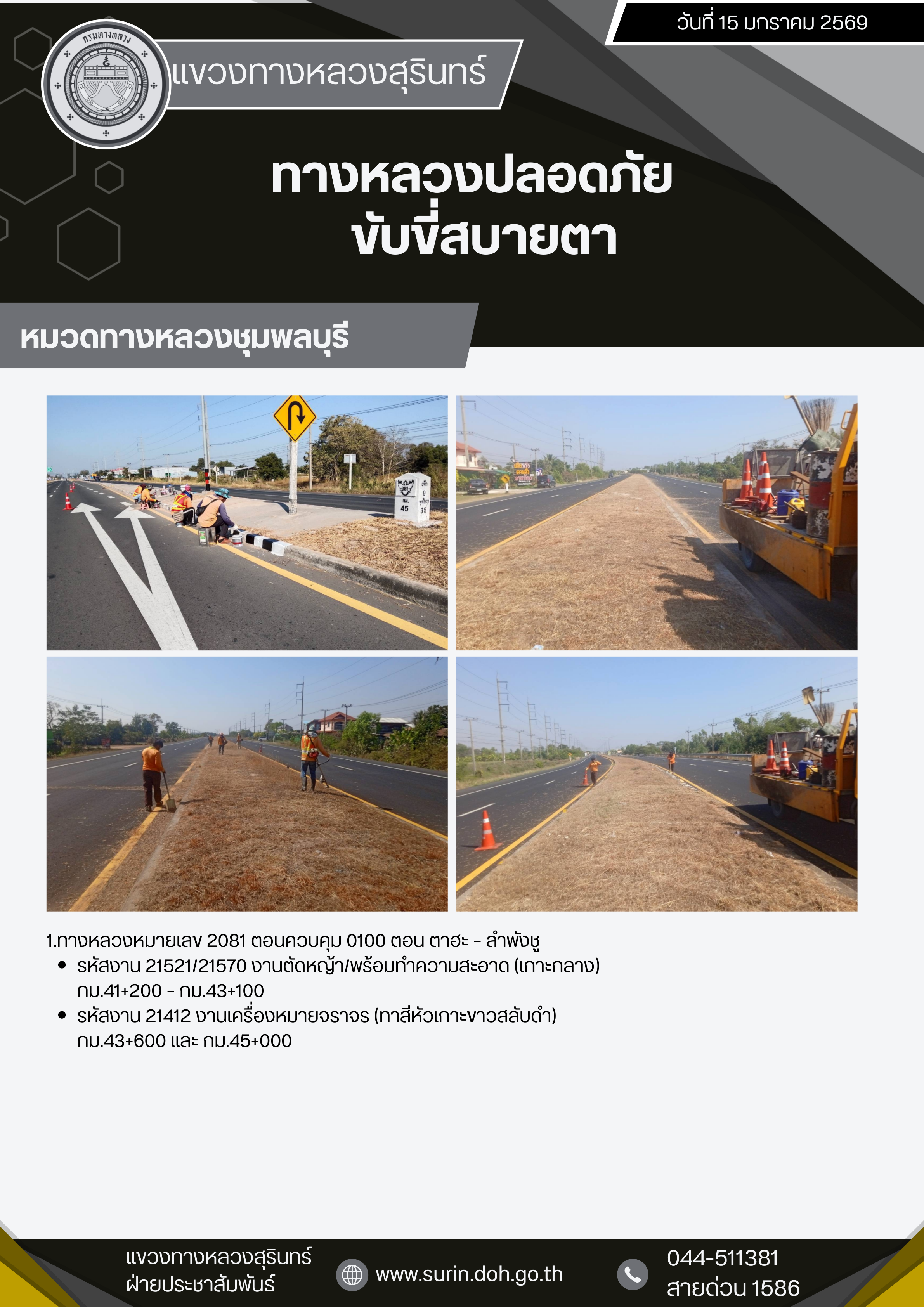 ข้อมูลข่าว : ทางหลวงปลอดภัย ขับขี่สบายตา 15 มกราคม 2569