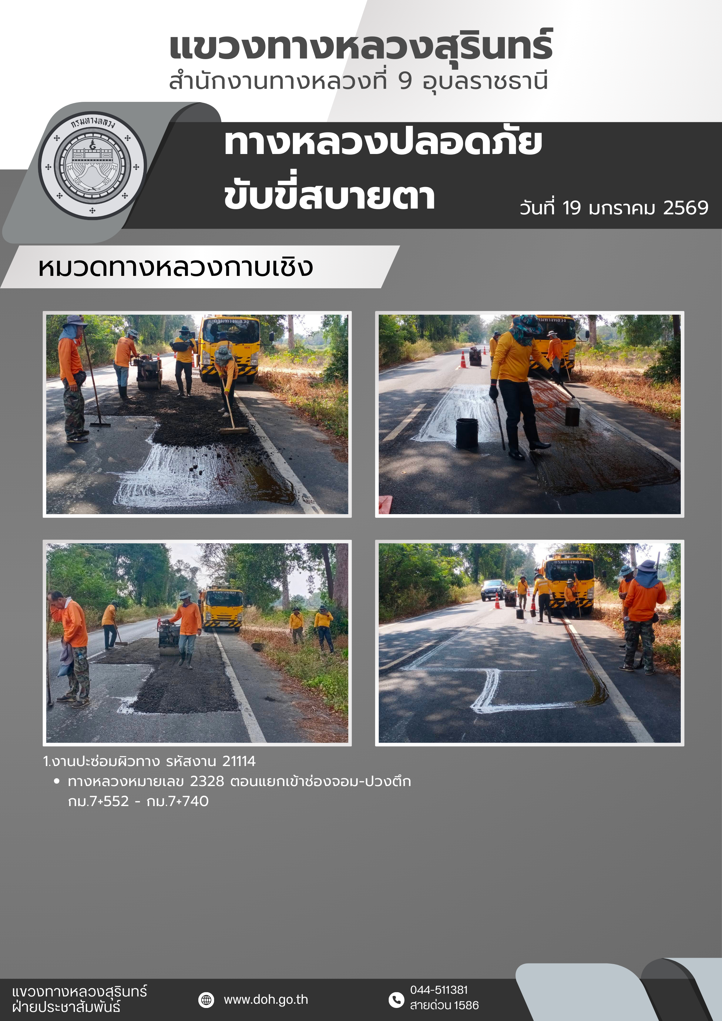 ทางหลวงปลอดภัย ขับขี่สบายตา 19 มกราคม 2568